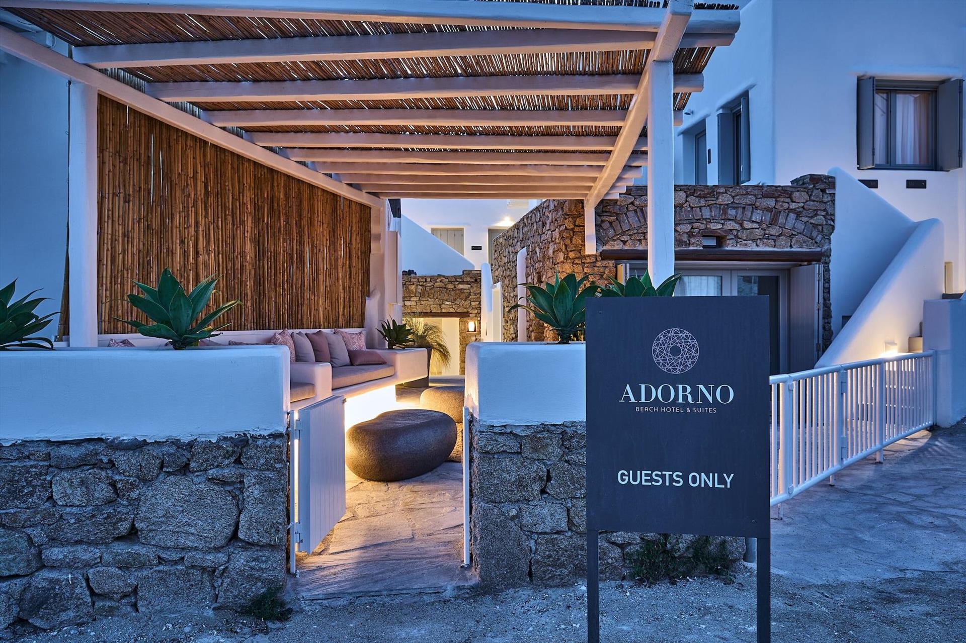 Adorno is a lovely hotel by the sea - right on the Ornos beach. We really liked the decor and the look and feel of the place. The main dining area and swimming pool were nice and well-maintained. Our room (sea view) was large and spacious and very comfortable. We also had a nice balcony overlooking the sea, but part of the view (of the sea) was limited by another property on the side. The breakfast was based on a limited set menu (which got a bit old when you spend a whole week there), but the food taste, quantity, and quality was great, and you could have as much or as many dishes off the menu as you liked. There was also an a la carte menu outside the breakfast times. As much as everything at the hotel was lovely, the best thing about Adorno is their staff. Ilyas and Constantinos at reception and Giorgos (and the other lovely guy whose name I forget, sorry) at the restaurant/bar were so friendly, helpful, generous, attentive, and all the other good things! It felt genuinely quite sad to say bye to them. We highly recommend Adorno, just for the wonderful service, if nothing else! My only feedback for improvement is that on some of the nights, one of the neighbouring beach restaurants/bars played party music quite loud and until quite late (4am on one night because of a wedding party). The bass was coming through quite strong. We had earplugs so were ok, but it wasn't a pleasant experience. Generally, the music levels were good (probably agreed by all the properties I assume). Not much Adorno could do about it, but I would advise you take earplugs if you have a sea view room! Thank you for taking such good care of us, Adorno. Efcharisto!