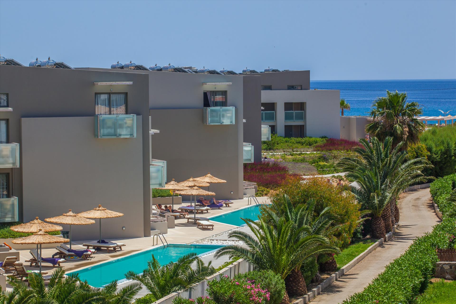 As a disabled, full-time wheelchair user this hotel was shocking, totally unacceptable, we should never been alliwed to book. I'd maybe say 3 star but definitely NOT a 5 star hotel. On arrival it felt like a concrete jungle with stairs/steps everywhere. Many areas were not accessible i.e. the bar had a step, reception, via seating area with steps, I had to go via back of restaurant. The 'a le carte' restaurants and information desk were up stairs, advised no left access. We booked a superior room with garden view. Room was nice but in shaded location, we never had sun at all or a view, we looked out onto a public lane and hadge. Bathroom the worst I've ever had, floor looked like a building site floor and unacceptable for anyone with a disability, NOT suitable for wheelchair user. Towels replaced daily, however, they were so old they were gray, hard and disgusting to use. Bathroom flooded every time we showered, because no curtain or screen or effective drainage. We requested a room change but refused because, all rooms were same and manager stated "this is NOT a disabled friendly hotel". Pool bar was nice during day, but cold and windy in evening, and I couldnt get into the bar (steps) and no drinking in reception area. However, the staff were lovely, friendly and in all honesty, I think they felt a bit sorry for my situation at the Akti Palace. I think that's the only hotel positive I can give. In all honesty, if it wasn't for friends hiring a car, this would have been worst holiday, ever.