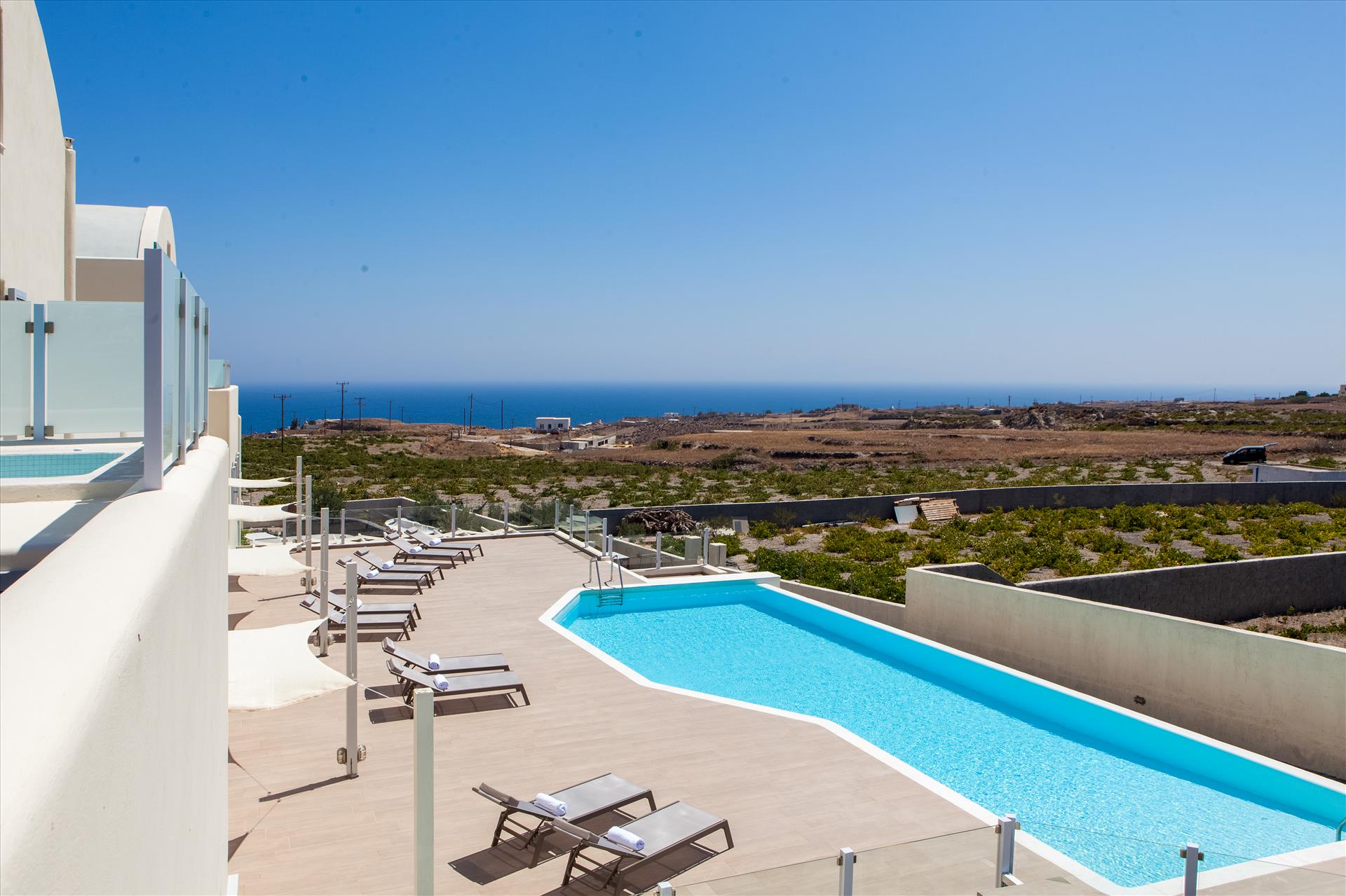 Wonderful stay at Aliter studios- would recommend this place if you’re coming to Santorini. We are two adults travelling with a young teenager. Aliter studios is close to Fira, but too far to walk in our opinion. We rented a car and had no problem finding parking during our visit. The parking at Aliter studios was free. Aliter studios offered a shuttle bus to Fira a few times per day. We stayed in a sea view suite with jacuzzi on the balcony and direct access to the pool area from our bedroom. When we arrived the air conditioning in our bedroom didn’t work. They upgraded us, with no hesitation, to a better room. The breakfast is a la carte- made up on your request with ex fresh fruits, omelette, croissants and more. We felt very well taken care of. Aliter suites has Only a 12 suites, so the area is Nice and quiet. We never had a problem finding sunbeds at the pool. The pool was of Good size, and had a pool bar Next to it. There were Sun towels in the room. The room also had a water boiler, fridge, bathrobes and hair dryer. On the premises there was a lot of olive trees and grapes. The staff was very friendly and helpful and gave us advice on what to visit on the island. Thanks for a great stay!