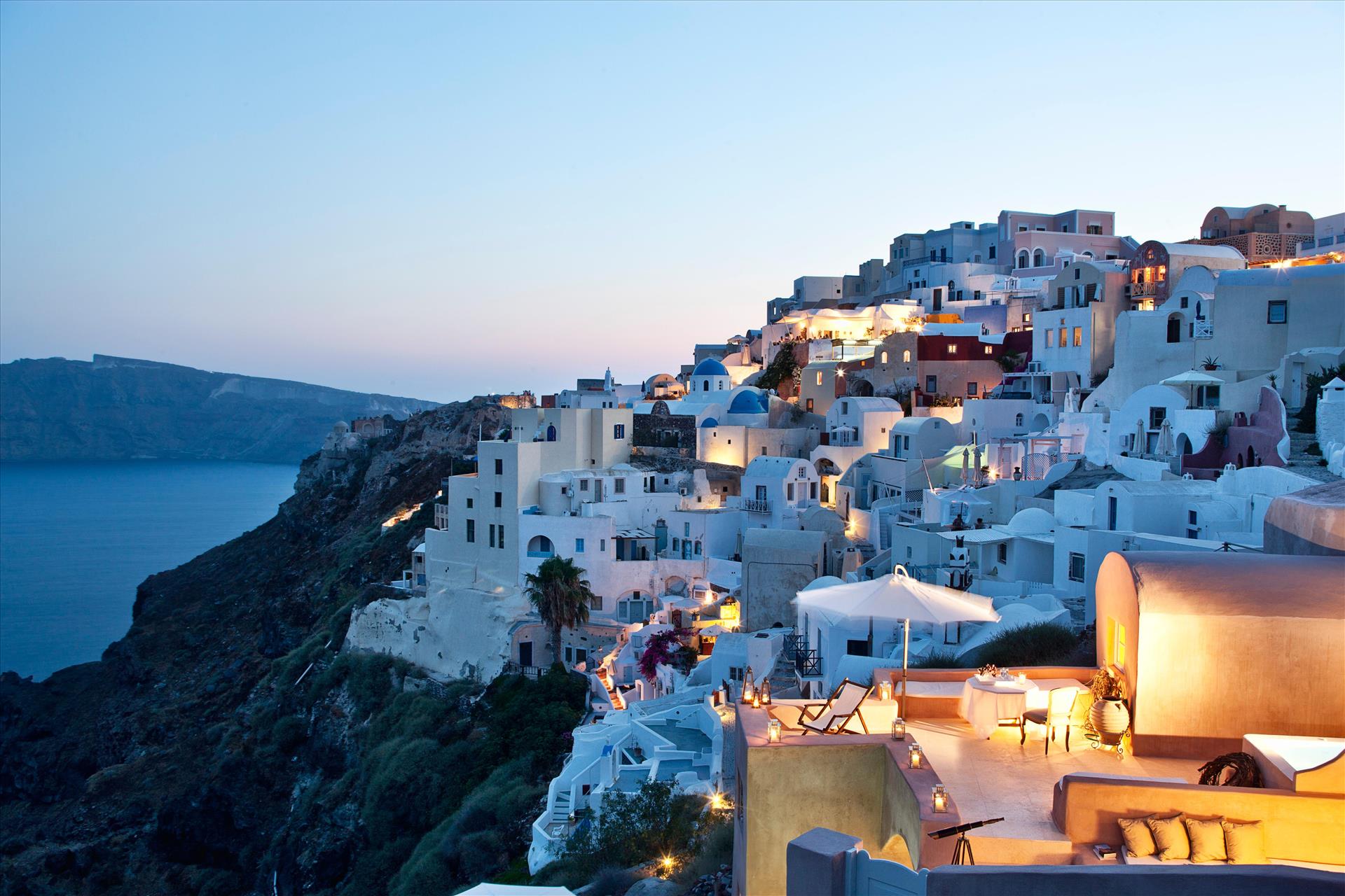 We spent weeks trying to figure out which of the (mostly) small hotels in Oia to book. The pictures on Agoda, and often the hotel websites didn’t always make clear what room/view you’re getting, which matters a lot in this place. We ended up booking the Honeymoon Suite in Armeni Luxury Villas which is essentially a compact cluster of five or so rooms. They all have nice sea views but the Honeymoon Suite offers the best view west towards Oia Castle, together with views of the three domes probably the best view you can get (we found the “sunset side” with the two windmills to be a little less pretty). The hotel is about 30 steps down from the main pedestrian street which by Oia standards is great. The hotel arranged a transfer from the port and our luggage was hauled down. All in all about five minutes from the post office. The room itself is like a small apartment and apart from Wifi (which is slow across Oia), all amenities were nice (just expect some character rather than a brand new looking place). We filled out our breakfast preferences and ate on the terrace every morning. Morning time is also busy with people checking in and out, cleaning, etc. with the management office right above the Honeymoon Suite. The team is at work every day until about 2-3pm but can be reached via WhatsApp afterwards. The terrace, like almost everywhere else in Oia, isn’t all that private with lots of tourists looking down from different spots higher up. The views - which attract so many visitors - however easily make up for this. We had four great days in Oia, thought the price was good value and can definitely recommend this room in this hotel.
