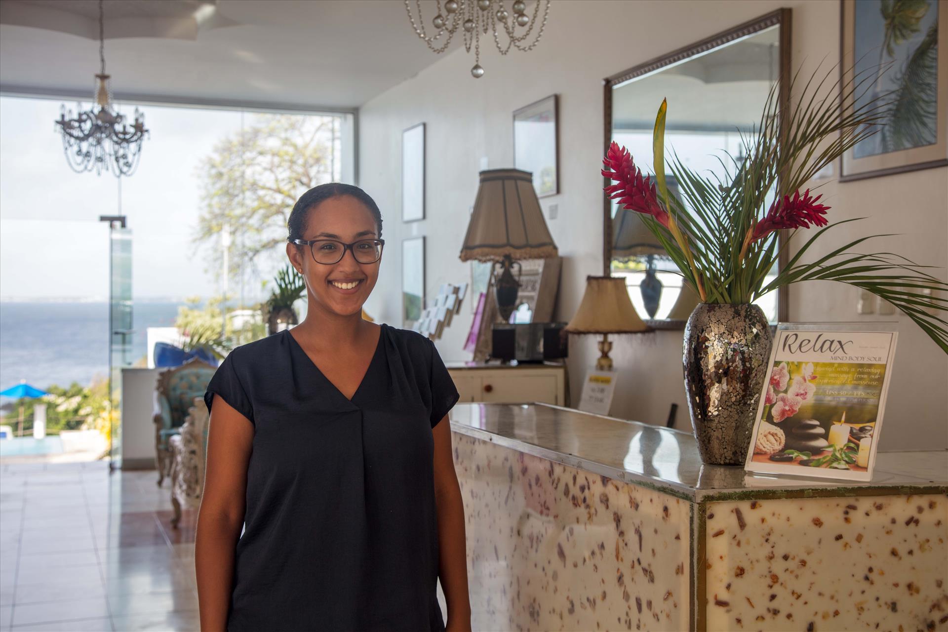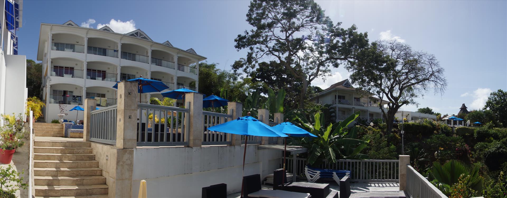 We arrived at the hotel in the early evening so did not see very much of the hotel. The room was lovely very clean and a lovely size, beautiful bathroom, wardrobe space, air conditioning, lovely big balcony overlooking one of the two swimming pools. As it was later in the evening we arrived we did not have dinner the first evening but certainly slept very well. Our first experience of the restaurant was for breakfast on the first full day, there were vegetarian choices which was excellent and the Creme Brulee was the best I have ever had, thank you to the chefs. The staff were all so helpful and friendly and made us feel very welcome. I have a disability so require getting around in my wheelchair and using my walking sticks, there are some areas a bit more difficult to access than others but my husband managed and again the staff were very helpful. Karen our lovely lady looking after our room was wonderful, the room was spotlessly clean and the bed linen and towelling was beautiful. I did not access the beach but my husband did and the hotel owners offered to assist me but I declined as I enjoyed our balcony or lying by one of the pools. All the staff were welcoming, helpful and very friendly it was so relaxing. We had a tour of the island with the wonderful Ricky who is extremely knowledgeable about the island and has a lovely sense of humour. We visited Scarborough, the capital, it was very pretty, and the residents all very helpful and friendly. The time went far too quickly, we were only there for two weeks, and will definitely return for a longer break.