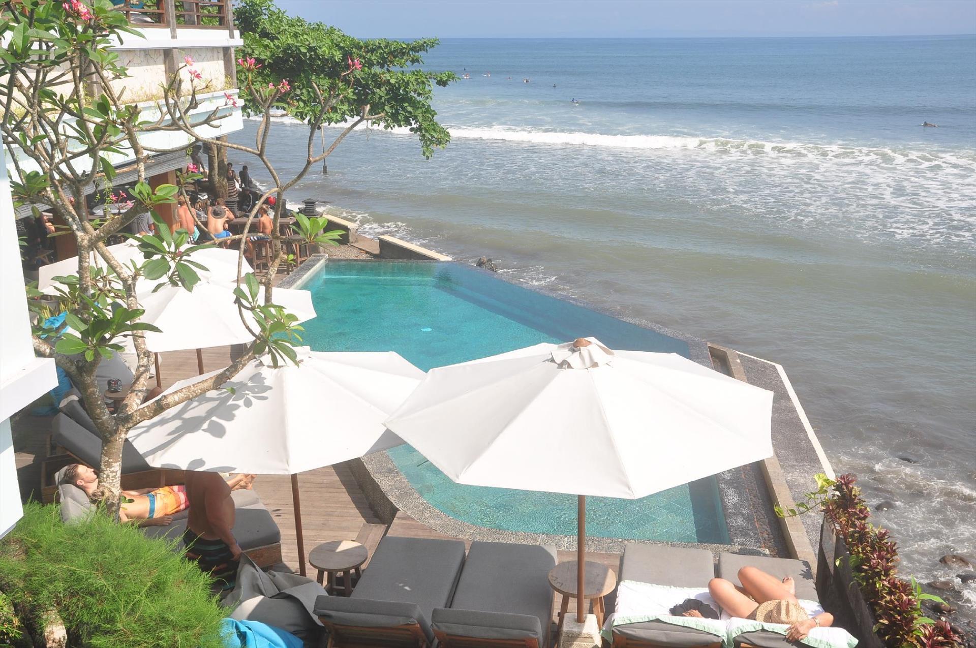 The hotel is a resort located in the West Coast of Bali and is one of the most sought after surf breaks. on the island. Facing the beach and the surf break, the resort offers 11 luxuriously appointed rooms targeting the lovers of the ocean, the beach, the surf and relaxation. Each room has 5 star quality bedding and linen, spacious areas, natural and organic room amenities, a fitness kit and ipads with surf reports and tide charts for the surf aficionados. The resort features an Asian and Western Restaurant and a Bar overlooking the ocean.