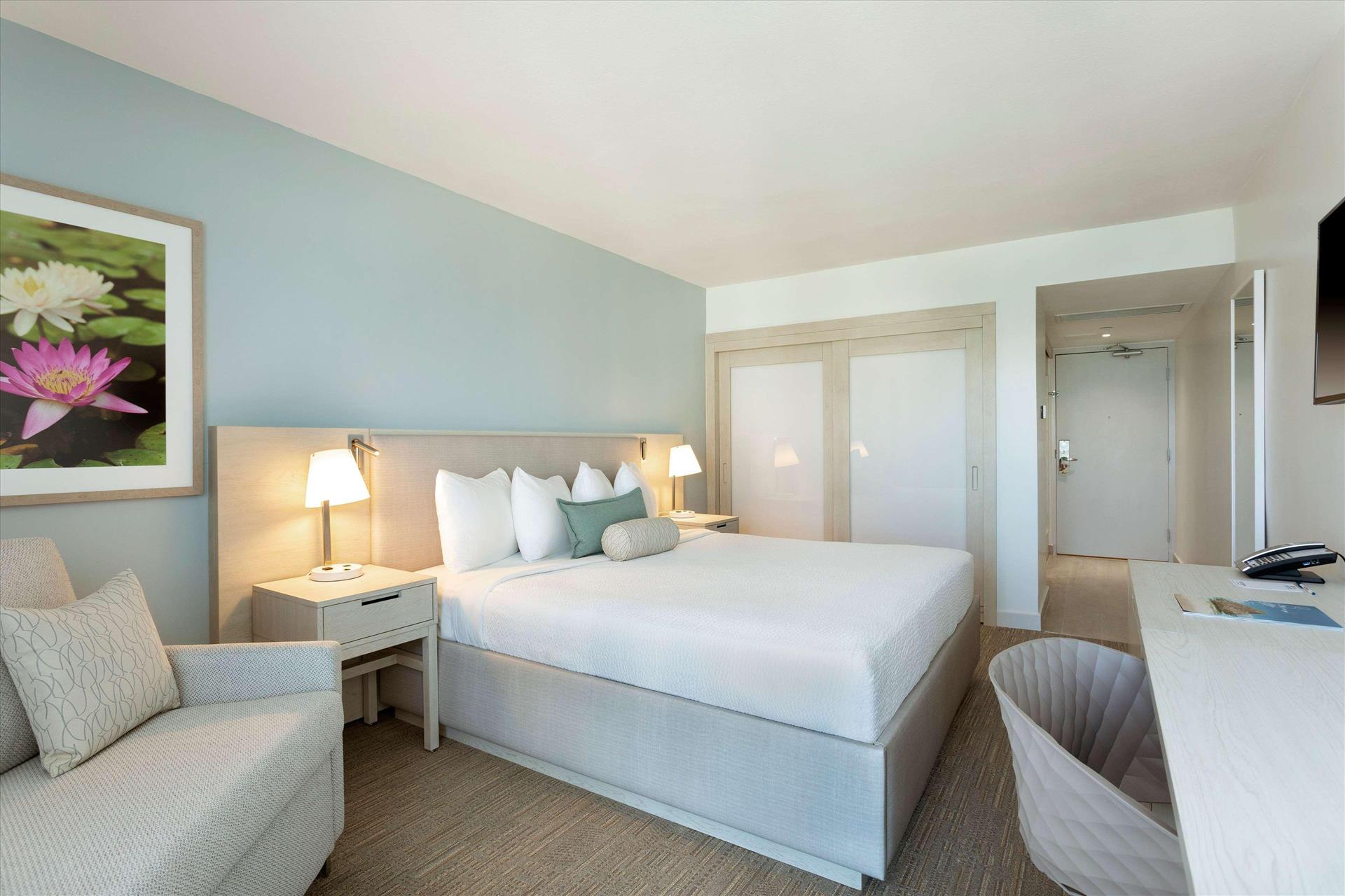 I really enjoyed my stay here and would definitely recommend it. The whole process was just easy. It’s not far from the airport at all—maybe a 20-minute drive which made arriving a breeze. Even though I showed up pretty late, the person at the check-in desk was so warm and welcoming. They took the time to explain my Hilton Gold benefits, which I really appreciated. When I finally got to the room, it was sparkling clean and actually bigger than I expected. I loved the mid-century modern furniture; it gave the room a really light, beachy vibe that felt perfect for San Juan. The location is convenient only about two blocks away from the beach and there’s a pharmacy right across the street. The hotel even includes beach chairs and umbrellas, which is a huge plus. One thing to look out for: once I got down to the sand, I realized they don’t provide towels on-site. It was a bit of a disappointment in the moment, so next time I’ll definitely remember to bring towels from the hotel with me. I didn't get a chance to try the breakfast even though it was offered, but overall, it was a great experience. I’d definitely stay here again!