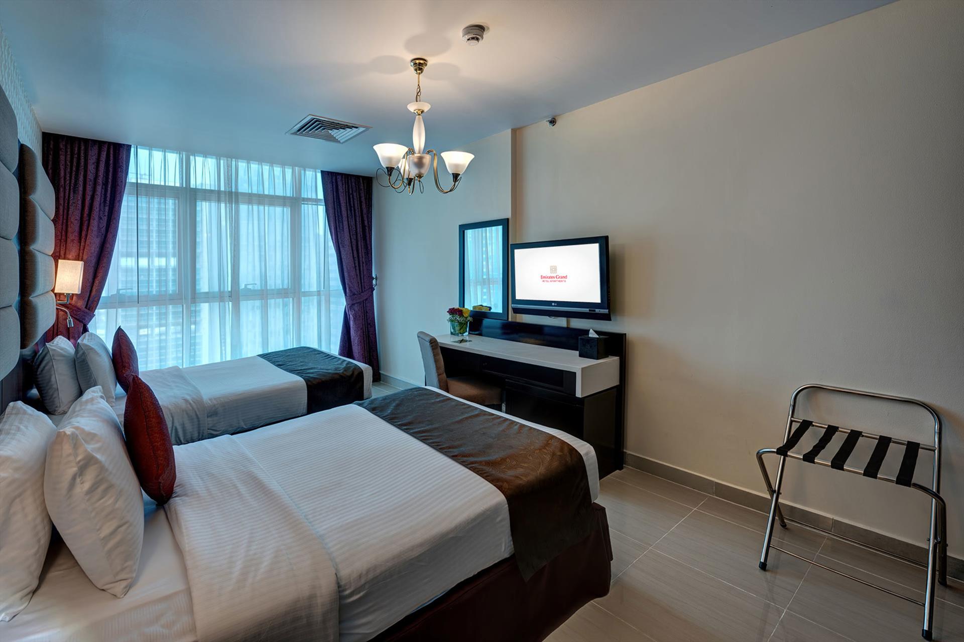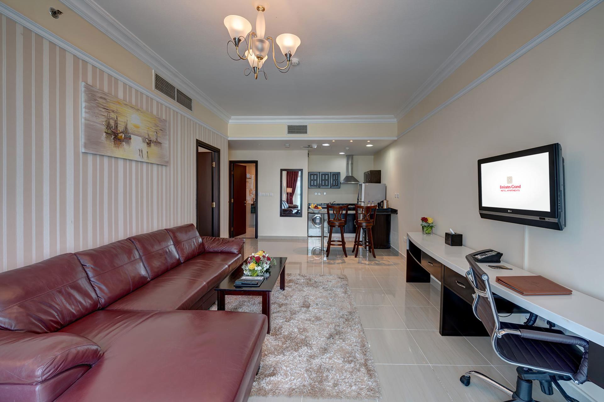 The 31-storey Emirates Grand Hotel Apartments offers fully serviced apartments with elegant furnishing. Conveniently located in the heart of Dubai, Sheikh Zayed Road, the Apartments are steps away from Dubai Financial Center metro station. The spacious and modern rooms include a well-equipped kitchenette, flat-screen satellite TV, tea/coffee facilities, seating area, balcony in some rooms and private bathrooms with toiletries. Internet connection is available in the property. Guests have access to the indoor swimming pool, sauna, steam room and Jacuzzi. The Dubai Mall and the Dubai International Financial Center (DIFC) are within walking distance from the apartments. Dubai International Airport is just 15 minutes away by car.