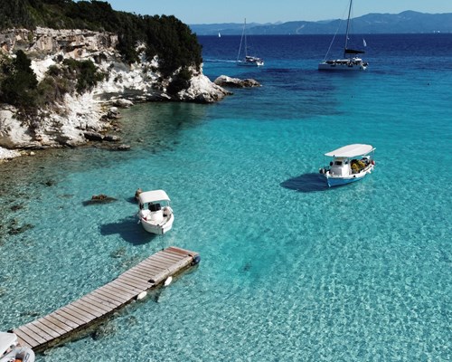 Off the southern coast of Corfu lie the stunning islands of Paxos and Antipaxos, known for their breathtaking beauty. Quaint houses dot the picturesque bays, surrounded by crystal-clear waters and luxurious beaches, framed by verdant hillsides; it is no wonder that the islands are a magnet for the rich and famous and the marinas are regularly filled with celebrity-owned super yachts. Boat trips departing from Kavos typically include visits to these islands, offering opportunities to swim in the warm turquoise seas and explore the three renowned caves, each boasting spectacular inner architecture.