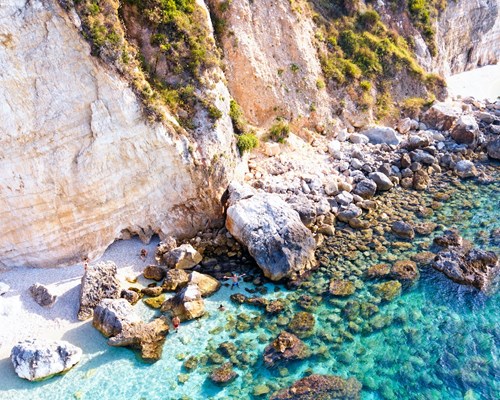 Nestling on the west coast of the island, near Lixouri, Petani beach is bound to impress. The name Petani comes from 'epietani', which refers to the abundance of water all year round. Its rocky crescent has incredibly turquoise waters, perfect for swimming or snorkelling. If you're travelling with children, take care as the sea tends to deepen quickly. Once you've admired the scenery, climb up to the viewpoint at Paralia Petani or devour some delicious prawn pasta at Erasmias Petani.