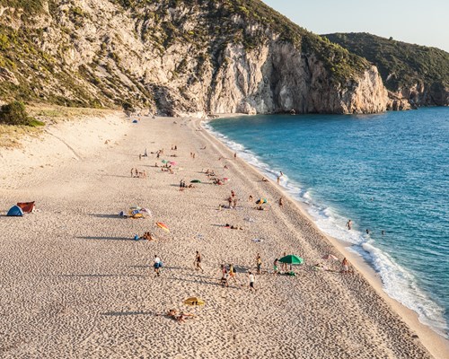 Yet another of Mother Nature's magnificent creations, Antisamos beach is a tropical paradise for beach lovers. Its deep blue waters are surrounded by rolling hills with lush foliage, creating a serene setting where you can spend days basking in the sun. Sami Harbour provides easy access to the beach, which is well equipped with restaurants and sun loungers. The Acron Beachclub is the perfect spot to soak up the views. Popular with both families and couples, Antisamos is renowned for its crystal-clear waters, where you can swim in total relaxation.