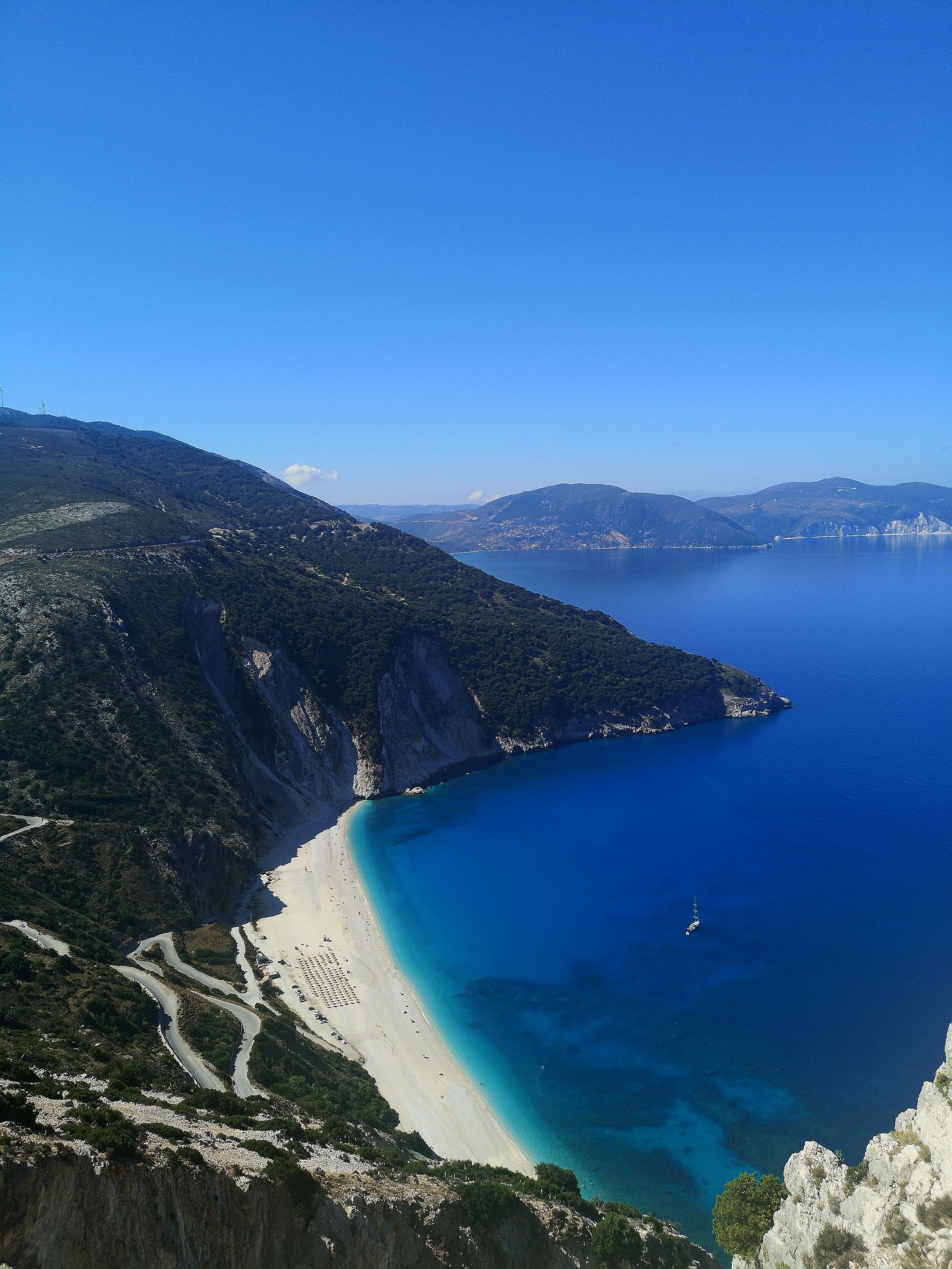 Set in a secluded cove, this stunning islet can be reached in ten minutes by boat or water taxi from Zola, followed by a short hike to its ice-white dunes. The photogenic bay of Fteri offers an incredible backdrop and electric blue waters which are perfect for diving, although it's best to bring water shoes to protect your feet from the rough pebbles on the seabed! Escape the hustle and bustle of everyday life and relax on Kefalonia's most beautiful beach.