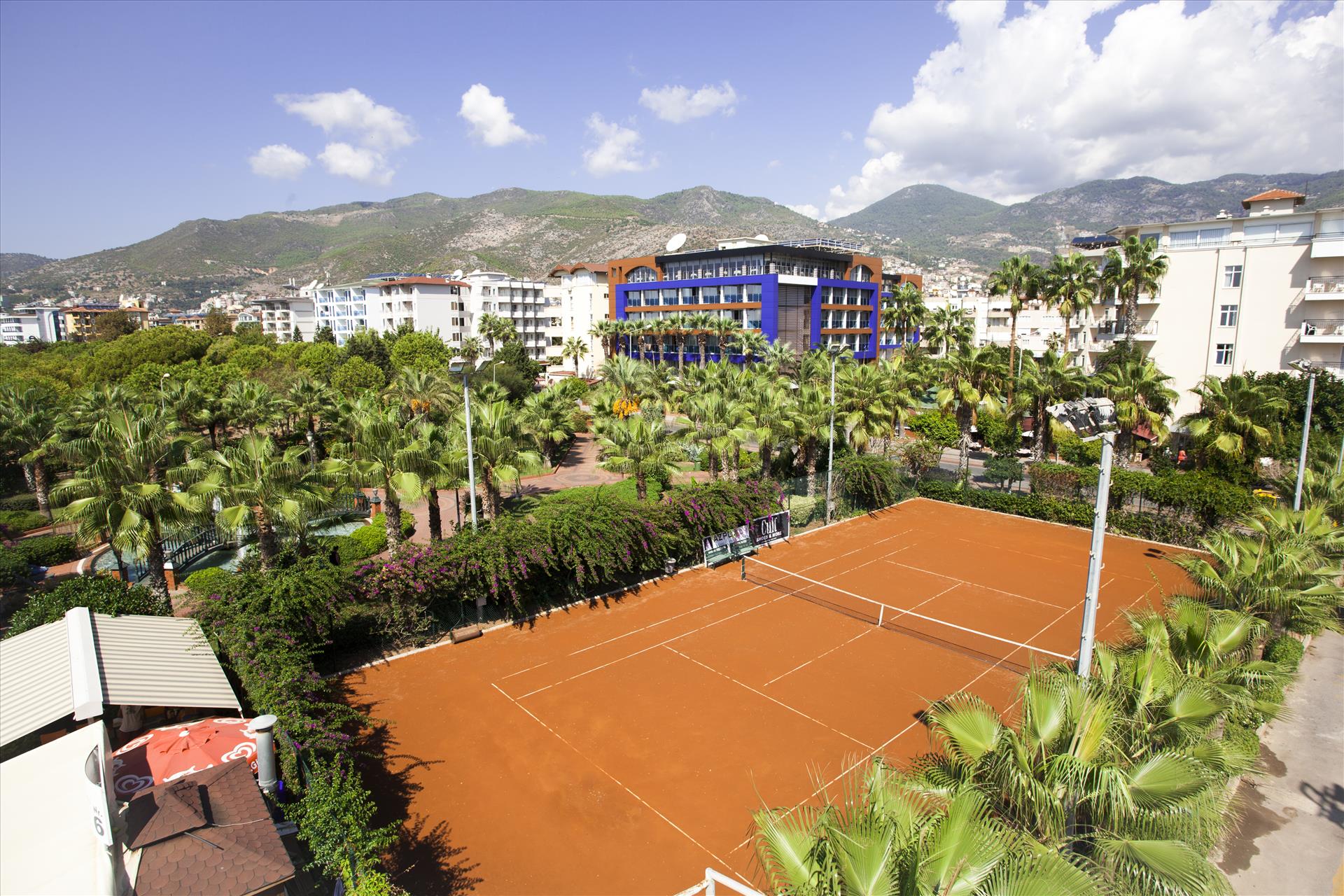 Hotel Gardenia is located just 500 meters far away from the city center. Hotel is placed on the Cleopatra Beach nearby Damlatas Cave. Hotel's own beach is 50 meters to hotel and can reach in 1 minute. The thick type sandy beach gets deeper slowly. The beach bar waits the guests who are suffering from hot weather and want to eat something from the snack menu. In the beach part, you have to pay for sun beds and umbrellas that are free in pool part. Hotel has five floors that have 119 rooms' and 4 lifts. Lobby, lobby bar, air conditioned restaurant, TV room and two meeting rooms (with 100 capacities) are the main parts. Near the hotel's pool there is an A la cart restaurant waiting you with delicious meals. Also in the pool hotel has a special children part. Internets, business room, market, Turkish Hamam, sauna, table tennis are the entertainment parts of the hotel that are with charge and fitness room without charge. The rooms of hotel are comfortably decorated with Laminate and furniture, having direct telephone, special air conditions, Minibar and satellite TV. All the baths are with Shower . All the rooms have balconies and 60 percent have sea view. You can stay in our hotel Half board with open buffet. We have live music and Turkish traditional night organizations every week. There are also 3 tennis courts in front of hotel with charge.