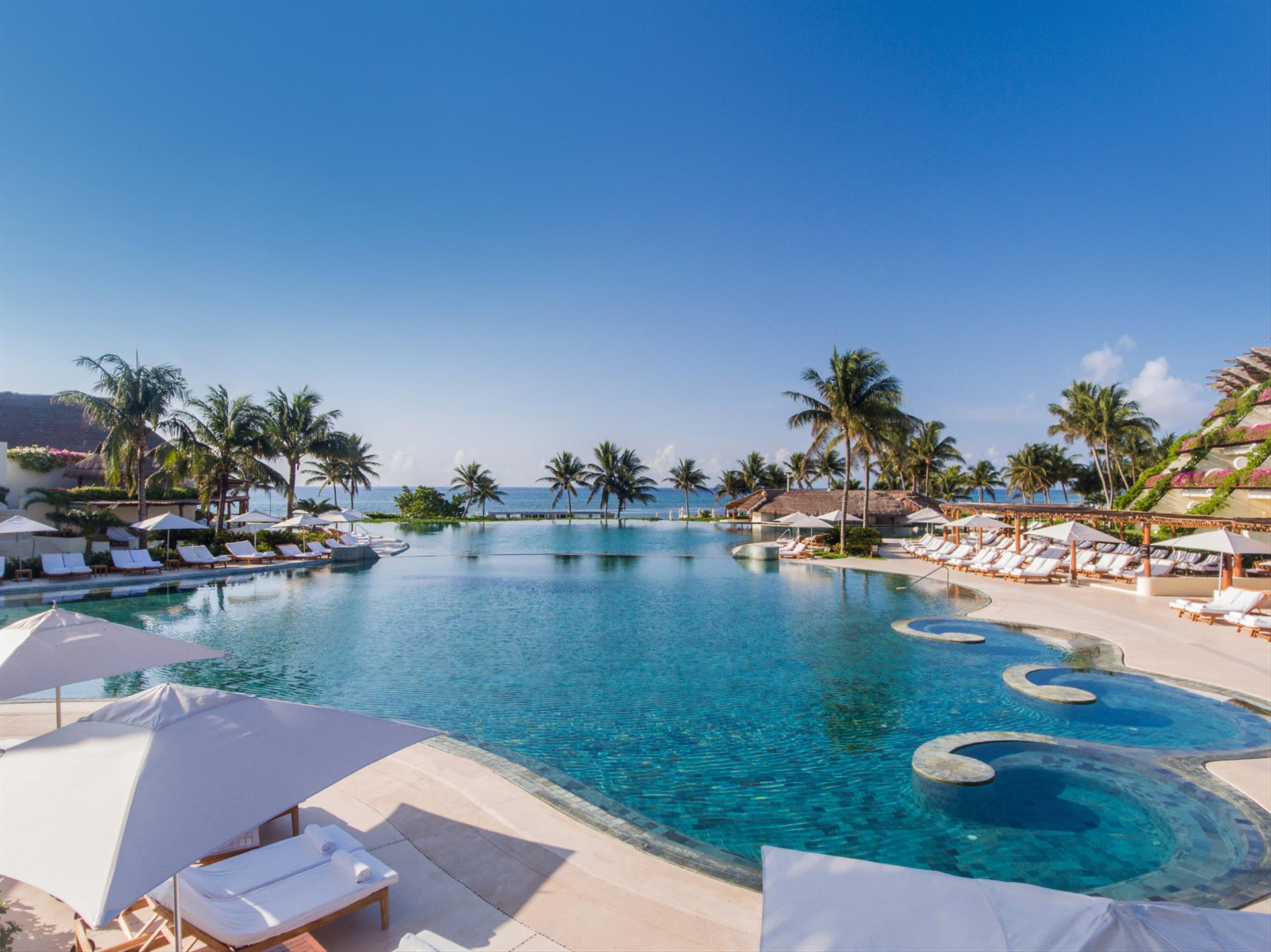Amidst the tropical beauty of the Mexican Caribbean, Grand Velas RIviera Maya is a AAA Five Diamond Luxury All-Inclusive resort with 539 suites set in three ambiances; haute cuisine at 8 restaurants, 5 bars and Aqua Bar; SE Spa; and fun family activities or romantic moments for couples. Three unique ambiances ZEN GRAND Surrounded by jungle, mangroves and natural cenotes. AMBASSADOR Ideal for families looking to spend a day basking in the sun on white sand beaches. GRAND CLASS Suites are designed to provide an experience of absolute relaxation overlooking the sea. Our Luxury All Inclusive concept: • Personal concierge • 24-hour suite service • Private terrace with sitting area • Indoor jacuzzi • Daily-stocked in-suite minibar • Welcome bottle of mezcal • Nespresso coffee maker • Pillow menu