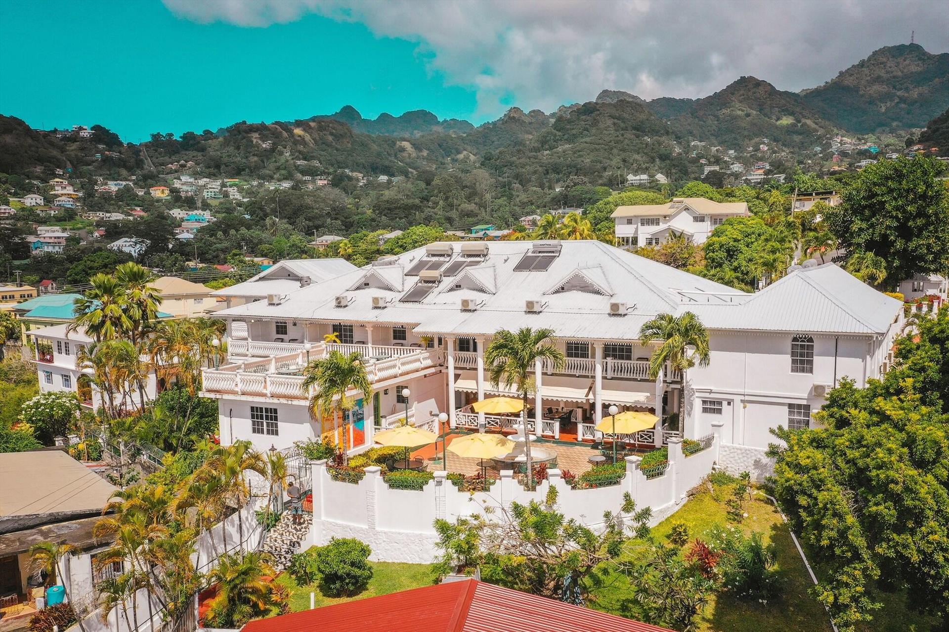 I highly recommend The Grenadine House for its old-world, vintage travel charm. Staying here feels like stepping back into the golden era of travel — not only in ambiance, but in the graciousness of the staff. I had the pleasure of staying twice last month. During our first visit as a couple, we arrived to find a belated anniversary message beautifully arranged on our duvet in fresh bougainvillea, hibiscus, and palm fronds. We were completely blown away by the care and thoughtfulness. The colonial West Indies charm is felt throughout the house — plantation wicker furnishings, nostalgic fabrics, and a true vintage travel aesthetic. Our room was located just across from reception, so I was initially concerned about noise. Happily, it was quiet and peaceful. The covered balcony offered privacy, shade, and protection from the rain, with lovely views over the courtyard, Kingstown, and the bustling port beyond. There is also an elevated viewing patio exclusively for hotel guests — an ideal spot to watch the sunset as ships light up and disappear into the horizon while sipping the welcome rum punch. Dinner is served in a lovely stone-encased dining room with romantic corner tables and air conditioning. The cocktail seating area is particularly charming, featuring vintage movie star photographs and an antique wooden bar as its centerpiece. Dining overall is relaxed and unassuming, whether on the covered patio or in the courtyard. The menu offers fresh seafood, island-style local dishes, and tropical cocktails. The complimentary breakfast is light and healthy, with optional add-ons for heartier fare. For coffee enthusiasts, I recommend requesting an espresso or cappuccino. Tea is more traditional in this part of the hemisphere, and coffee tends to be mild or instant — embracing the local rhythm is part of the experience. One of the hotel’s bonuses is its location — within a 10-minute walk of the historic St. Vincent Botanical Gardens, the oldest botanical garden in the Western Hemisphere. Morning visits are best, when temperatures are cooler. The gardens are pleasantly diverse for their size, and you’ll gain much more from the experience by hiring a local guide — just $6 USD for an hour. Some trees date back to the era of Bligh and Cook, and the aviary offers a chance to observe the beautiful St. Vincent parrots. The pool area is nicely secluded, with a spa adjacent. My husband enjoyed a last-minute massage they graciously arranged just before closing. One small note: be sure to ask at check-in if any poolside events are scheduled. During one afternoon of our stay, a children’s party disrupted the otherwise tranquil atmosphere. For couples and business travelers seeking respite, this may be something to consider. Hopefully, the property will consider keeping the pool area more consistently serene. On my return visit as a solo traveler, the staff welcomed me back as though I were already a regular. That warmth speaks volumes. Job well done.