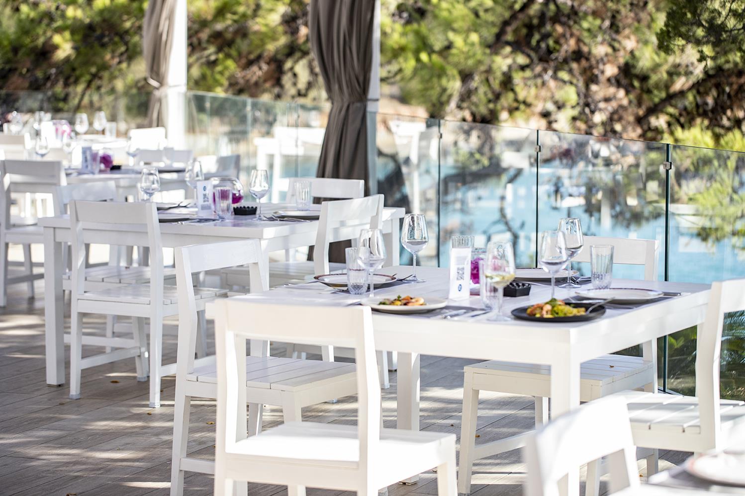 The hotel offers a wide range of leisure and sporting activities, including sailing, windsurfing, windsurfing courses, laser stratos rental, catamaran excursions, water skiing and wake board lessons, Nordic Walking and hiking. Mountain biking excursions and rentals are also available to guests. Other sporting options include tennis, squash, aerobics, water-polo, canoeing, pedal boating, billiards and table tennis. Mini-golf, bocce, volleyball, football, basketball and swimming courses are also on offer. The hotel also features a diving centre. Some of these activities are with an extra charge.