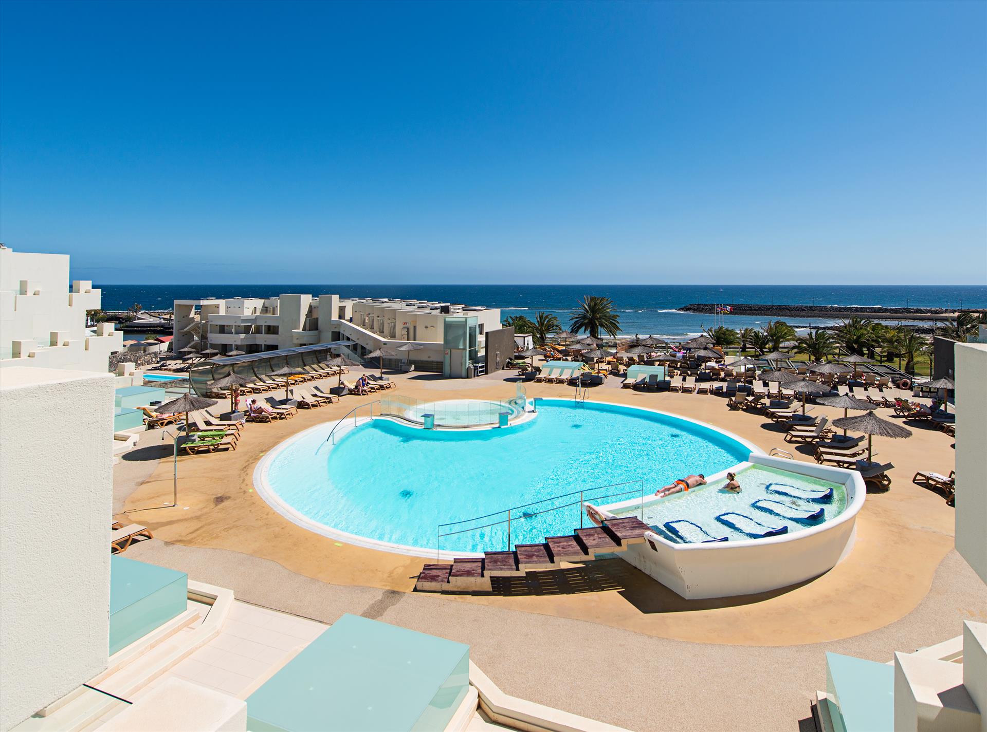 Located directly at the beach of Costa Teguise, SunConnect HD Beach Resort is an all-inclusive hotel with a trendy theme, including bright colours, simple lighting and minimalist furnishings. If you want an extra relaxing holiday, you can enjoy a rest in the relax zone with a spa offering a Turkish bath, treatments, a Jacuzzi, and an indoor pool. Or stay active during your holiday and join in on one of the numerous sports and water sports activities that the hotel has to offer, including windsurfing, kayaking and tennis. For the youngest family members, there is the Kids Club, as well as the Teen Chill-out Area, organizing activities and fun throughout the day. In short, SunConnect has something for all ages.