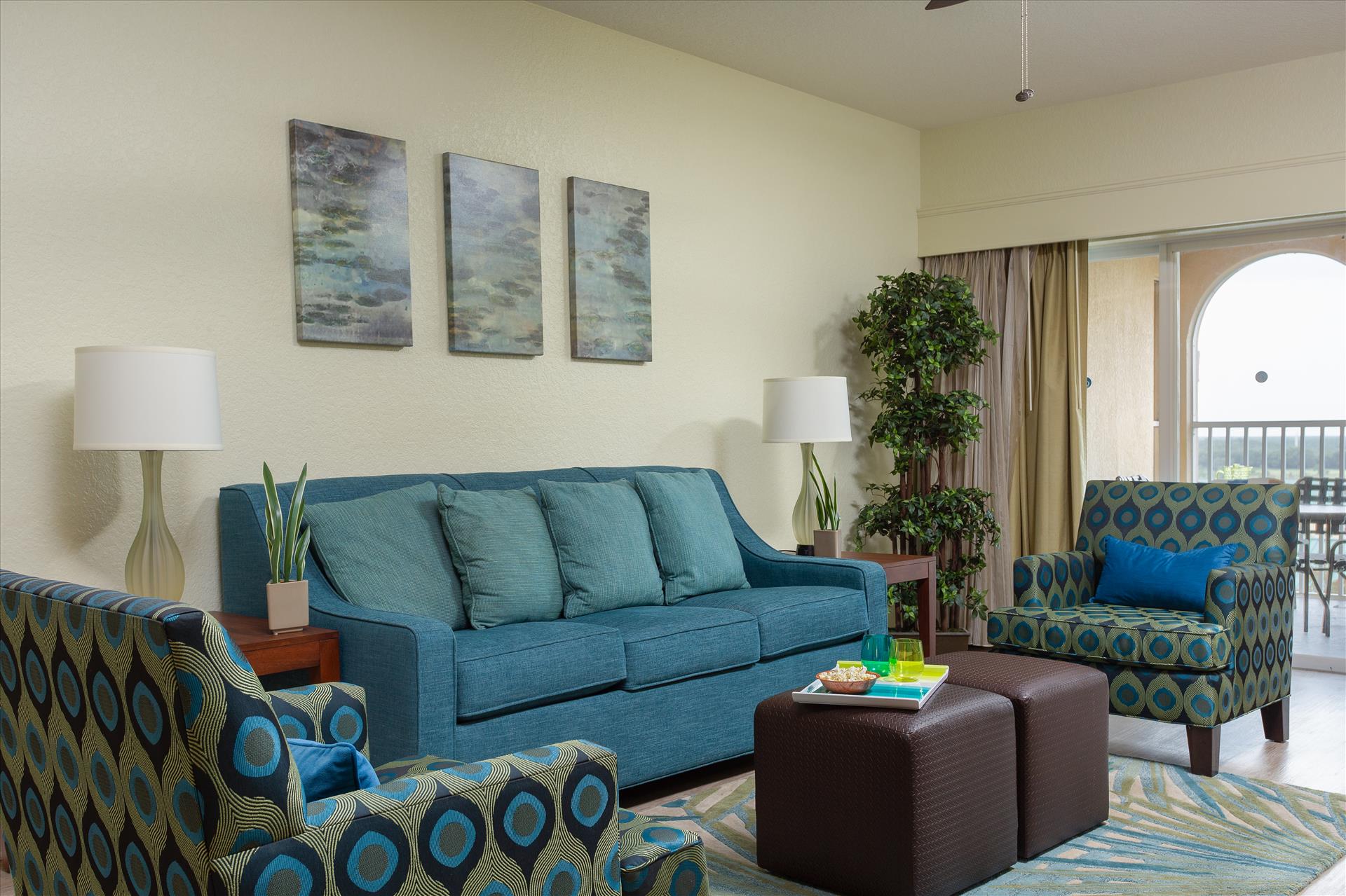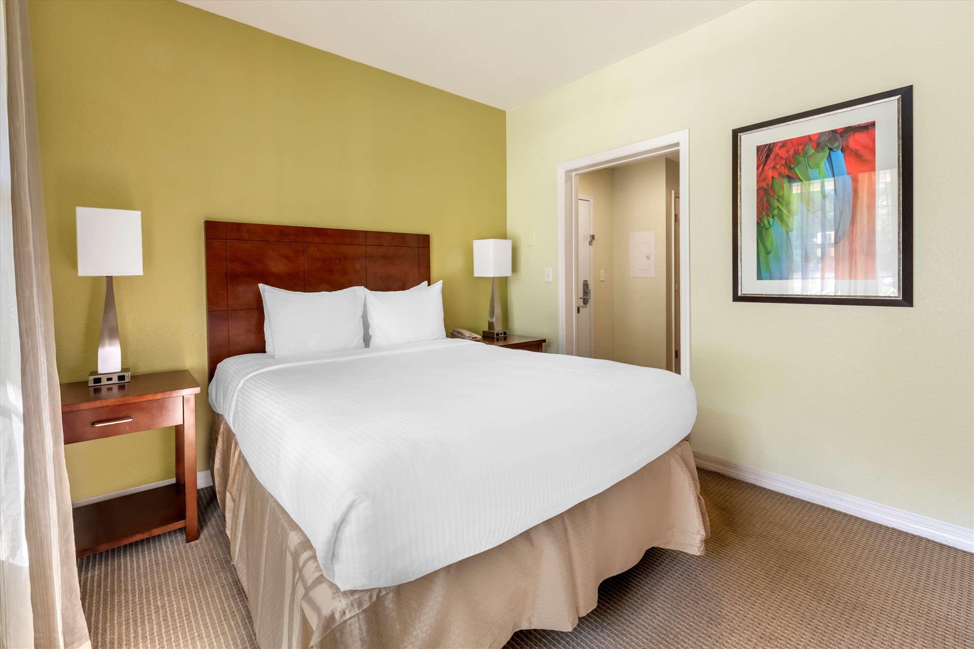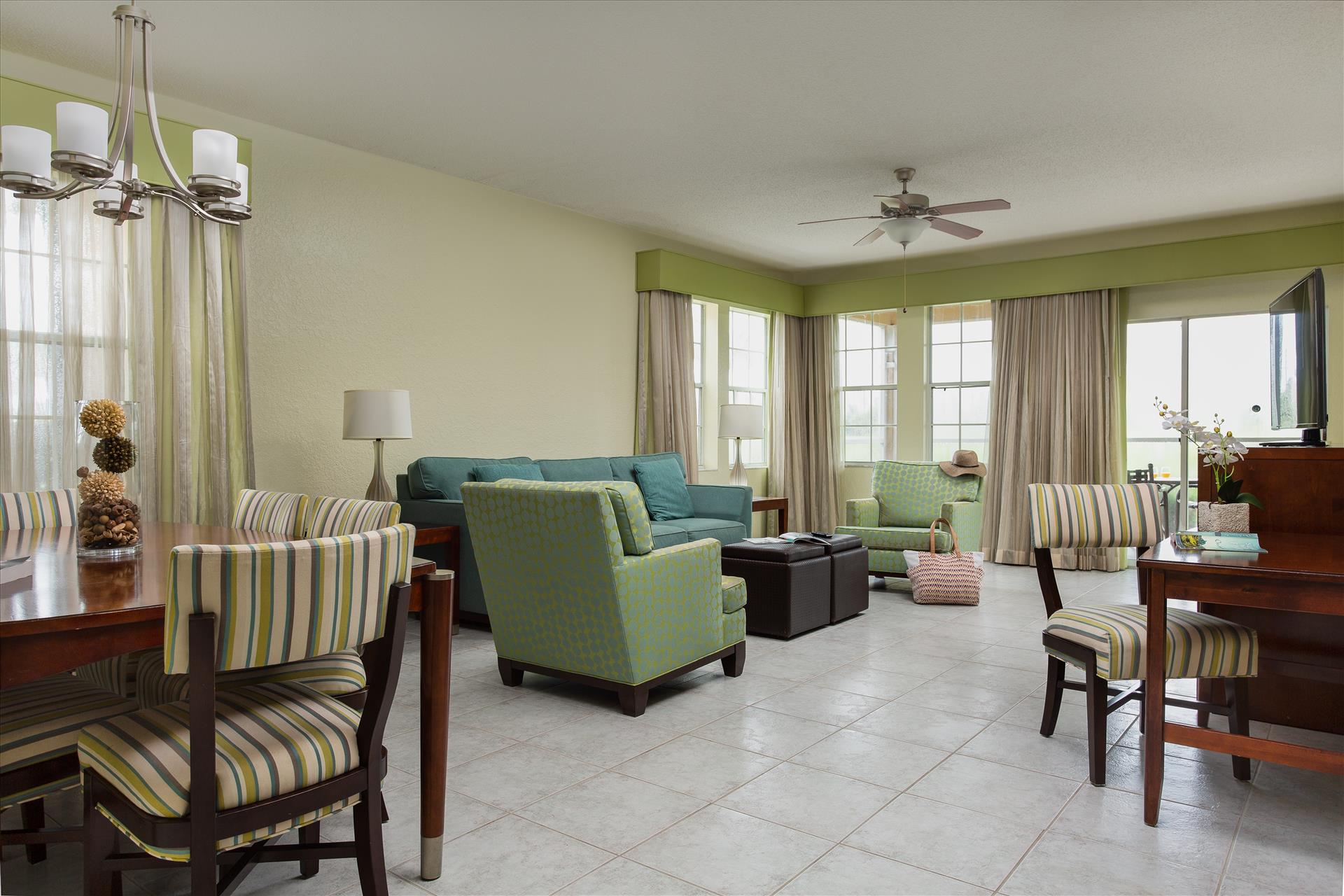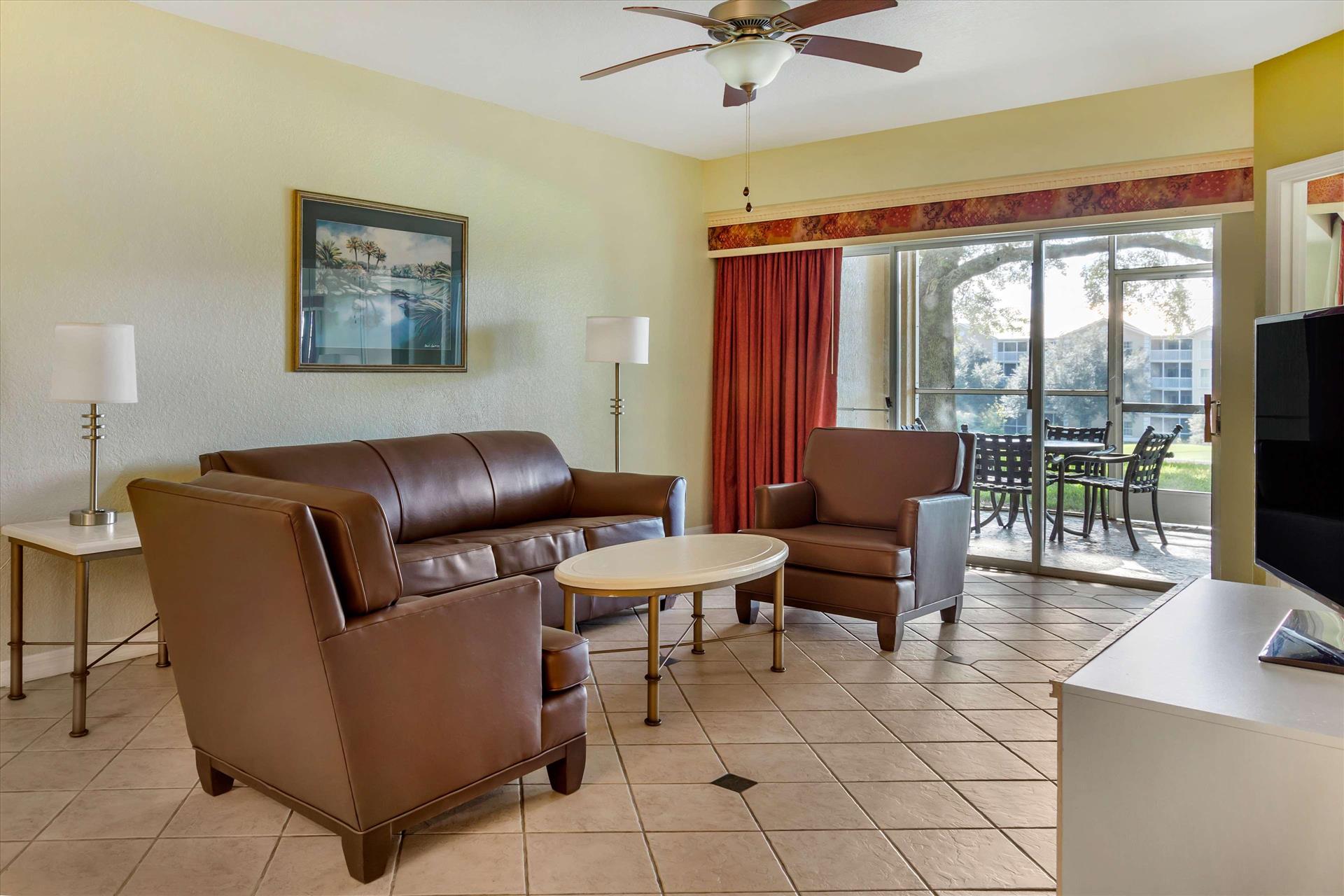 Daily Resort Charge includes: Guest internet access; mini golf; sports equipment including tennis, basketball, shuffleboard and ping-pong; bicycle rentals; use of gaming consoles; select daily activities; TV streaming & casting; PressReader access. Discover the perfect family getaway at Hilton Vacation Club Mystic Dunes in scenic Celebration. Our resort is tucked among 600 acres of rolling hills; lush Florida nature preserves and the emerald greens and fairways of our championship golf course. Conveniently located just five miles from the entrance to Walt Disney World and seven miles from Celebration Town Center. On-site amenities include four heated pools, mini golf, a full-service restaurant, fitness center, and children's activity center. Rest well after a fun day in our comfortable one- to three- bedroom suites, with kitchenette or fully equipped kitchen.