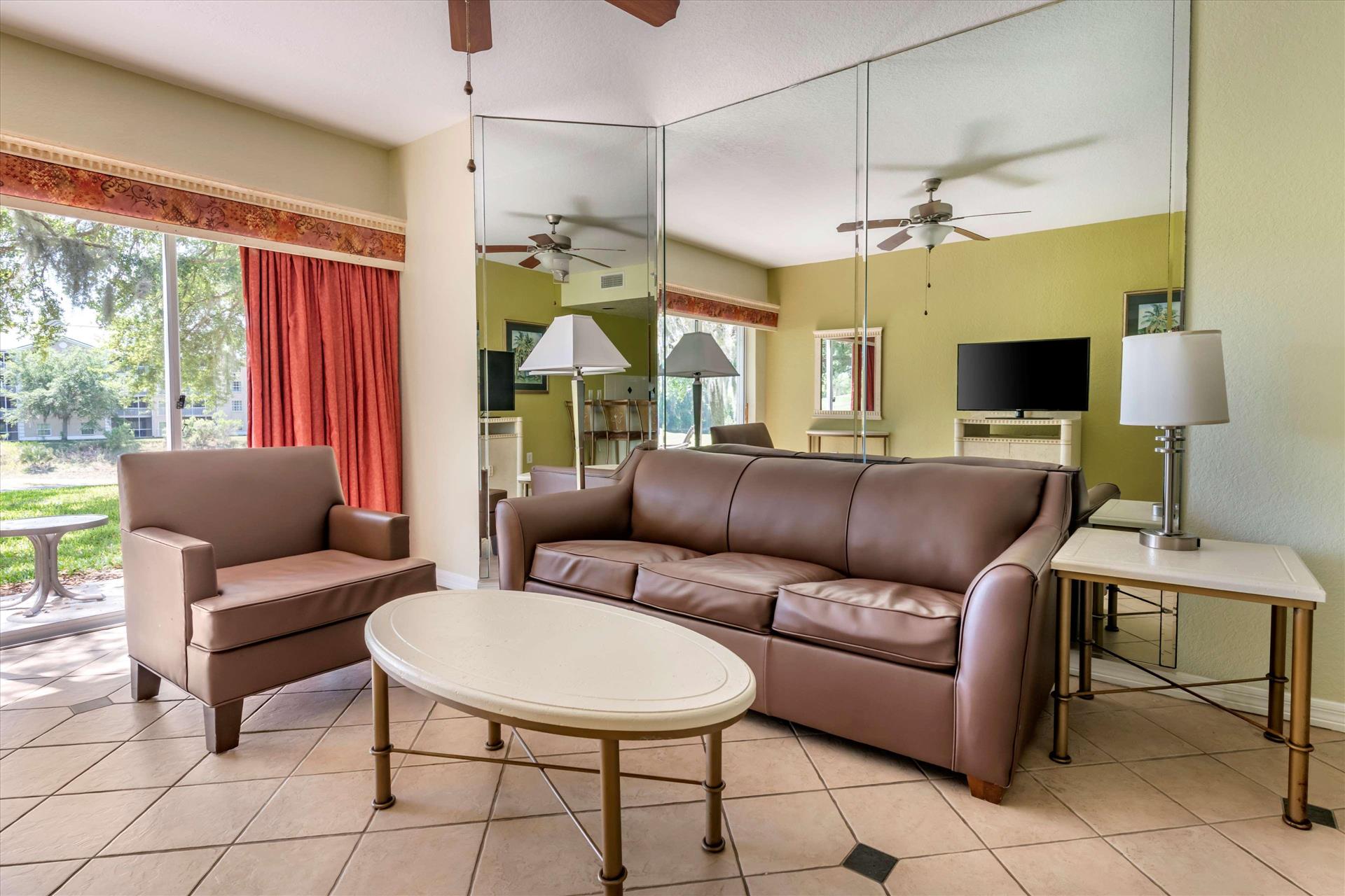 4 out of 5Daily Resort Charge will be added to the room rate and includes: Guest internet access; mini golf; sports equipment including tennis rackets/balls, pickle ball, basketball, shuffleboard, and ping pong; bicycle rentals; DVD rentals; use of gaming consoles (Wii/Xbox); Disney/Universal parks shuttle. Discover the perfect family getaway at Hilton Vacation Club Mystic Dunes in scenic Celebration. Our resort is tucked among 600 acres of rolling hills, lush Florida nature preserves and the emerald greens and fairways of our championship golf course. Conveniently located just five miles from the entrance to Walt Disney World® and seven miles from Celebration Town Center. On-site amenities include four heated pools, mini golf, full service restaurant, complimentary theme park shuttle, fitness center, and children's activity center. Rest well after a fun day in our comfortable one- to three- bedroom suites, with kitchenette or fully equipped kitchen.