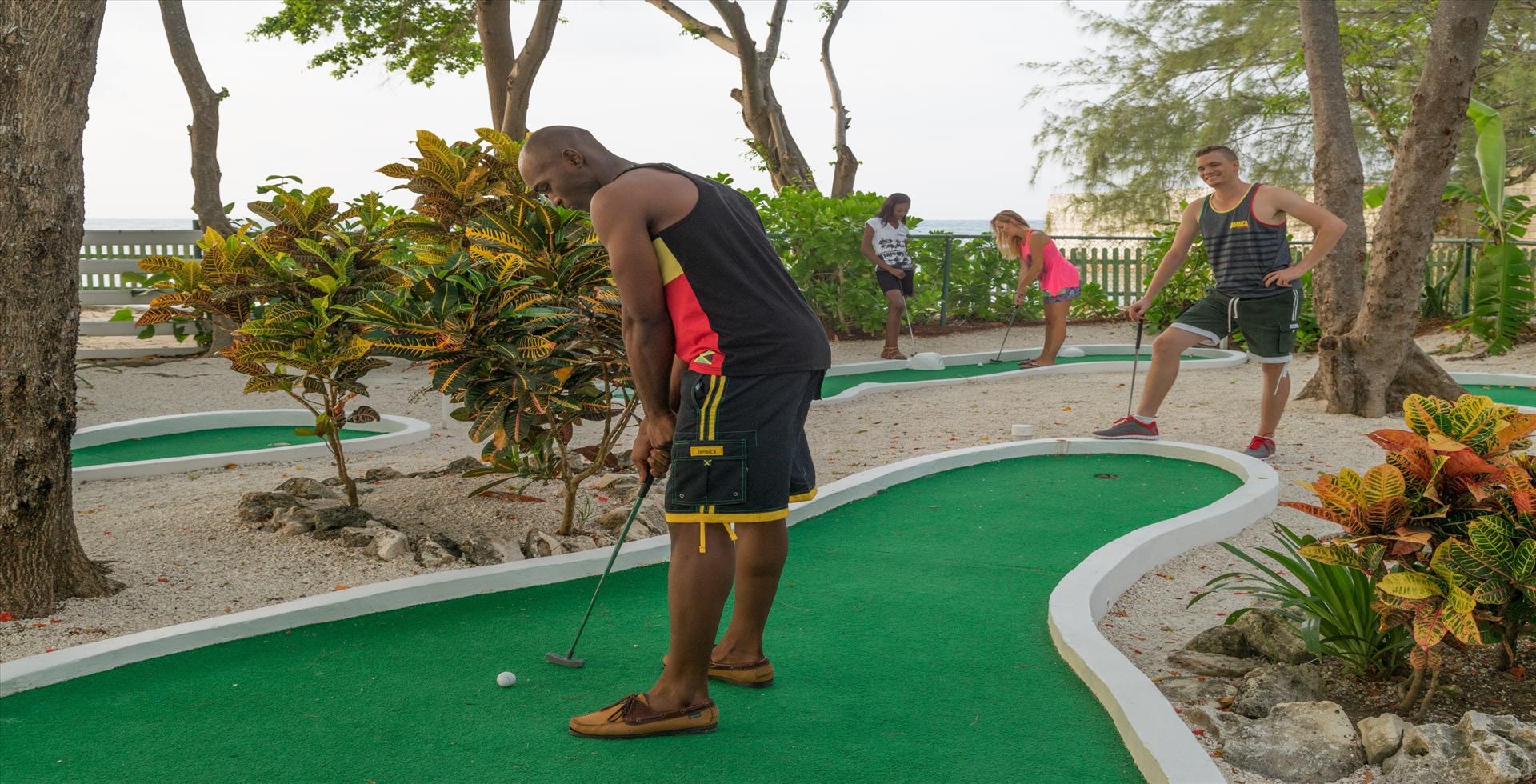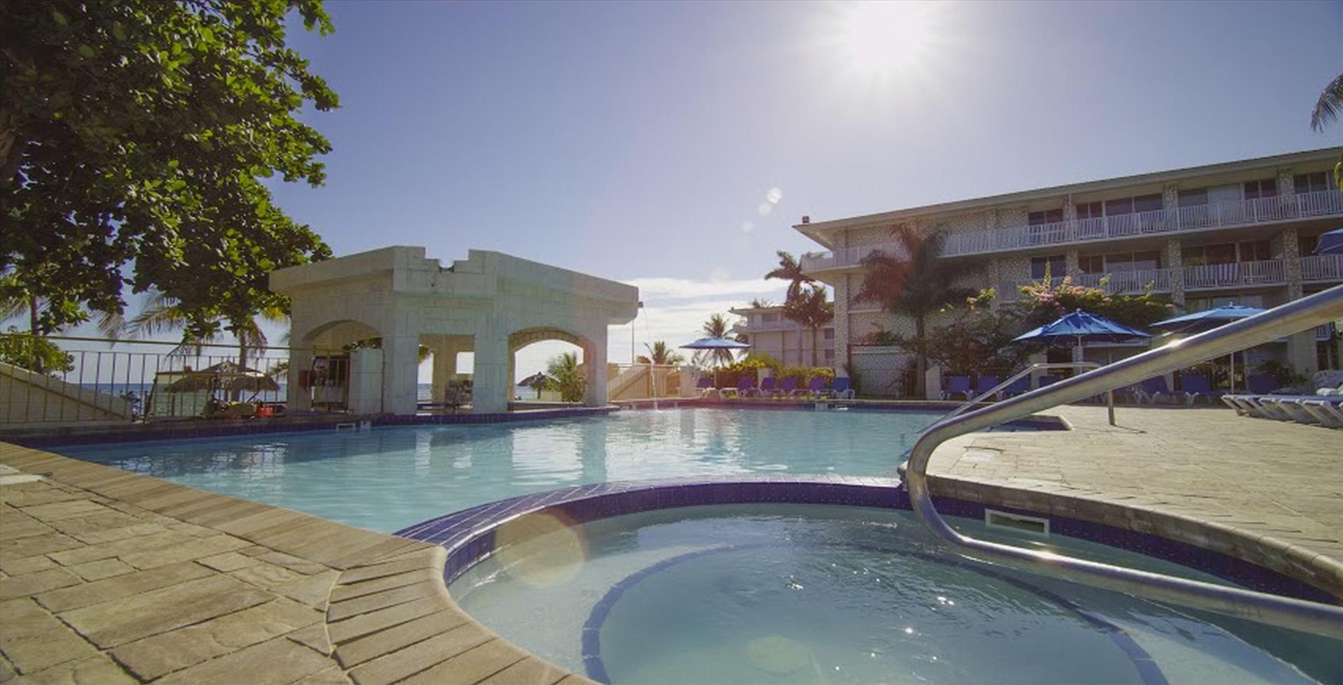 The Newly renovated Holiday Inn Resort All Inclusive is located approx. Eight (8) miles from Montego Bay and 6 miles from Sangster International Airport. The remodeled open-air lobby is gorgeous and inviting with its sleek Shangri La courtyard, lobby bar & comfortable seating area. Resort Amenities include 2 pools: a large lagoon-shaped, free-form swimming pool with wheelchair accessibility & an adult-only pool featuring swim-up bar & whirlpool. A kids water fountain, state of the art fitness center, 4 lighted tennis courts, Basketball, 9 hole Mini Golf Course lit for night play, non-motorized Water Sports (Snorkeling, Pedal Boats, Kayaks), Scuba Diving (PADI 5 Star Dive Facility), Internet access (charges apply), an oceanfront whirlpool, Port Royal pub/lounge, children activity centers, adult activities, photo shop, shopping, internet centre, wedding centre, a wide variety of indoor & outdoor activities, an electronic ?casino (ages 18 & over) and arcade games are also available.