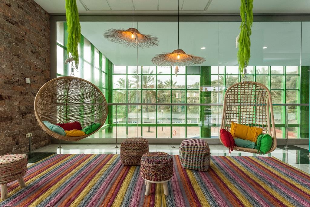 Enjoy stunning views of the Mediterranean Sea at this family hotel in Benalmádena, part of the Holiday World Resort, featuring diverse dining options, swimming pools, and entertainment for all ages. Choose the all-inclusive service and enjoy exceptional comfort for an unforgettable family holiday on the Malaga coast. Enjoy an unforgettable family getaway at the Holiday World Riwo Affiliated by Meliá hotel, where nature-inspired decoration and a tropical jungle with an indoor lake will welcome you upon arrival. Spacious, bright, and well-equipped rooms ensure the comfort of all guests. Enjoy all-inclusive services including an outdoor pool with a sun deck, a children's pool, a mini-club, a teen zone, and a wellness area with a heated pool. Guests also have access to the Holiday World Beach Club, offering a variety of leisure areas, pools, and exciting water sports, perfect for families seeking fun and relaxation. Pets are not allowed.