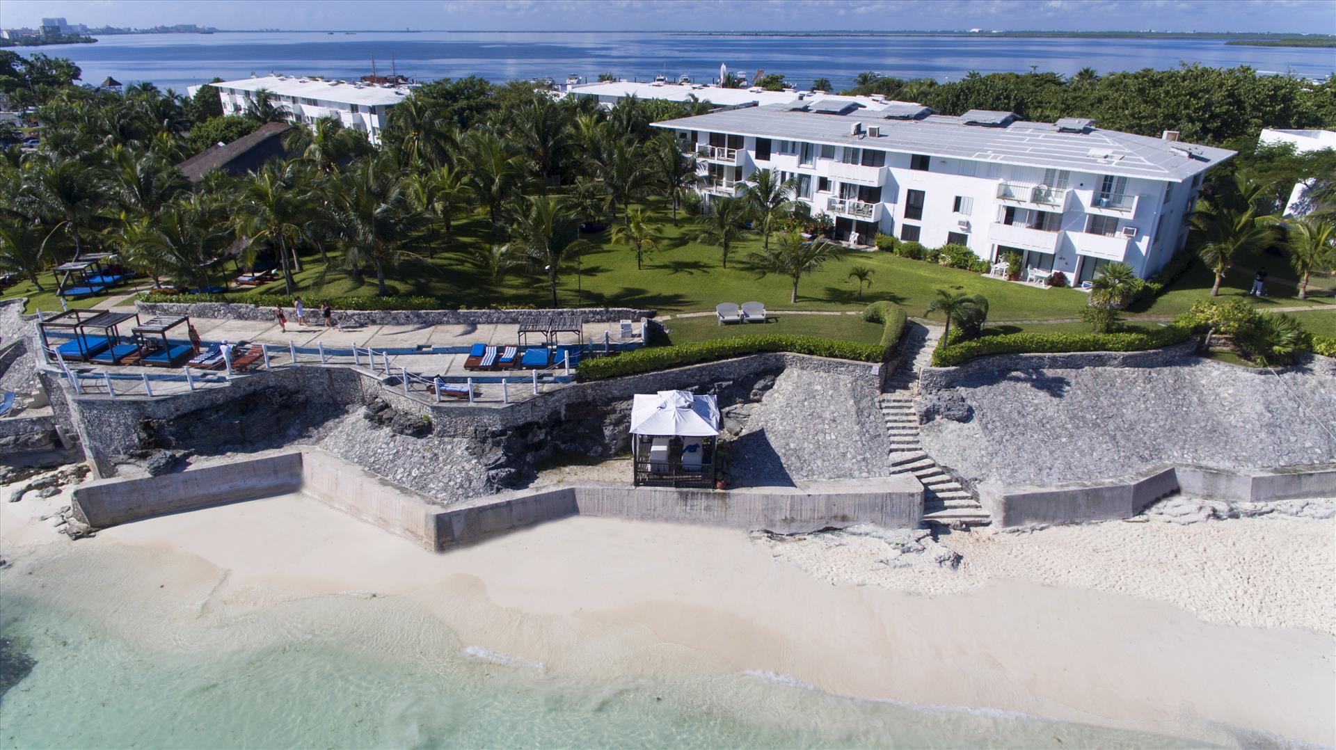 This gorgeous hotel enjoys a fabulous location in Cancun seafront, just a few steps from the famous Kukulkan Boulevard and a short car drive from the city centre. Surrounded by swaying palm trees and just steps from the white sandy beach bathed in crystal-clear turquoise waters of the Caribbean Sea, this wonderful property is an ideal destination for all those wishing to unwind and charge their batteries. The establishment boasts spacious and light-filled double and triple rooms. Each of them features natural hues and charming décor to induce a homely atmosphere. Patrons may relish the opportunity to savour delicious dishes in a relaxed ambience of the traditionally-decorated hotel restaurant. Afterwards visitors may have a refreshing plunge in the dazzling outdoor pool, play tennis on the on-site court or unwind on the sun terrace provided with deckchairs.