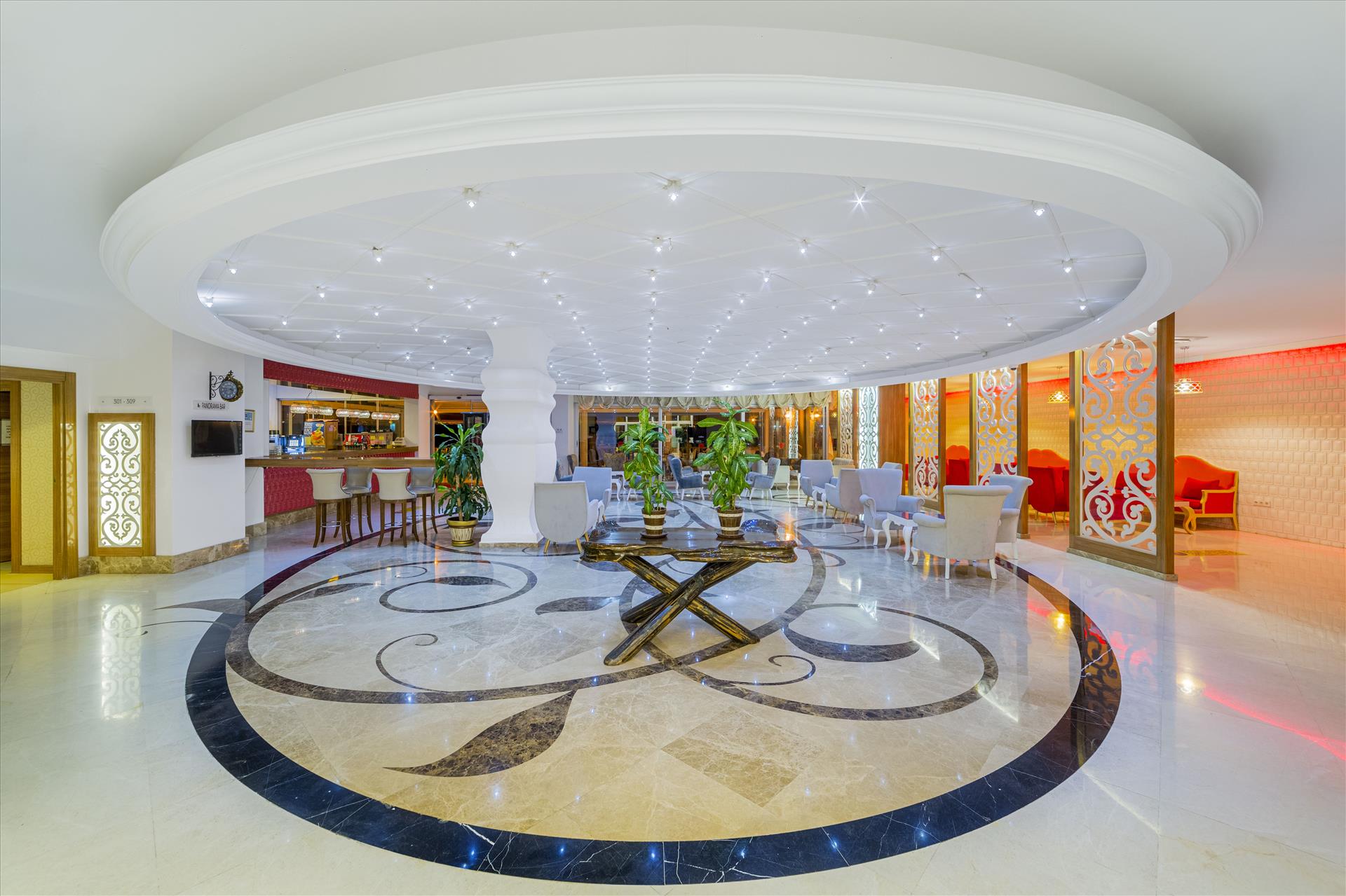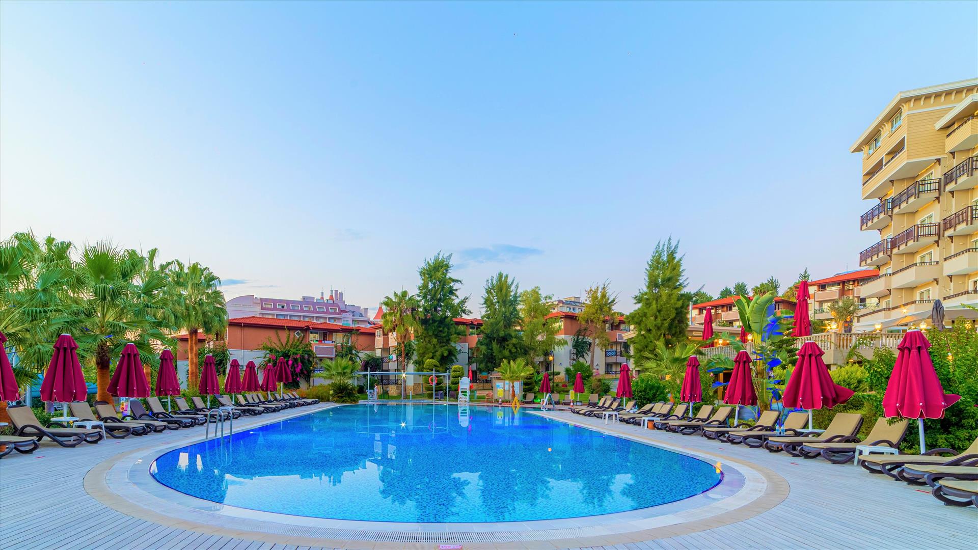 Offering a private beach area with free sun loungers and parasols in Okurcalar, the all-inclusive Justiniano Deluxe Resort features an outdoor pool with slides and an indoor pool. A fitness center, sauna, Turkish bath and massage facilities are available. Free Wi-Fi is accessible in lobby. The air-conditioned rooms at Deluxe Resort Justiniano are equipped with a minibar, stocked weekly, and a flat-screen TV with satellite channels. Guests can sample a range of Turkish and international cuisine meals at the hotel’s various dining options including the themed restaurants, beach bar and pool bar. A nightclub is also available. The on-site mini market provides necessities. Hotel activities include water sports, windsurfing, beach volley, billiards, table tennis and darts. The entertainment staff organizes various shows and tournaments throughout the day. This large property is located 35 km from Alanya town center. Antalya Airport is 90 km away.