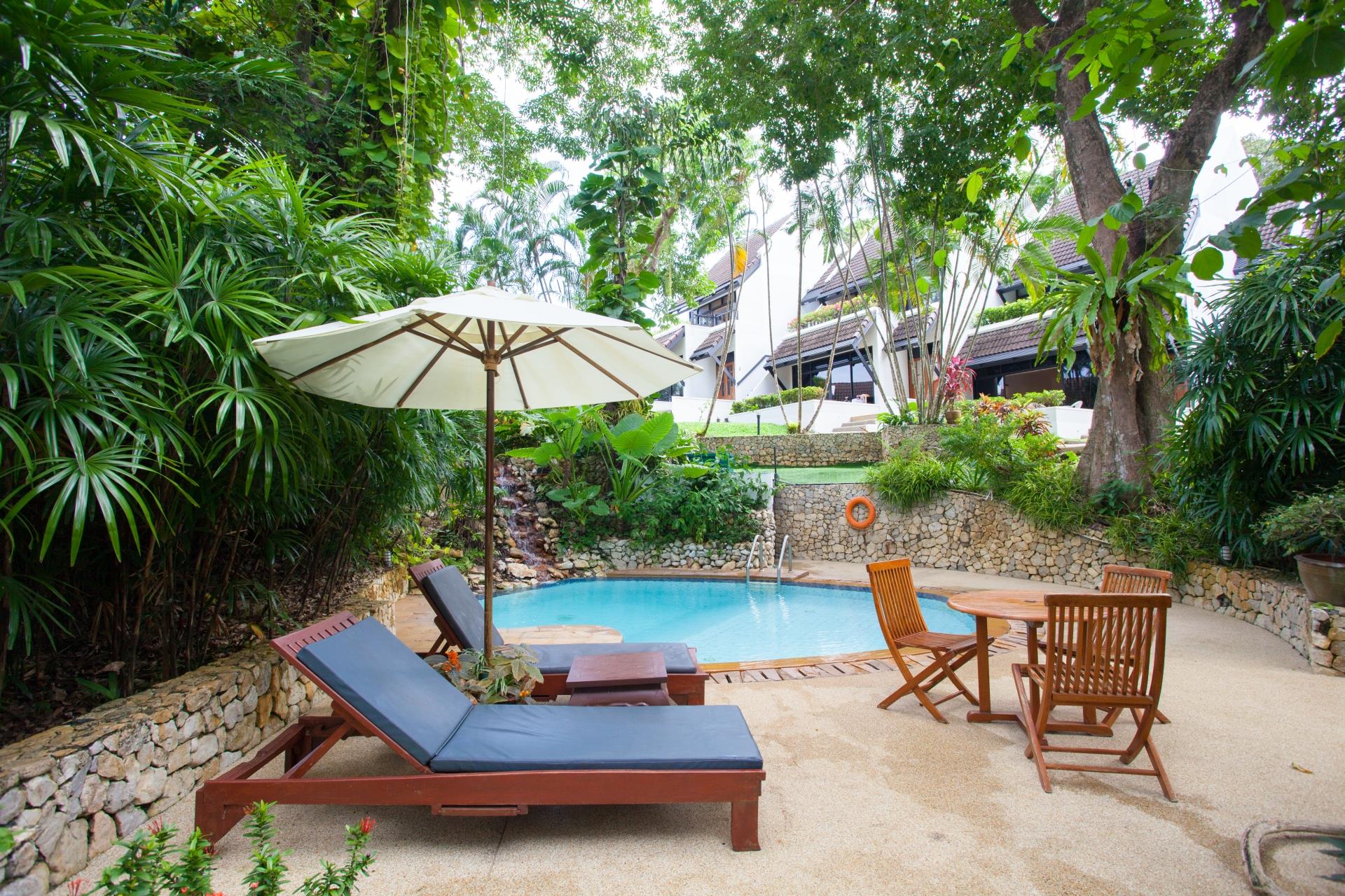 While the outside space is lovely and appears well looked after our apartment was dated and needed tlc. The kitchen was seriously outdated, with most of the base units hard to open and close. We couldn't even get the hotplate to work during our 7 day stay, so gave up and just used the oven. The bathroom consisted of toilet, wash basin and a shower, which had a washing machine plumbed onto the shower tray. We were not impressed at this, it's really not a good idea to have power next to a water source, so we didn't use the washing machine. Also, we felt 1 small bottle each of water per day rather stingy, it meant we needed to stock up at the 7-11 or supermarkets daily on water. While the 7-11 is only a 5 minute walk, it's not a flat walk, and in the heat, the water soon gets heavy. So in all, not impressed with the standard of the accommodation itself. I believe other units were being modernised, maybe this one is next? If not, it needs to be.