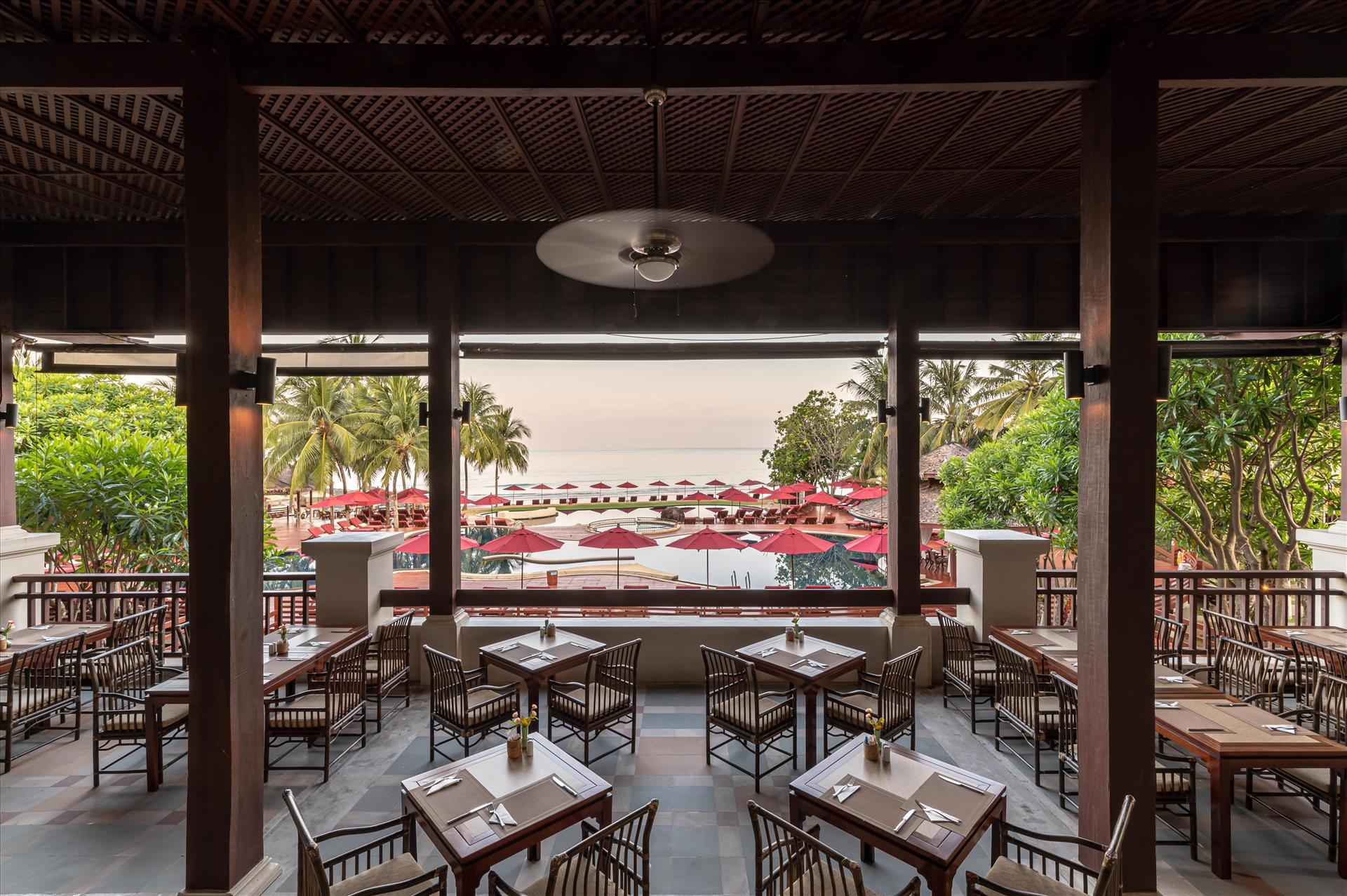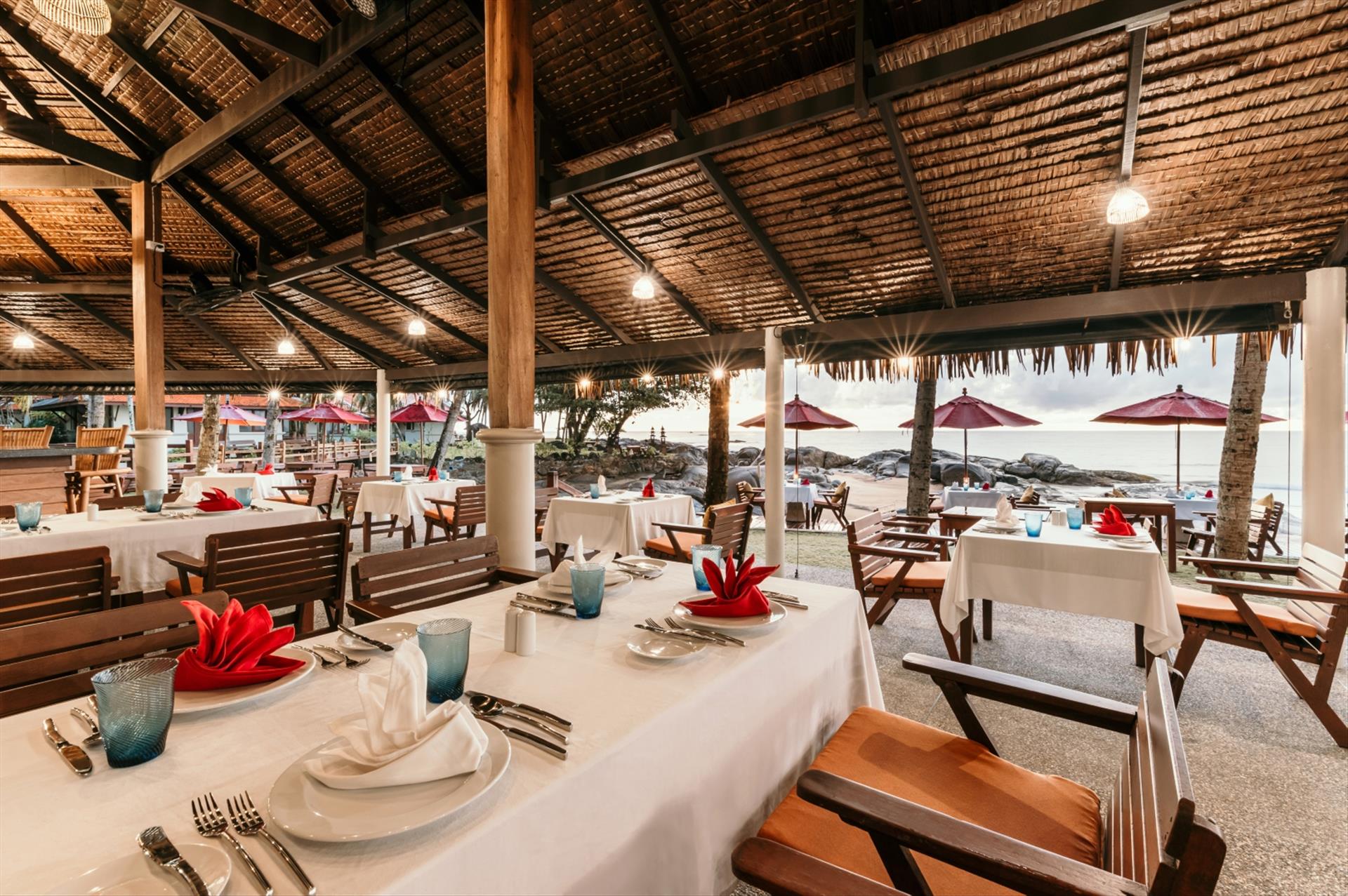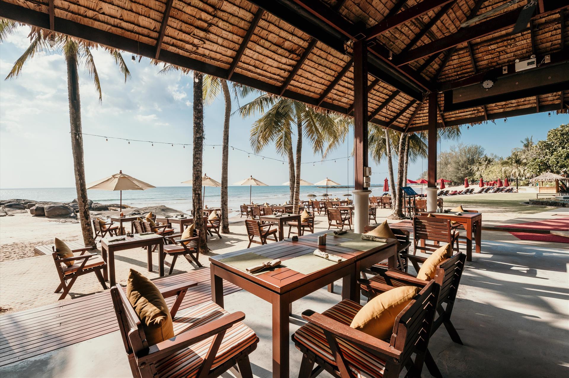 Villa allocated was on a building site, with orange building sand everywhere which ruined shoes and clothing! Bulldozer and vehicles blocking views of the sea and so noisy, from 8.00 am some mornings! The bed in the villa was very uncomfortable, as the mattress needed renewing - dips both sides - poor sleep for a week - dreading laying on it! Restaurant staff (Ju, in particular) at beach restaurant rude, to the extent that she admitted not listening to me and another taking my husband’s dinner plate, when he hadn’t finished - just paused for a drink! Restaurant supposedly takes last orders at 10.30 pm, but on our arrival at 9.30 pm, we got our three courses delivered within a few minutes of finishing the previous course. When I confronted Ju about our dessert arriving almost immediately, when I had requested at least a 10 minute break, firstly she said that she didn’t listen to me and then that the chefs like to leave 10.30 at the latest! As we were eating our main meal, shutters were being pulled down blocking our view of the sea and chairs stacked. Such a terrible experience, would not recommend this restaurant, especially as there are very good restaurants literally right outside the hotel, who appreciate your business! The beach which lots of people rave about was non existent in the day, as the sea comes right in. The hotel grounds are on a cliff edge looking down on the beach, which is considerably lower. The sunbeds dotted along the edge and around the pool are always reserved early in the morning - we didn’t get one for the 7 days we were there! All in all dreadful experience!