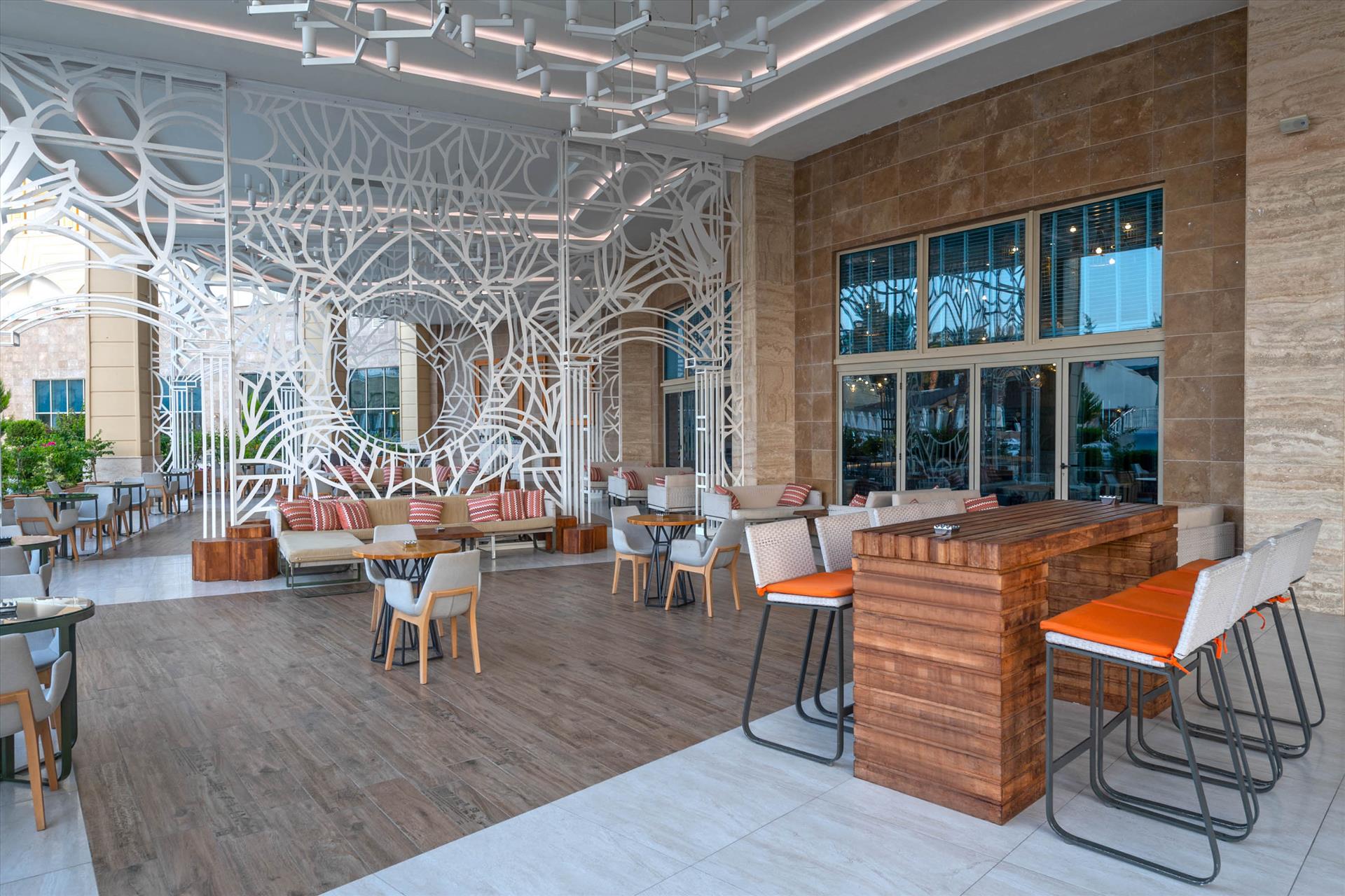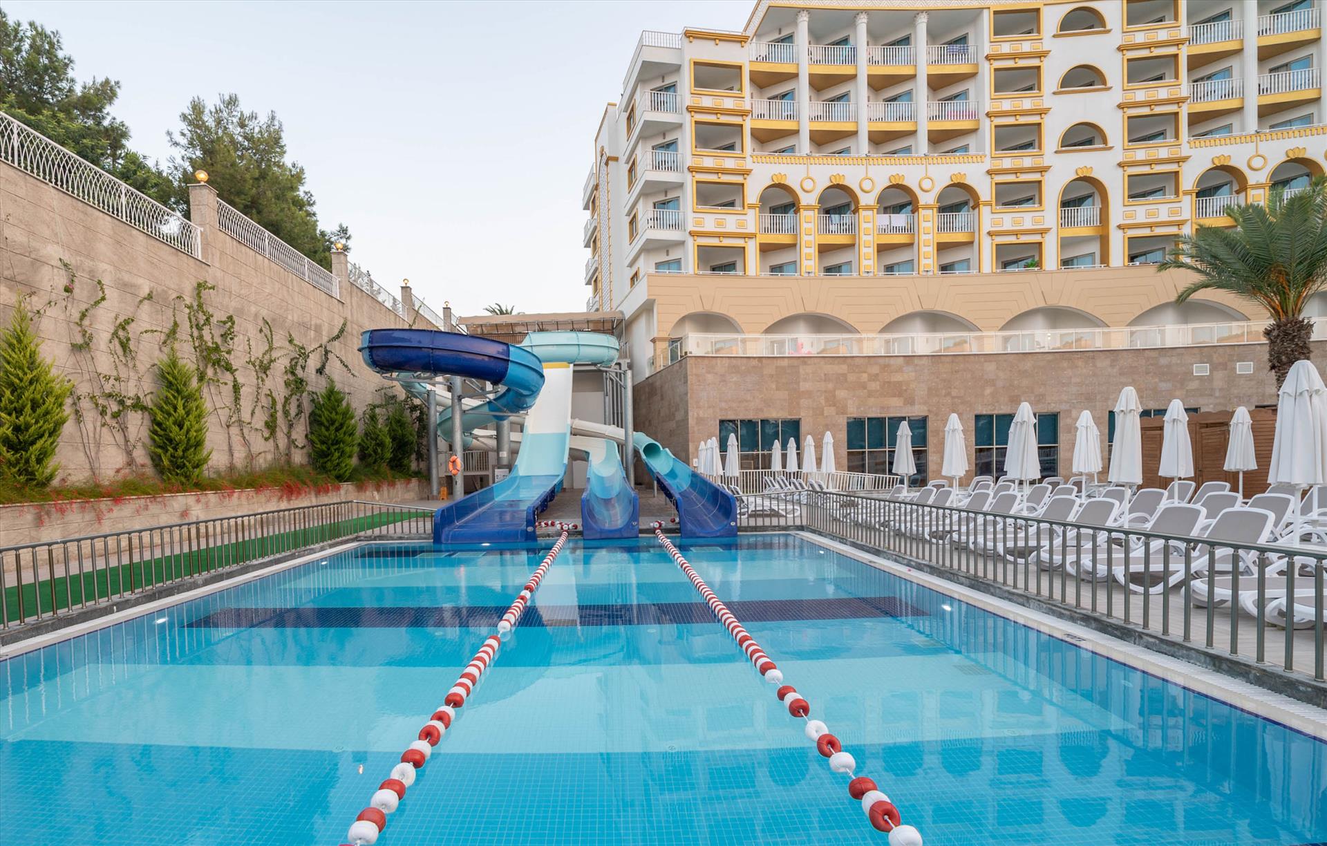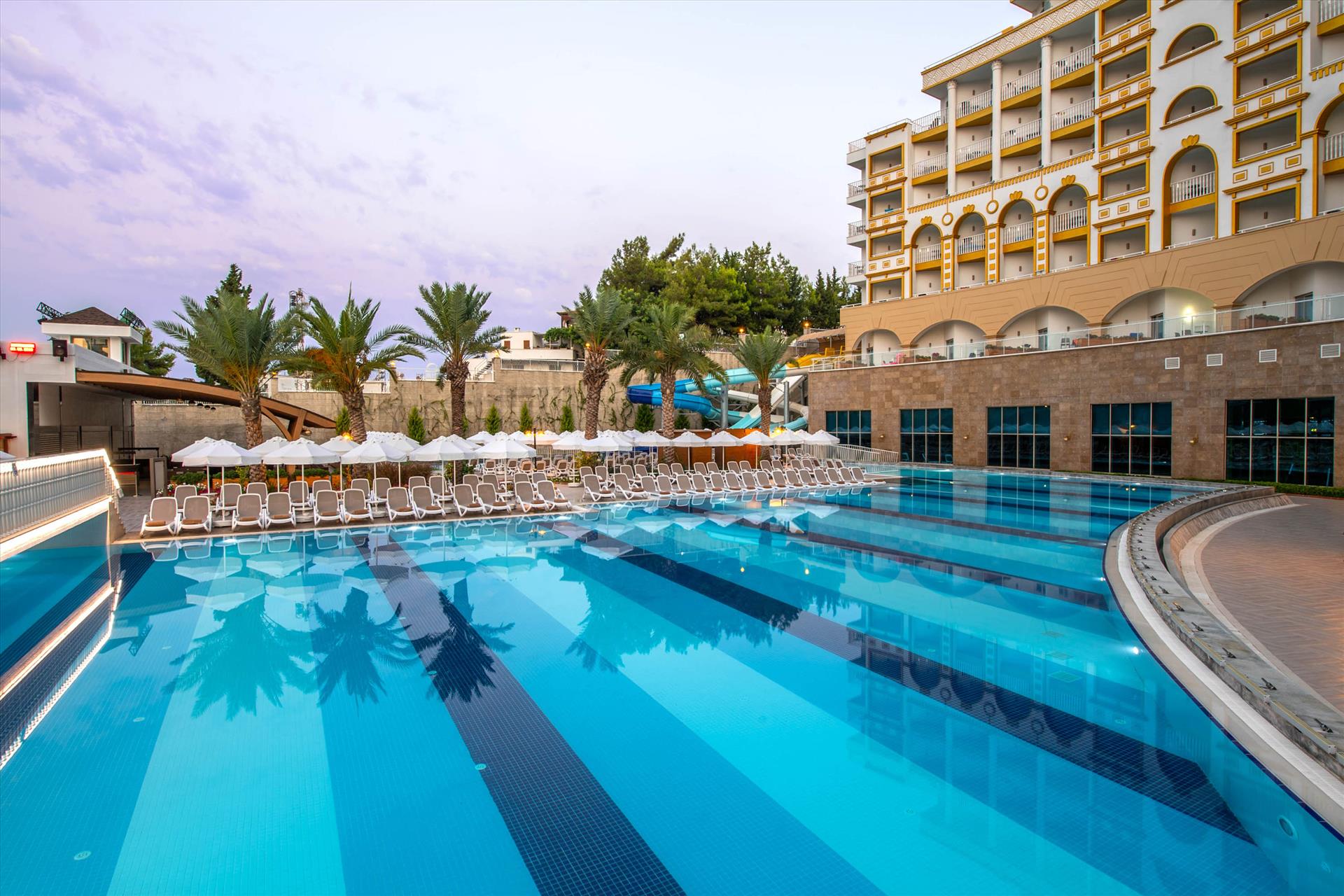 In the heart of Manavgat, Kirman Sidemarin stands out with its modern design, luxurious hospitality, and beachside location. With an ultra all-inclusive experience, savor delicious flavors from around the world at the main buffet or explore unique dining options at our à la carte restaurants. The 1500 m² pier, expansive pools, and fun water parks promise excitement for all ages. With family-friendly features, kids’ clubs, and special room options, Kirman Sidemarin offers an ideal setting for a memorable family holiday. Experience moments of joy, relaxation, and wellness with our exclusive spa services and entertainment.