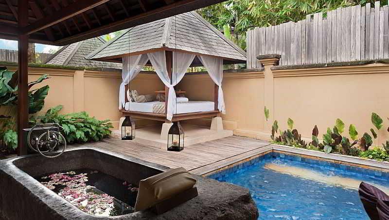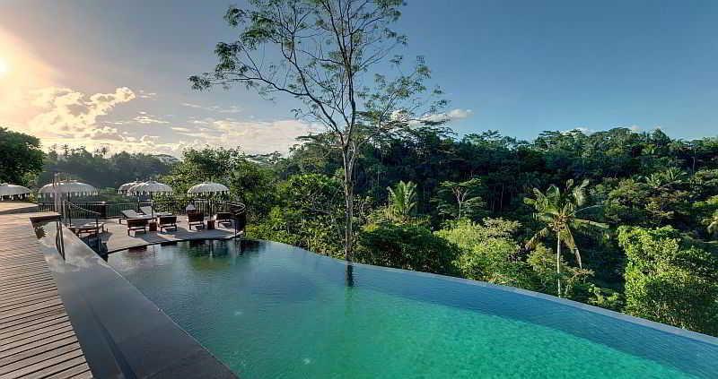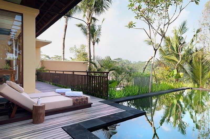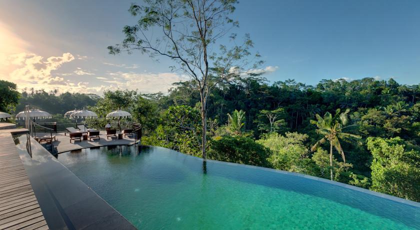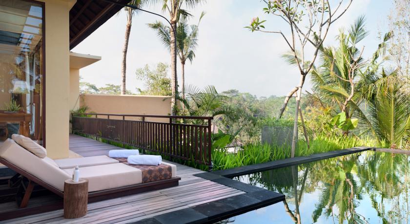 Wow, this is a very special place to stay outside of the hubbub of Ubud. The grounds were absolutely beautiful and peaceful, surrounded by jungle and the sounds of frogs, birds and geckos. We stayed in one of the Premier Valley Pool Villas that had a very spacious bedroom with a king bed, a desk and chair, a couch and coffee table, a cabinet with a mini fridge and fresh fruit, air conditioning control and sliding glass doors that opened out onto a deck. The deck had a table and two chairs, two lounge chairs and a lovely private pool overlooking the jungle. The bathroom was huge, with two sinks, lots of counter space and two different places for hanging clothing. There was a big indoor, as well as an outdoor, shower. Breakfast, which was included, offered both a big buffet as well as both Balinese and Western menu items. Also included was daily afternoon “tea” by the beautiful main pool which offered all kinds of sweet and savory snacks as well as coffee, tea and very good local rose wine. The food was delicious. The staff — at the front desk, in the restaurant, and around the grounds — was very warm, welcoming and responsive. When we mentioned to one of the staff that we were celebrating our wedding anniversary, our room was decorated for the occasion! There was often live gamelan music being played in the dining room and plenty of invitations for us to join in various cultural activities. We watched the staff prepare the offerings for the annual festival of one of the Hindu goddesses and attended the ceremony at the hotel temple the following morning with the staff and the owners of the hotel. Overall, it was a very memorable four days.