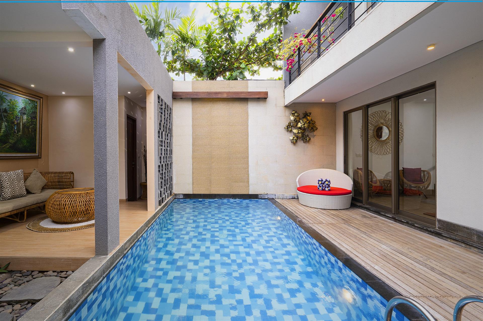 Lasanti Villas truly combines tropical island living and metropolitan convenience in soothe and comfortable environment. It offers 10 villas of One Bedroom Villa with Private Pool and 3 villas of Two Bedroom Villa with Private Pool. Each villa has been well designed with totally intimate and privacy. It is situated in quiet area and located in border of Legian and Kuta, it takes only 15 minutes drive from I Gusti Ngurah Rai International Airport, 15 minutes walk to the famous Double Six Beach, 10 minutes drive to Seminyak Square and 15 minutes drive to Potato Head Beach Club. It also surrounded by food street, restaurants, cafe, shopping center and boutiques that makes you enjoy your holiday in Bali.
