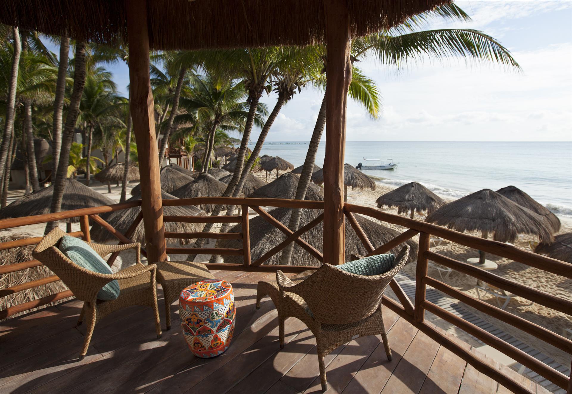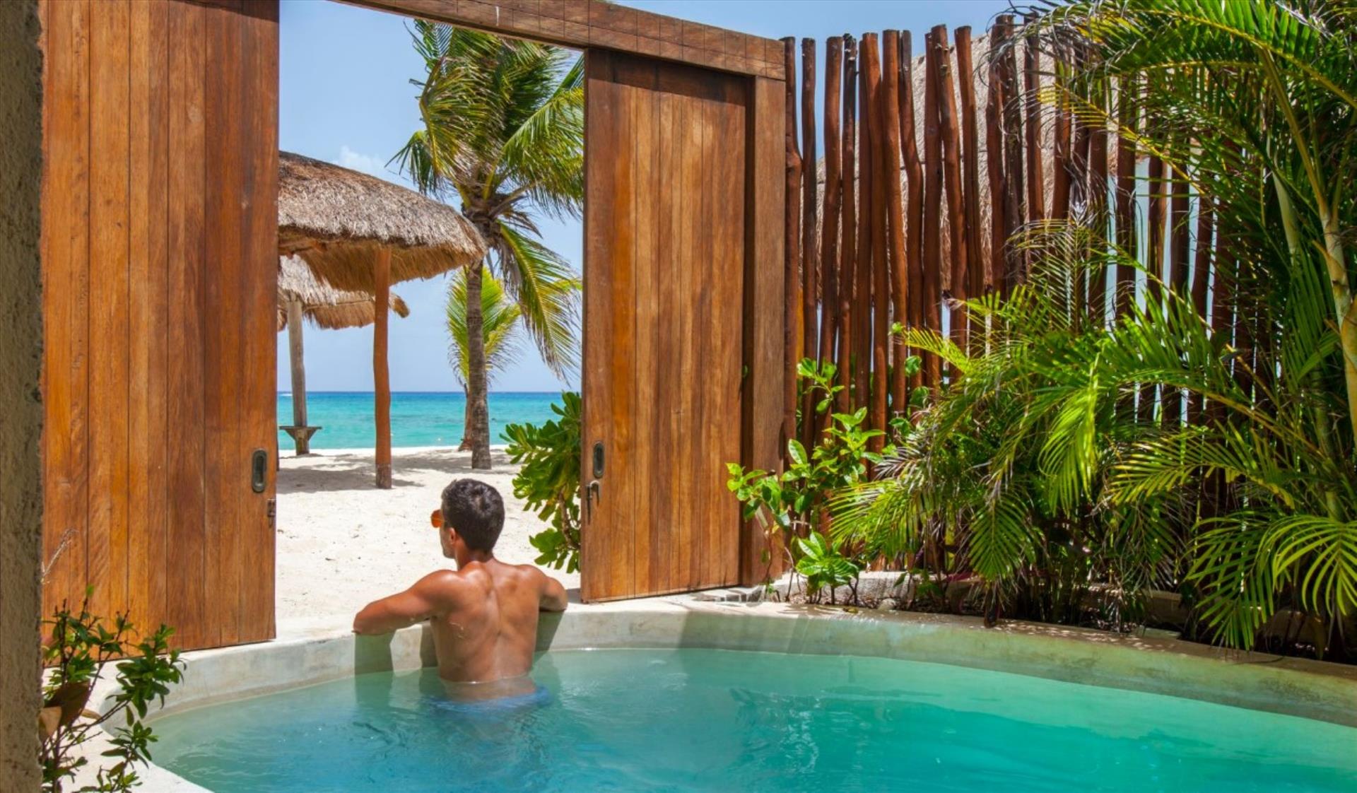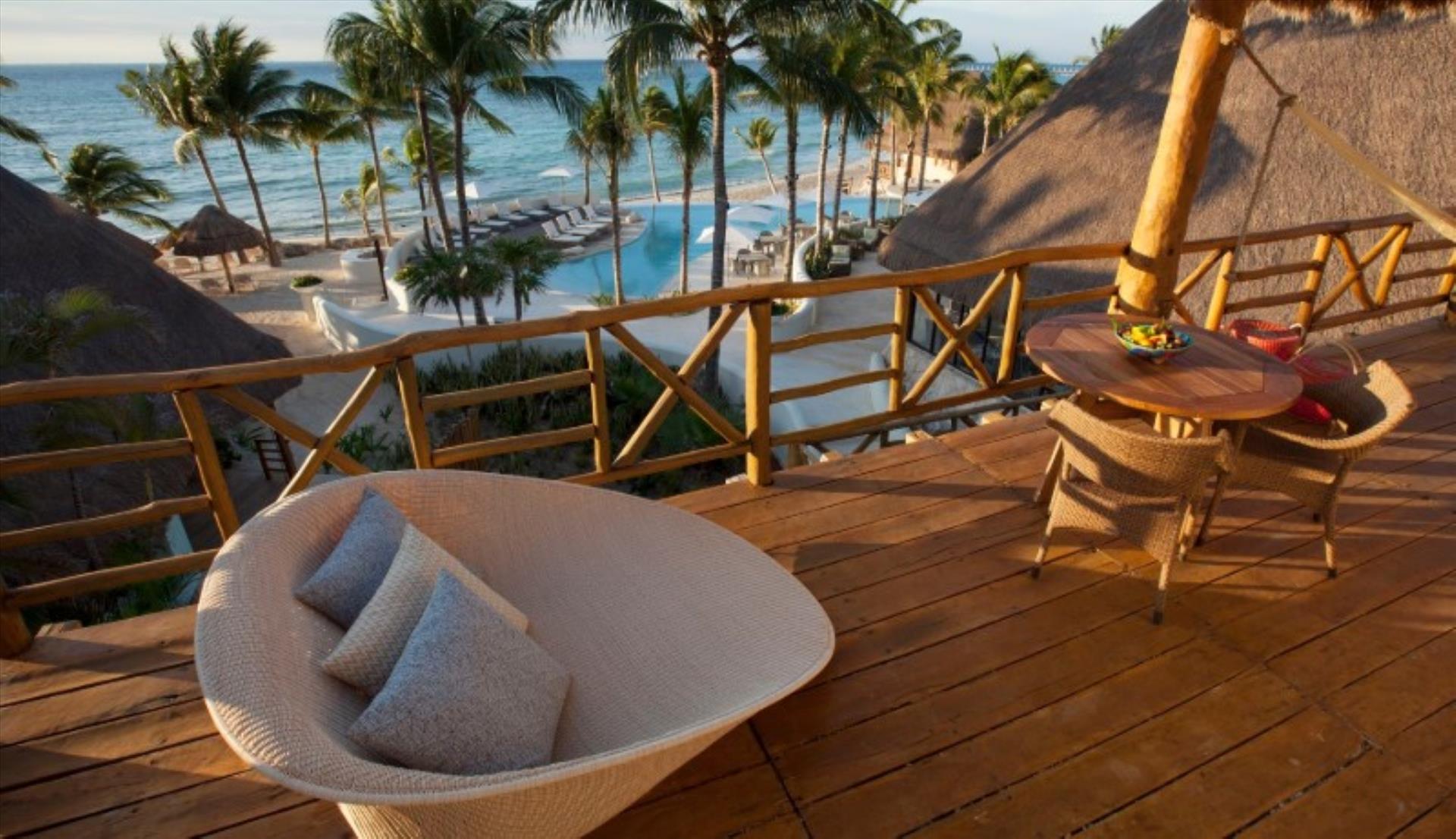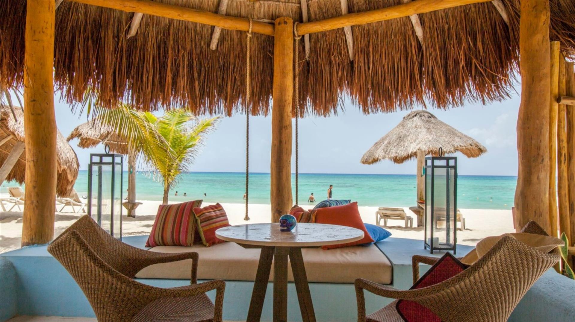 4 out of 5This beachfront eco-chic bohemian hotel places its guests just meters away from the sandy strip and is the perfect place for a sun-soaked vacation in heart of Playa del Carmen since 1985. Its guests can reach the center of the resort, the restaurants, bars, pubs, shopping outlets and the tourist sites on La Quinta Avenida within a 05-minute walk. The concept of the venue is to provide the perfect conditions for relaxing and romance, so there are no TVs, phones or radios in the rooms. But to compensate for that there are large comfortable beds and private terraces with hammocks, where one can spend the warm afternoons with a good book in hand and a chilled cocktail by his side. If some extra pampering is needed the onsite spa center can provide a number of treatments and massages, which will surely nourish both the body and the mind. WiFi access is provided in the lobby, each guest´s room and the conference place. The property is part of Top 20 Travel & Leisure 2021 and Condenast Travel 2021. LGBT+ friendly and Small dogs/cats allowed on request with extra charge. Excellent place for groups and weddings. We remind you $35usd Resort Fee and $1.6usd Environment Fee are going to be charged daily at arrival; The Service Fee $15usd night is applicable to All Inclusive plan only. $25usd Per night small dog Fee. Christmas and NYE Fee $80usd per adult and $40usd children payable at check in.