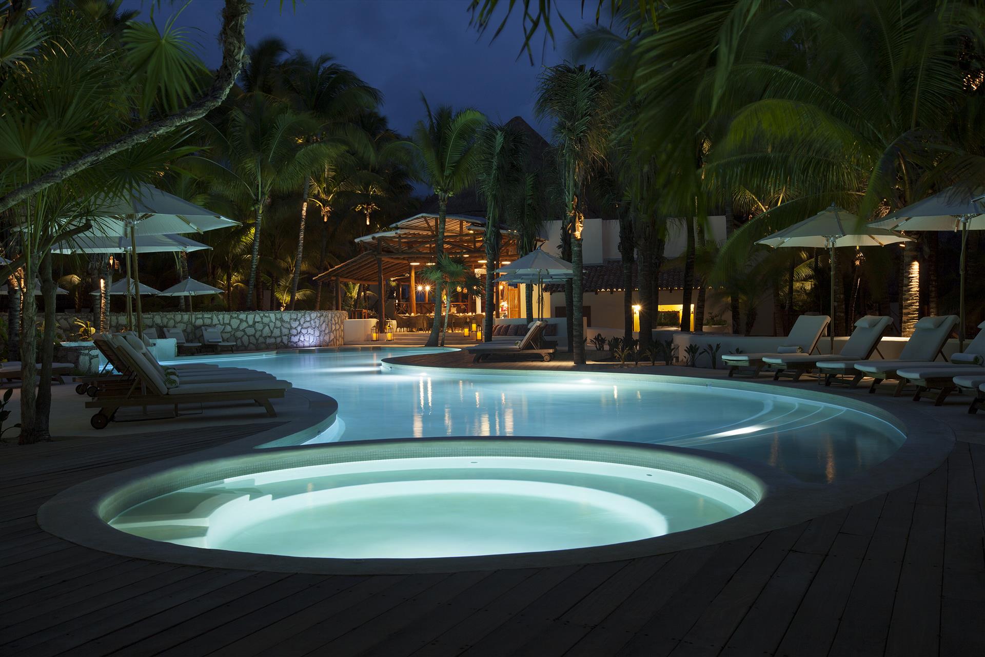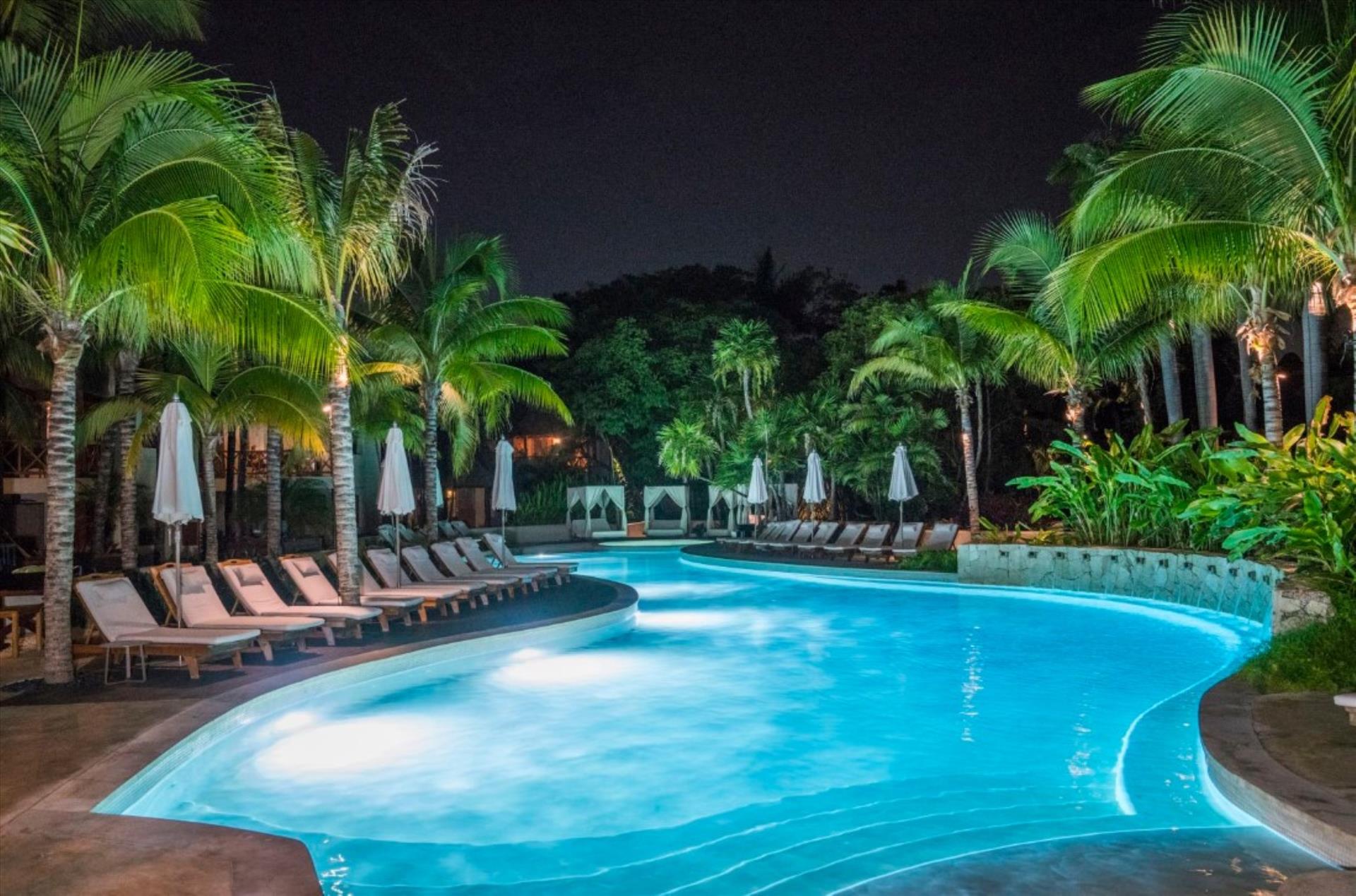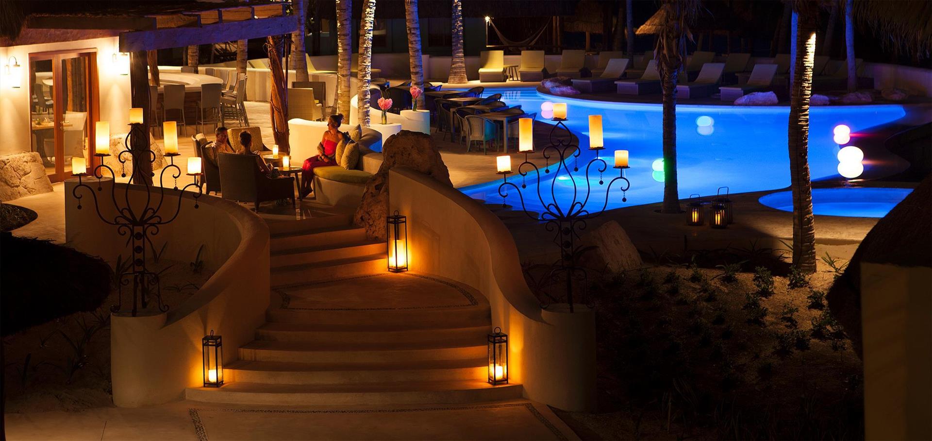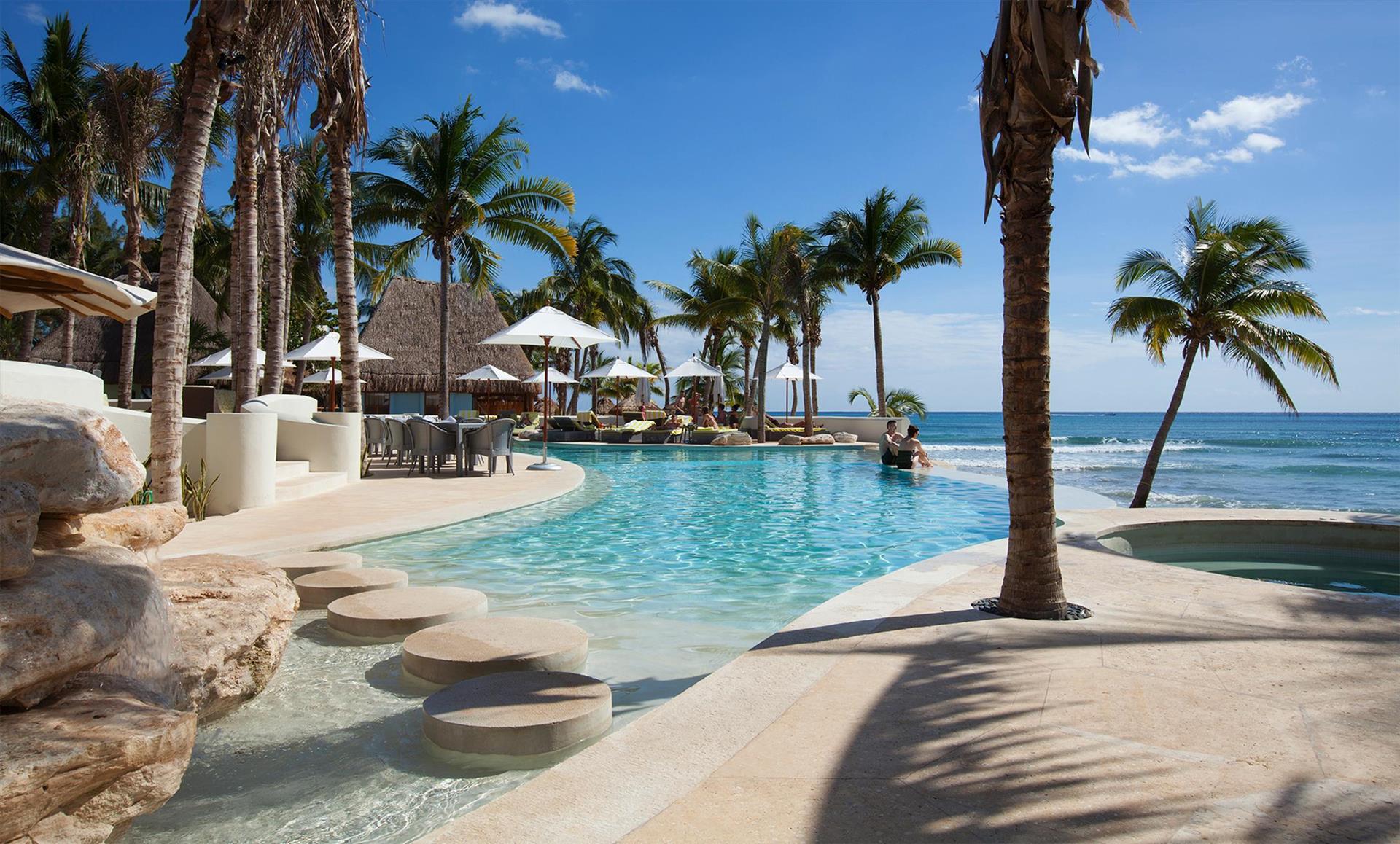 4 out of 5This beachfront eco-chic bohemian hotel places its guests just meters away from the sandy strip and is the perfect place for a sun-soaked vacation in heart of Playa del Carmen since 1985. Its guests can reach the center of the resort, the restaurants, bars, pubs, shopping outlets and the tourist sites on La Quinta Avenida within a 05-minute walk. The concept of the venue is to provide the perfect conditions for relaxing and romance, so there are no TVs, phones or radios in the rooms. But to compensate for that there are large comfortable beds and private terraces with hammocks, where one can spend the warm afternoons with a good book in hand and a chilled cocktail by his side. If some extra pampering is needed the onsite spa center can provide a number of treatments and massages, which will surely nourish both the body and the mind. WiFi access is provided in the lobby, each guest´s room and the conference place. The property is part of Top 20 Travel & Leisure 2021 and Condenast Travel 2021. LGBT+ friendly and Small dogs/cats allowed on request with extra charge. Excellent place for groups and weddings. We remind you $35usd Resort Fee and $1.6usd Environment Fee are going to be charged daily at arrival; The Service Fee $15usd night is applicable to All Inclusive plan only. $25usd Per night small dog Fee. Christmas and NYE Fee $80usd per adult and $40usd children payable at check in.