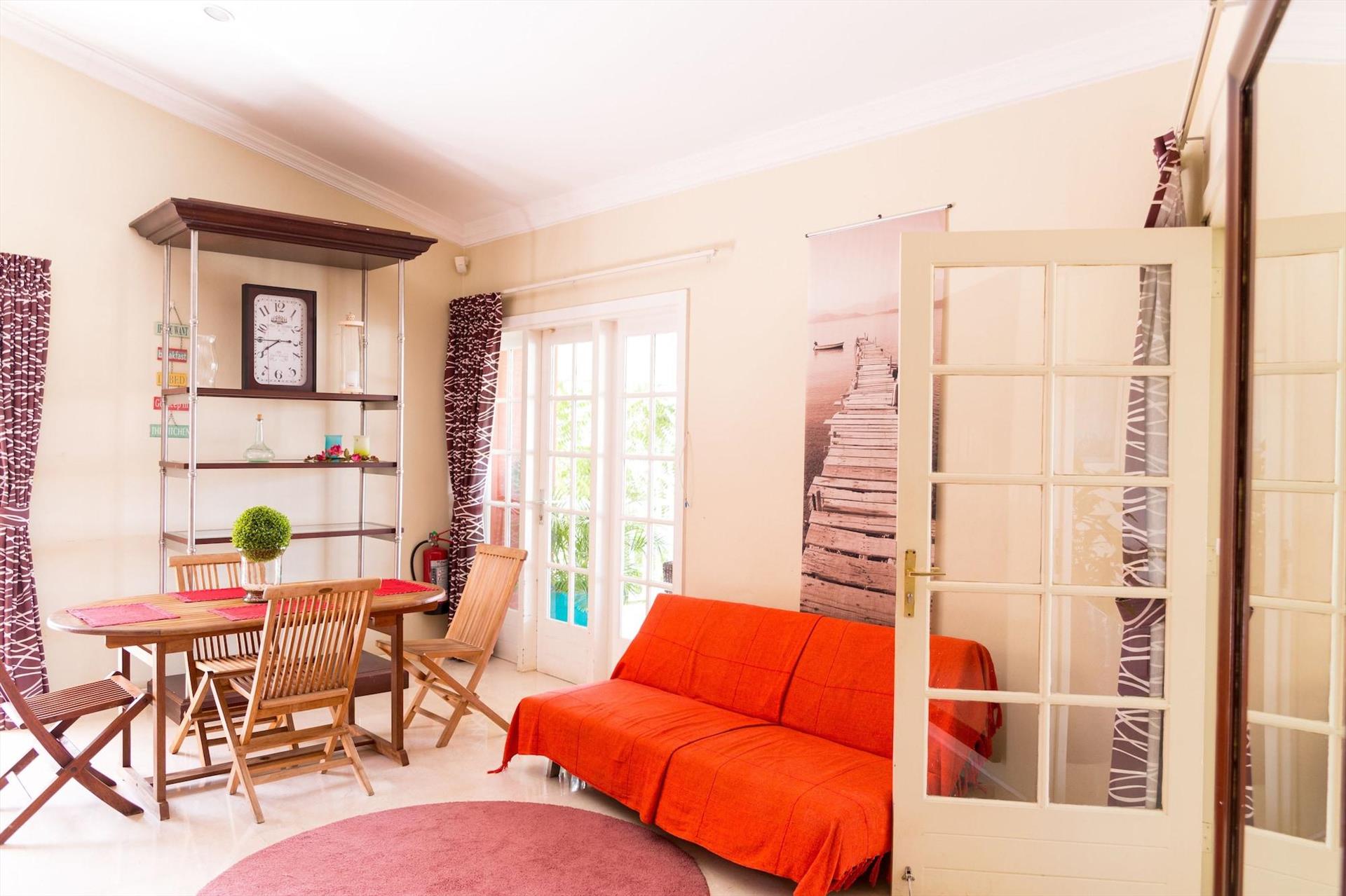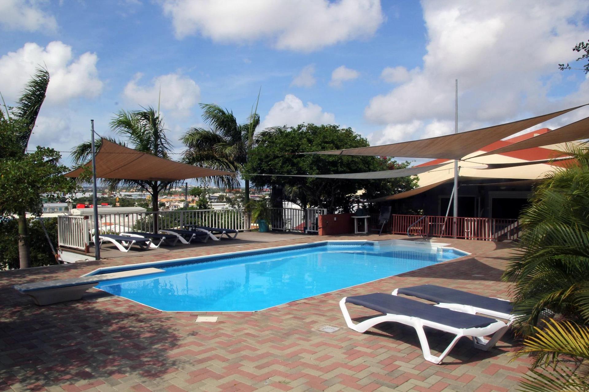 When we arrived Franco greeted us and so graciously carried up our luggage to our room. Walking from the gated parking area we first passed through this beautiful, sparkling pool area with comfortable lounge chairs and a large deck and seating area with incredible city view. It was decorated so beautifully for the holidays with even a Christmas tree! We stayed in the "Angel" room for nine days and would definitely stay there longer the next time we're in Curacao. The location was central to everthing from grocery stores to nightlife. Everything here was so clean and immaculate. Also, the hospitality from both Franco and his lovely wife Luz made us feel like family. Looking forward to spending more time at this quiet and cozy retreat this coming year!