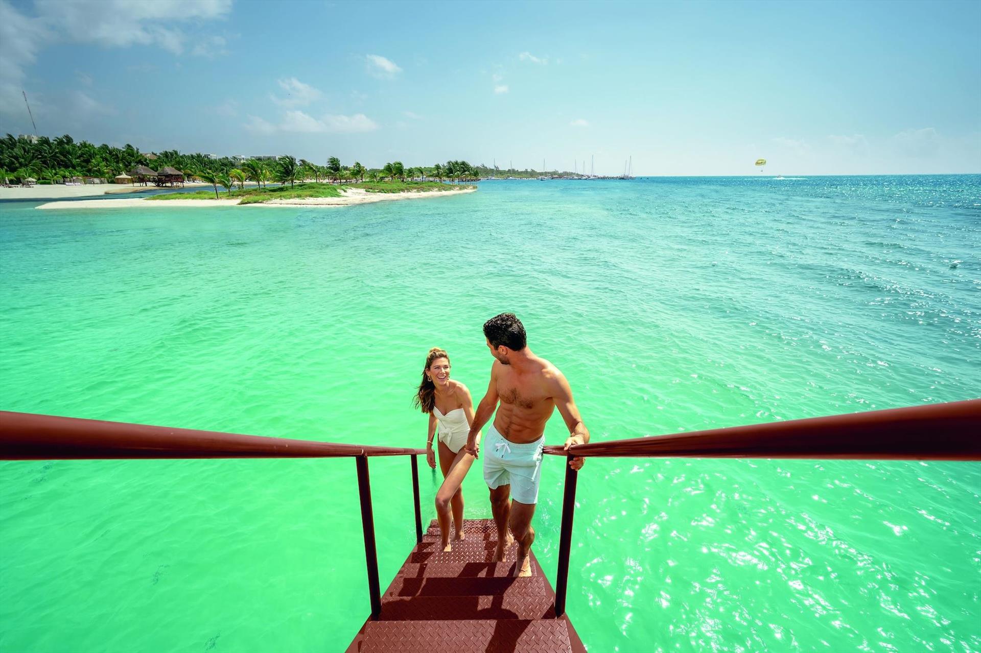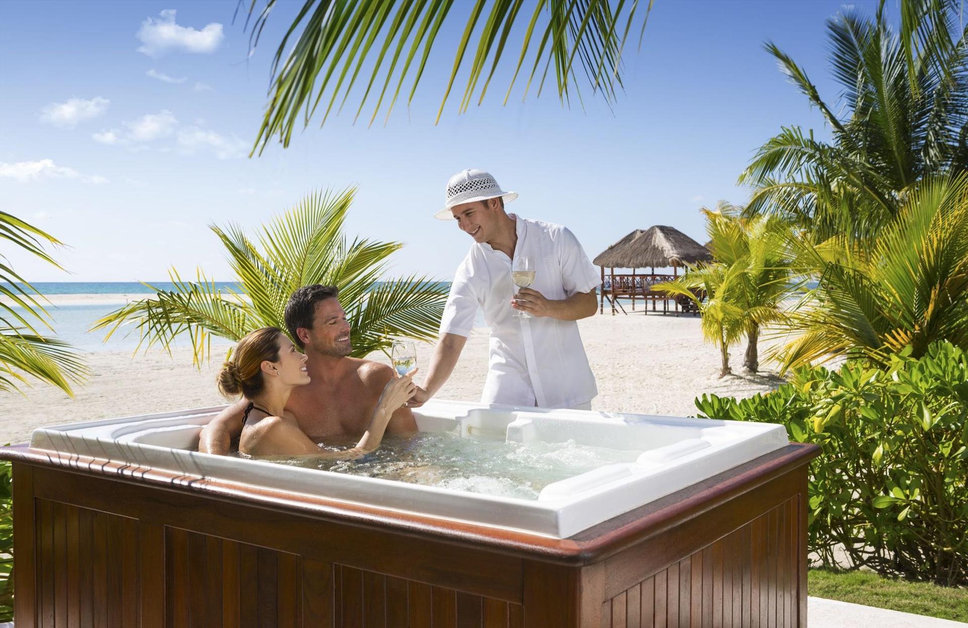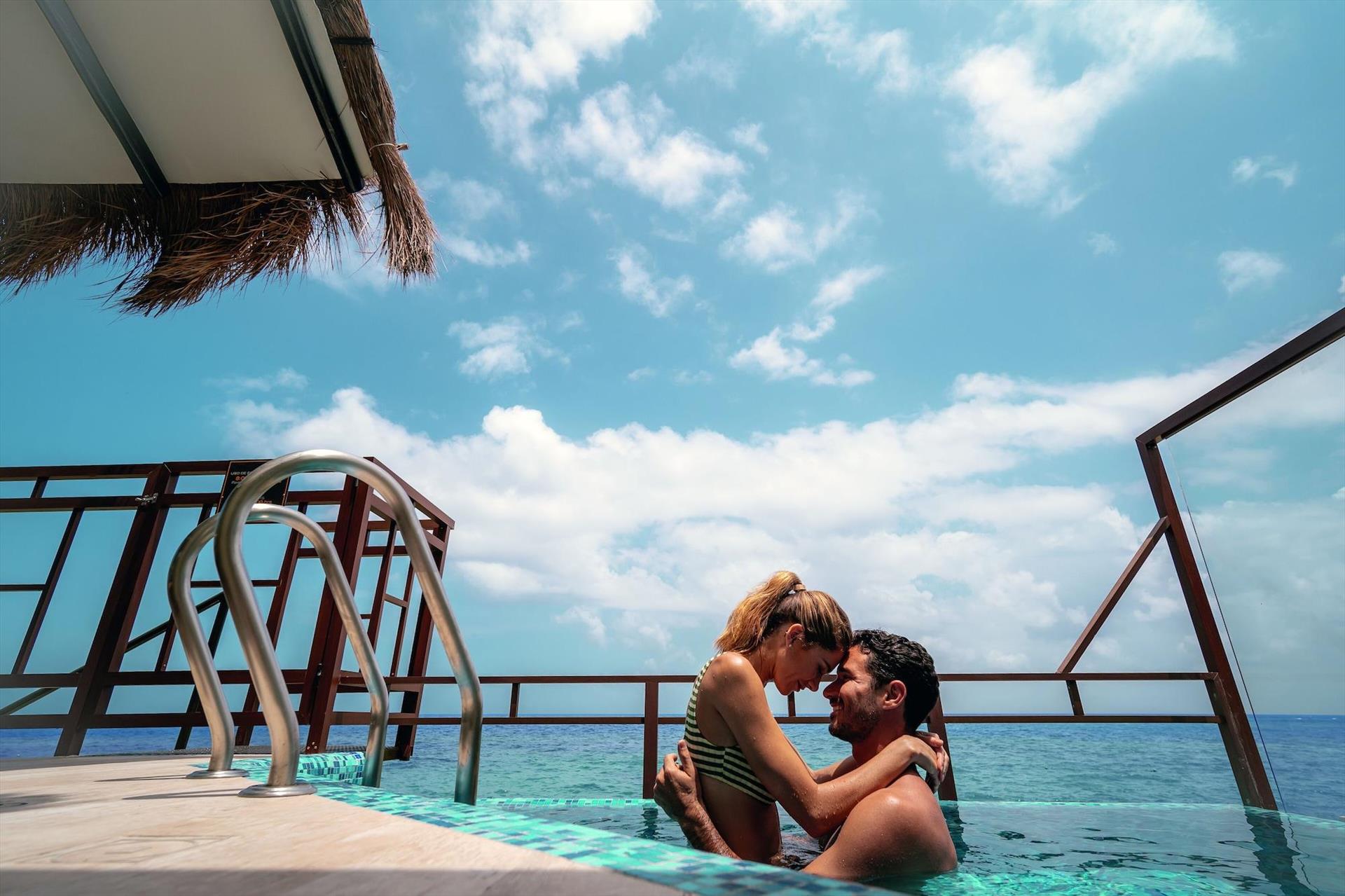 We loved our stay at Palafitos! From the moment we arrived until we departed the staff made our stay stress free, relaxing, and that we were completely cared for. Alberto ensured we never lifted a finger or ever had to walk too far ☺️ Mauricio really set the bar for what great service looks like. He knew when we needed pool towels, remembered our drink orders, made sure the food was exactly what we wanted to eat and truly put the finishing touches on this top notch stay. We hardly left the bungalow, had snacks, meals and drinks delivered for most of what we needed. We only ventured out to use the hydrotherapy at the spa, which was included once per day during our stay-I highly recommend trying it! The food was excellent and the chef was more than willing to accommodate protein requests to sub out seafood, which made it much easier trip for me to enjoy meals with my seafood loving husband. The seaweed is a big topic for everyone and while we had some windy days that pushed in a lot of stinky sea grass, the resort is working as hard as they can to keep it clean. It kept us from using the beach but didn’t stop us from getting in the water directly from the bungalow. We were in 1625, on the T but facing the shore and it didn’t congregate around the bottom. This was a honeymoon splurge and worth every penny, we will be working to come back as soon as we can!