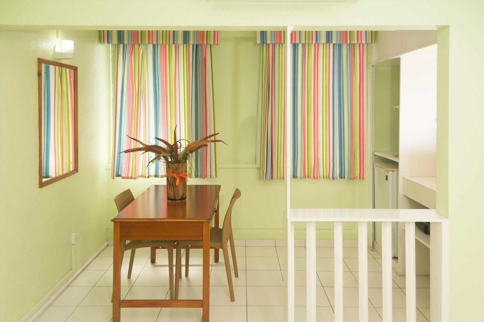 I travel every year with a group of students (all boys by the way) and this was our first time staying here and I will definitely be coming back. The hotel is budget friendly, the rooms were very clean, spacious and if you plan on cooking it had all the amenities from spatulas, cutting boards, pans, pots, , baking dishes even a cheese grater and can opener. There is house keeping daily and they did a great job. AC worked well. The staff is friendly and always willing to help. We arrived before the standard check in time, due to our flight, and we were able to check into the room once they were ready at no extra cost (thanks!). Beautiful tranquil grounds, with a clean small pool and restaurant. This hotel is ideally located under 5 minutes walking you are close to a supermarket (Massy Stores), Gas station, Pizza parlour (Lil Ceasars), bars, restaurants , duty free shopping (Bridgetown duty free, formally known as Cave Sheppard and even an ATM (First Citizens bank). The only issue we encountered was that on the upper floors the hot water takes long to get going when time for a shower, but if you let it run for about 5-10 mins, it will come. I will like to thank and big up the hotel manager Ms. Maynard who took the time and had patience in answering every one of my back and forth emails and who sealed the deal in my decision to stay here. If you are looking for somewhere comfortable, safe, conveniently located and adequate for an average visitor and group, this is the place to be! Thanks palm garden and hope to see you all next year.