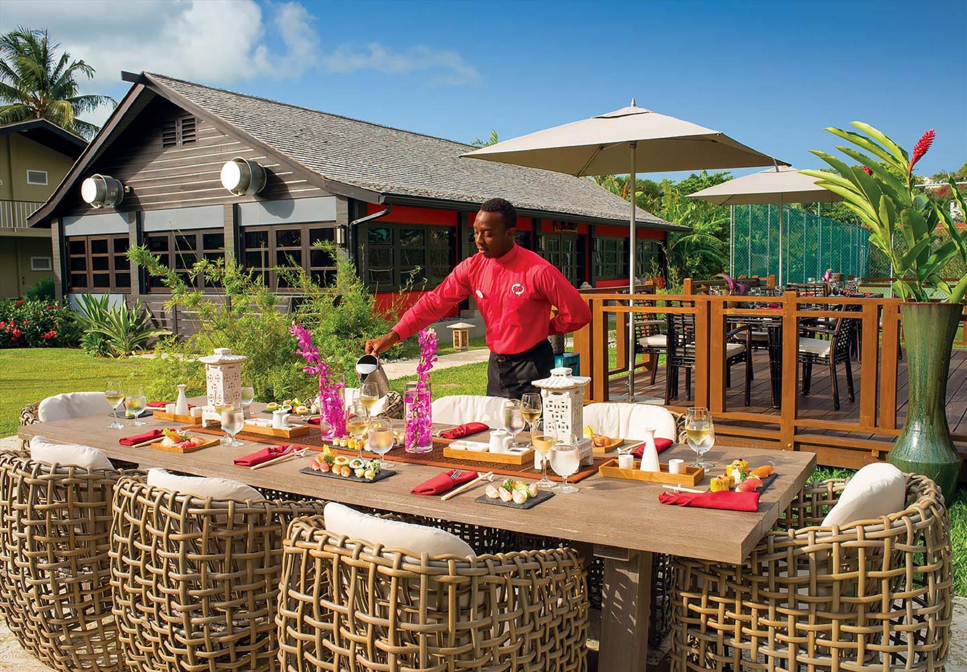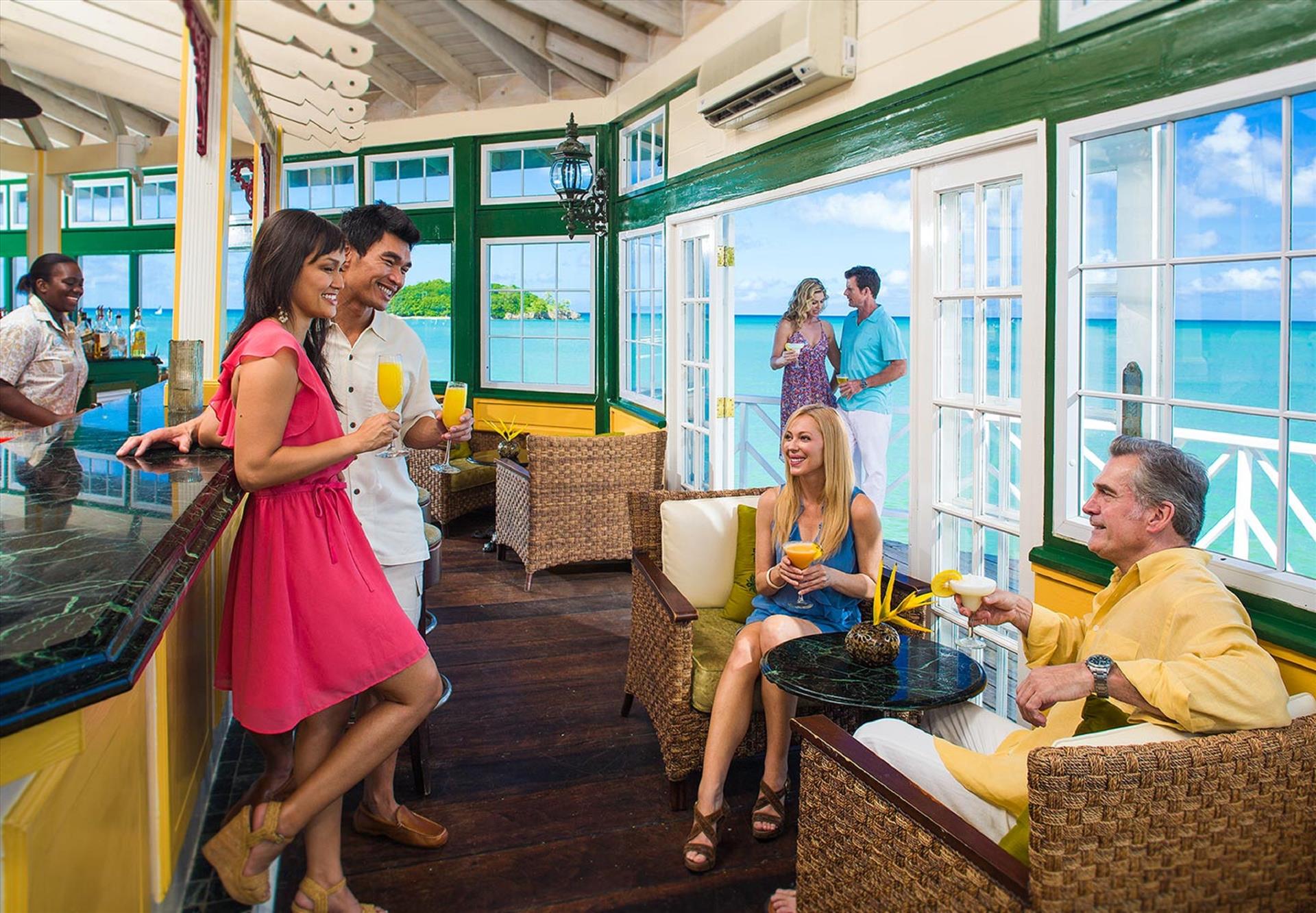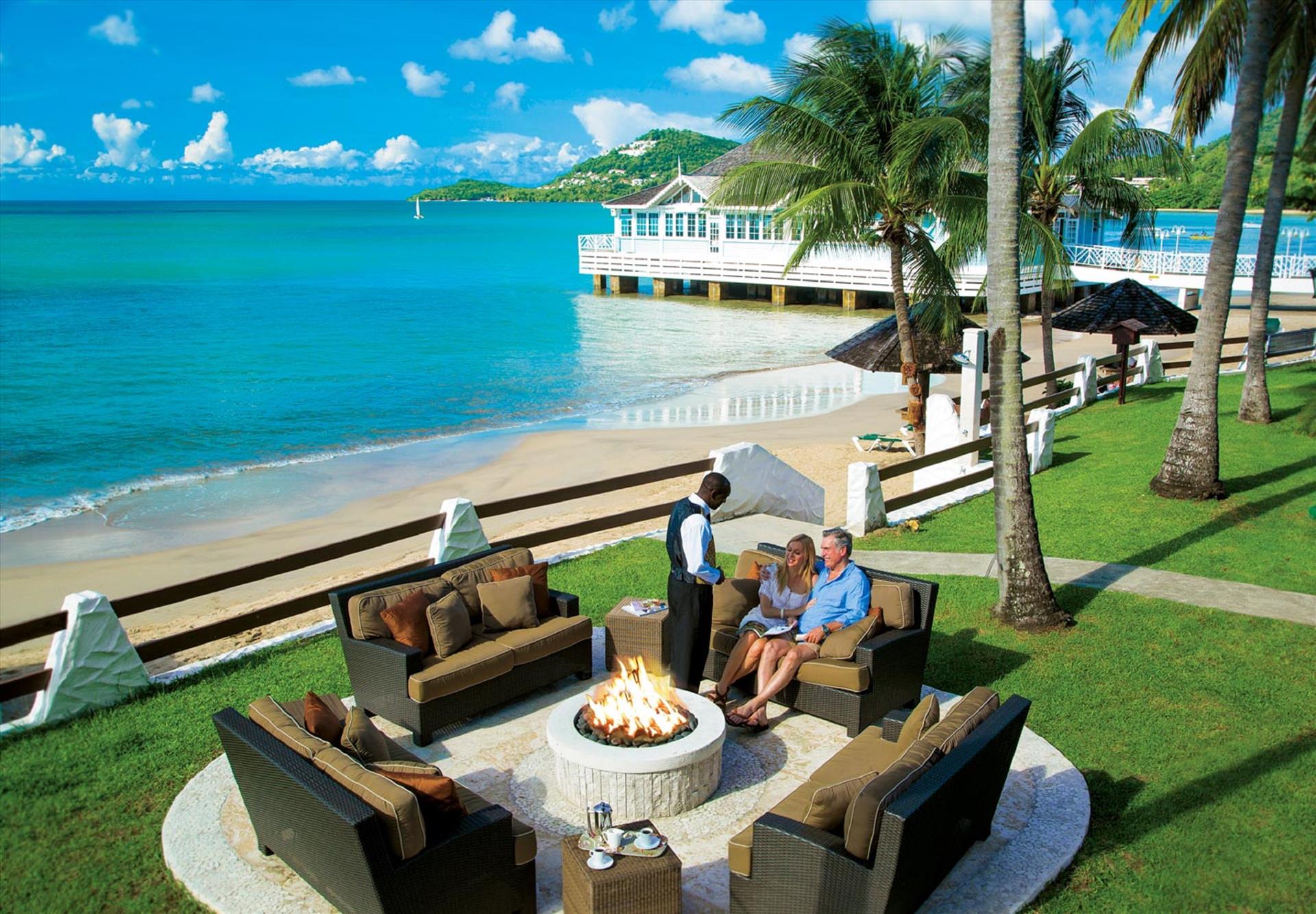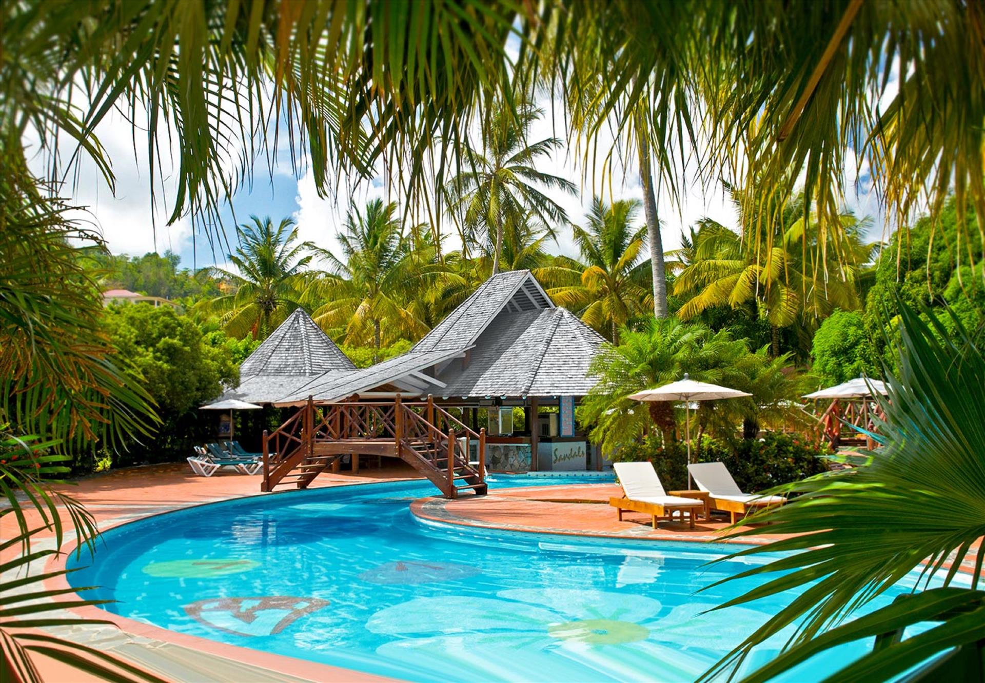 An intimate low-rise resort bordered by tropical gardens and white-sand beaches, Sandals Halcyon Beach makes it easy to soak up Saint Lucia’s natural wonder. With features like an overwater restaurant and the Caribbean’s longest — and most laid- back — pool, this resort lets you fully sink into island life. Beyond the resort, there’s even more to see and savor. Your stay includes green fees at our Cap Estate Golf & Country Club, an 18- hole course, and access to dining at two nearby Sandals Resorts in Saint Lucia.