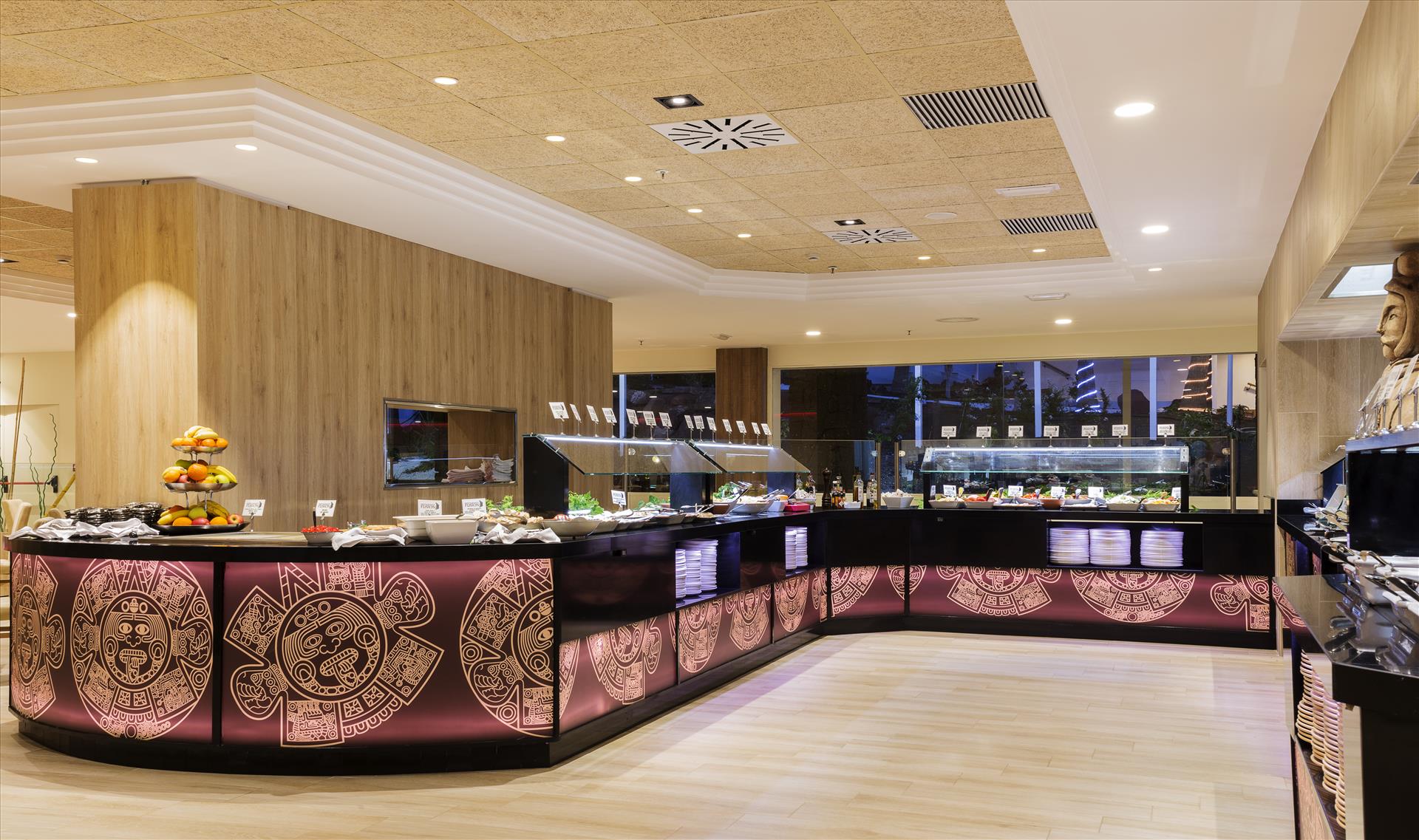 Sandos Papagayo . All Inclusive is located on the seafront in Playa Blanca, Lanzarote. The hotel is close to beaches of the Papagayo Natural Park (600m). The Timanfaya National Park is 20 km away. The rooms are spacious and bright, with a balcony with views, bathroom with hairdryer, satellite TV with international channels. Each room provides a safety deposit box (supplement charge). The complex provides four outside pools, gym, minigolf and sports center, plus spa, sauna and steam bath. It also has eight bars,and a snack bar, as well as a few restaurants: - International Restaurant - Italian Restaurant - Fusion Restaurant: Alternately Mexican/Oriental Nights The front desk is 24 hour manned and has a tourist information including car rental and tour services. The hotel provides free Wi-Fi in public areas.