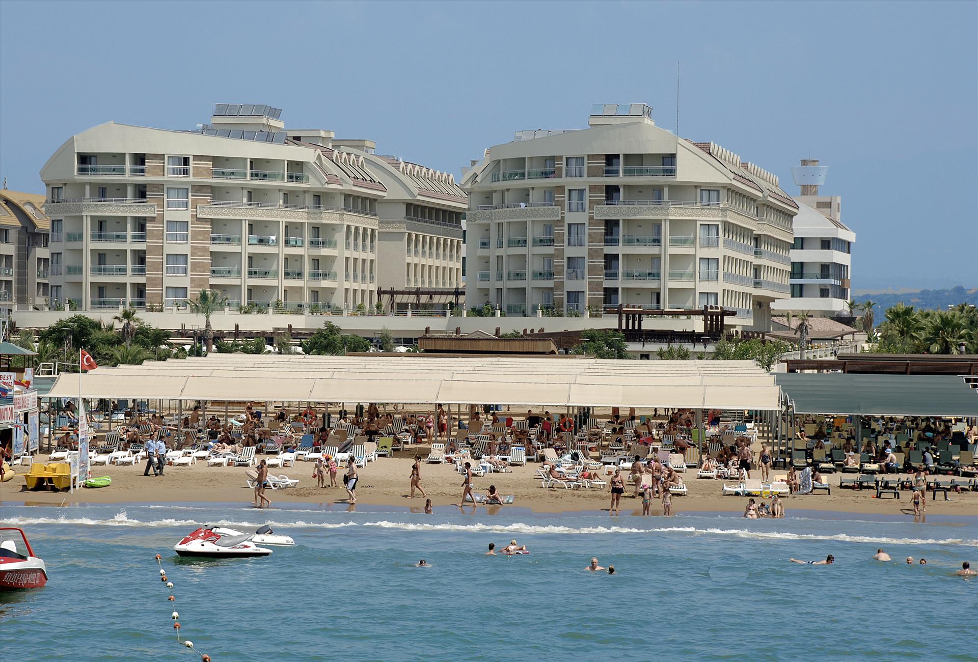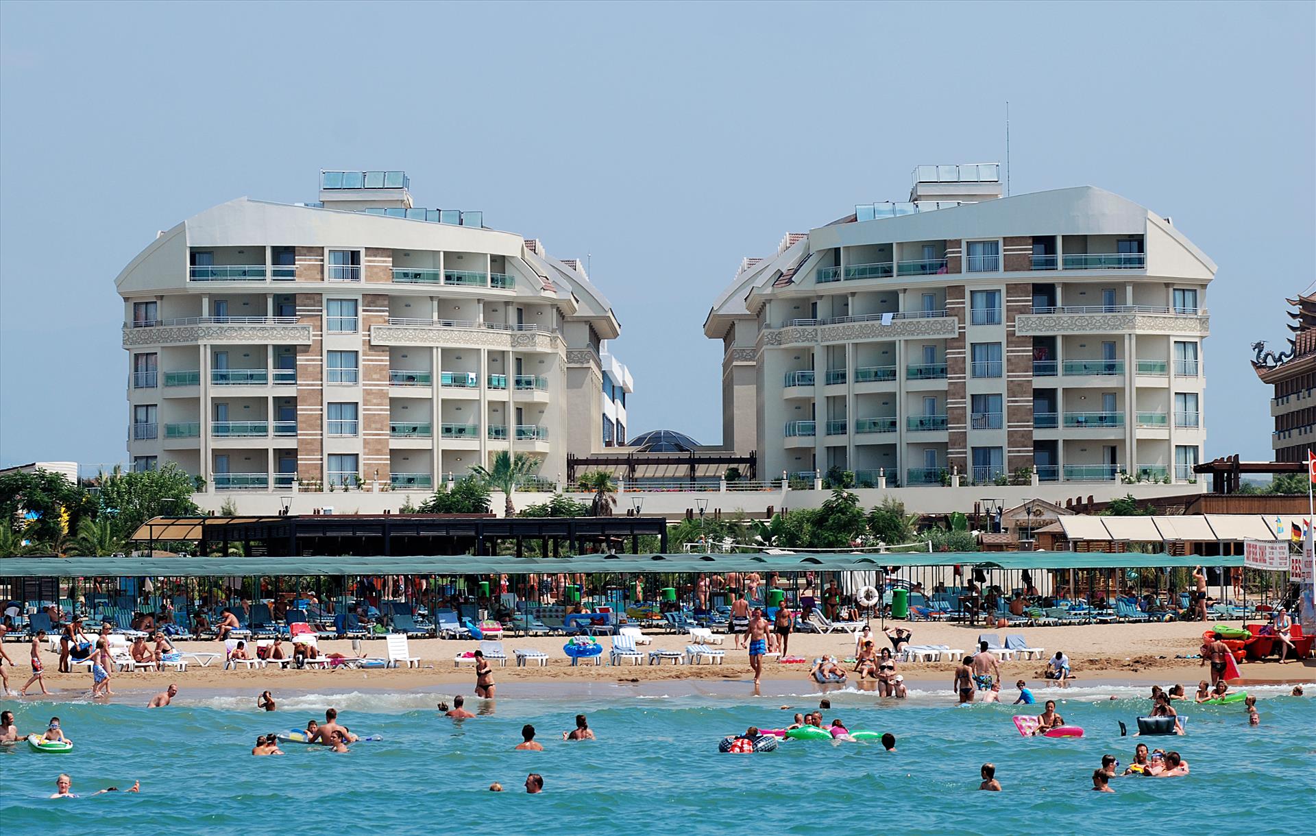 This luxurious hotel is perfectly located on a sprawling, sandy beach in the Evrenseki resort in Turkey. The hotel is 7 km away from the intriguing historical resort of Side. Guests will find public transport links just a few minutes' walking distance away, offering ease of access to other interesting areas and attractions. The hotel boasts a contemporary, attractive architectural style, adding a touch of modernity to its surroundings. Guests are invited into the stylish, elegant surroundings of the interior, where striking designs and luxurious furnishings abound. The guest rooms enjoy a sleek, sophisticated style, and offer a cocoon of tranquility in which to relax and unwind in comfort. The hotel affords guests a selection of first-class facilities and services, catering to their needs to the highest degree of excellence.