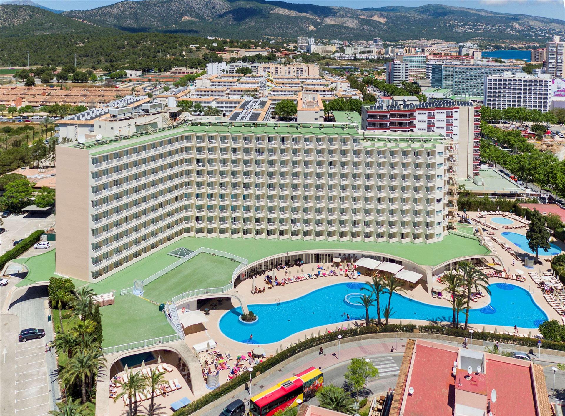 4 out of 5The hotel is ideally located only 200 m away from the magnificent sandy beach of Calvia and in a cosy corner of the resort. The area has a broad range of sports installations, 5 golf courses, shops, restaurants, bars and fashion clubs and boasts an infinite assortment of cycling and trekking routes. The airport is about 30 km away. The hotel offers spacious, modern and bright rooms, equipped with air conditioning, TV and a bathroom with shower and hair dryer. This modern and emblematic hotel provides all the facilities to enjoy an unforgettable stay and discover the beauty of Majorca, with its spectacular sandy beaches and turquoise waters; both with family and friends or as a couple. Guests can enjoy spacious swimming pool areas, savour unique dining or retreat to the modern and inviting room to recharge and relax.