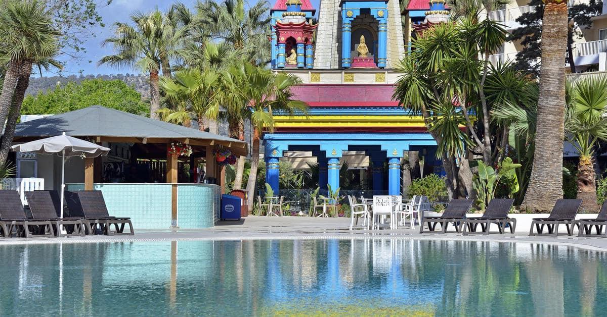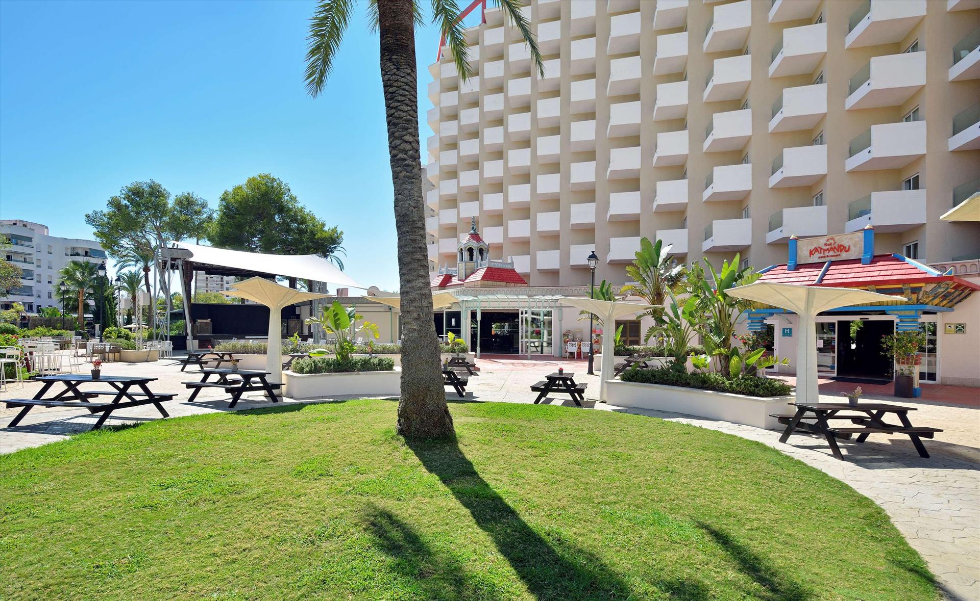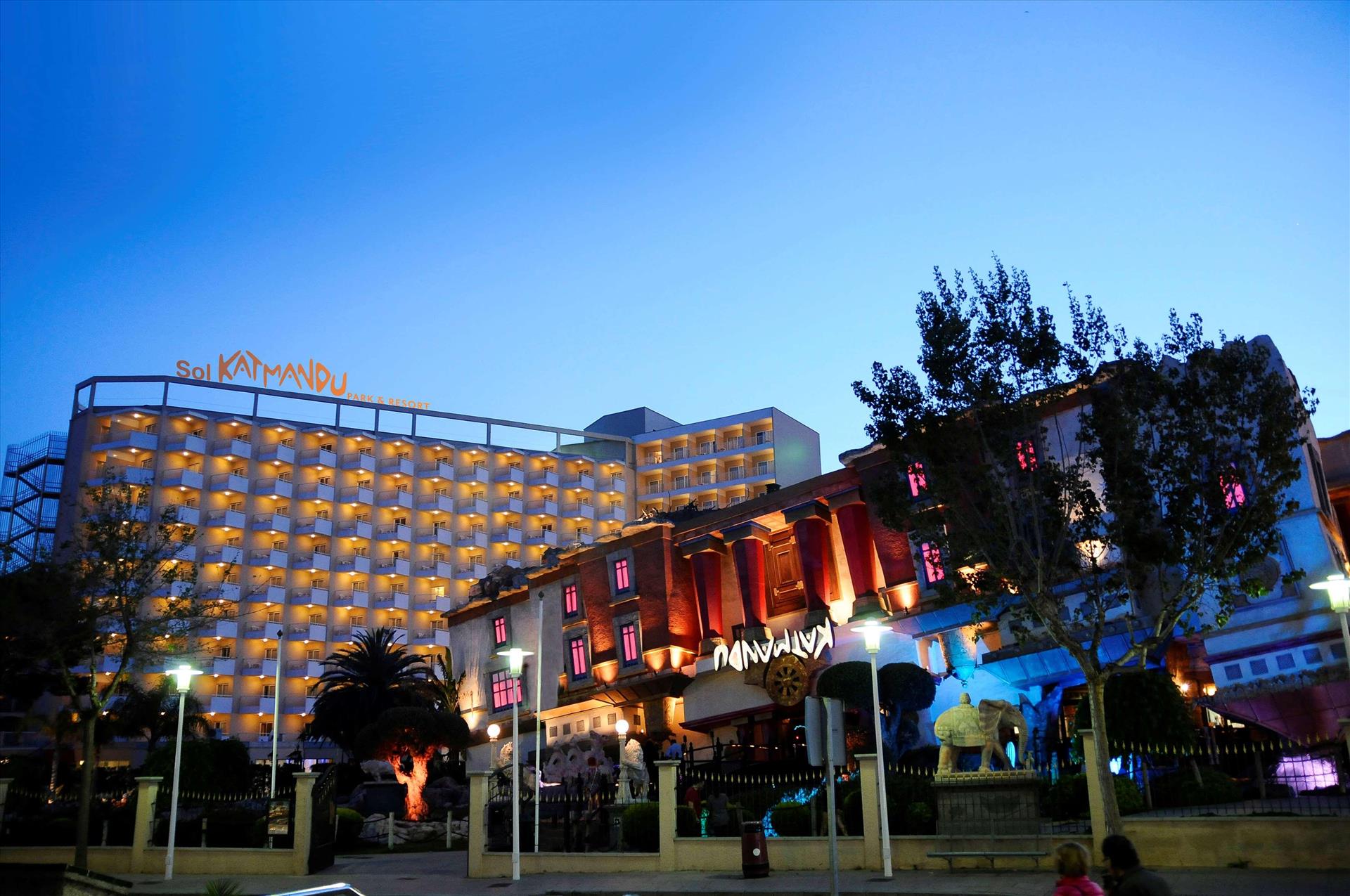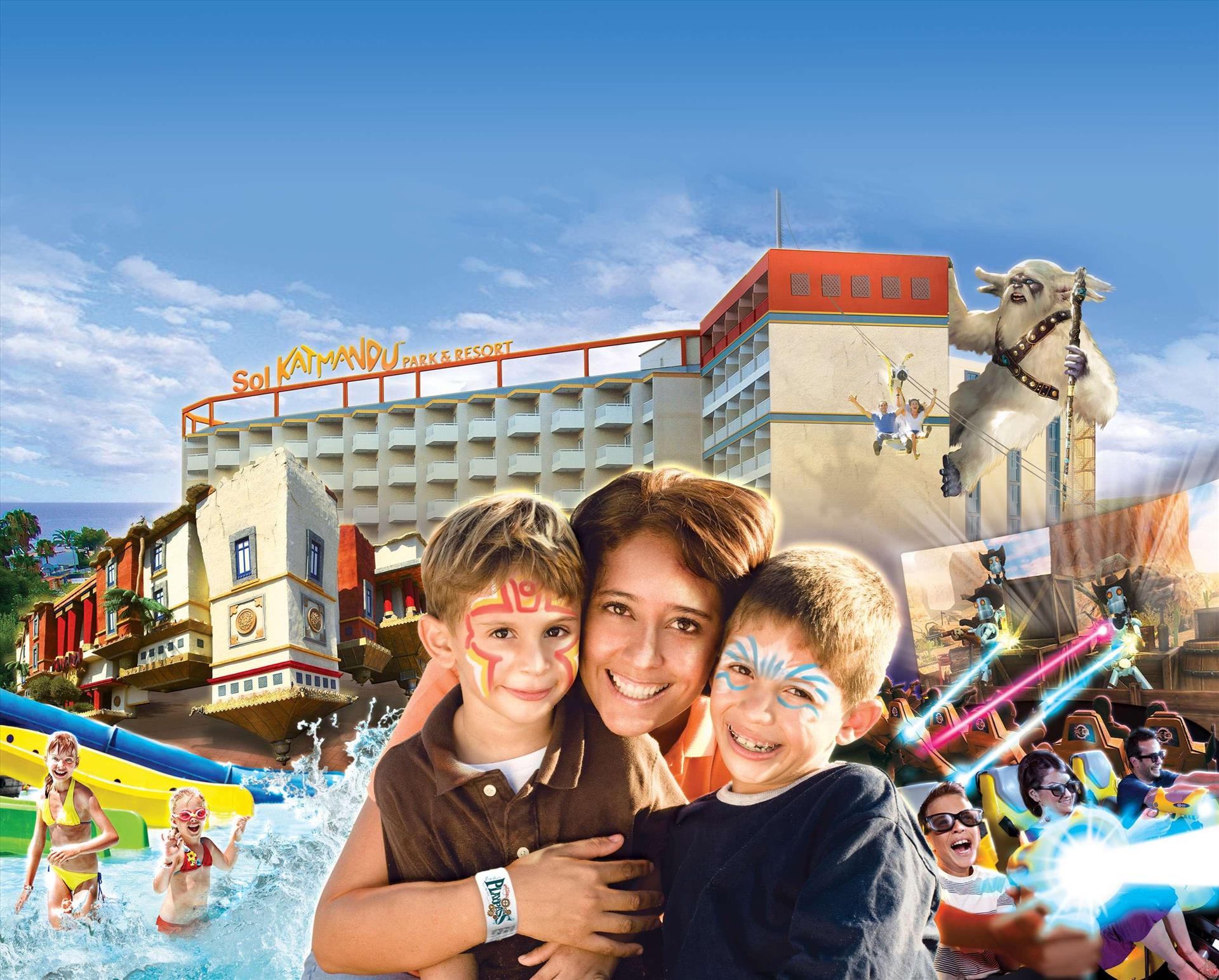 Sol by Meliá presents Katmandu Park & Resort, the first “fun-inclusive” hotel in Majorca, perfect for families and friends, with both accommodation and entertainment all right in the middle of theme park fun and just 250 m from the maginficent sandy beach. Included with stay is free entry to the fun and thrills of Katmandu Park. Among other services and facilities, the hotel provides free Wi-Fi throughout, 3 outdoor pools with sun beds. Buffet Restaurant (All Inclusive option). The rooms are comfortable and are fully equipped. The hotel offers full programme of funny and creative activities for kids in the mini club Kamp Katakidu (8 months-12 years) during the day and a varied entertainment programme in the evening with live music, shows and much fun for all ages. Come and discover the history of Katmandú Park! Pets not allowed.