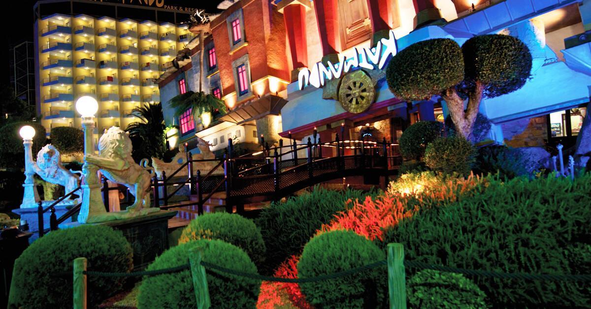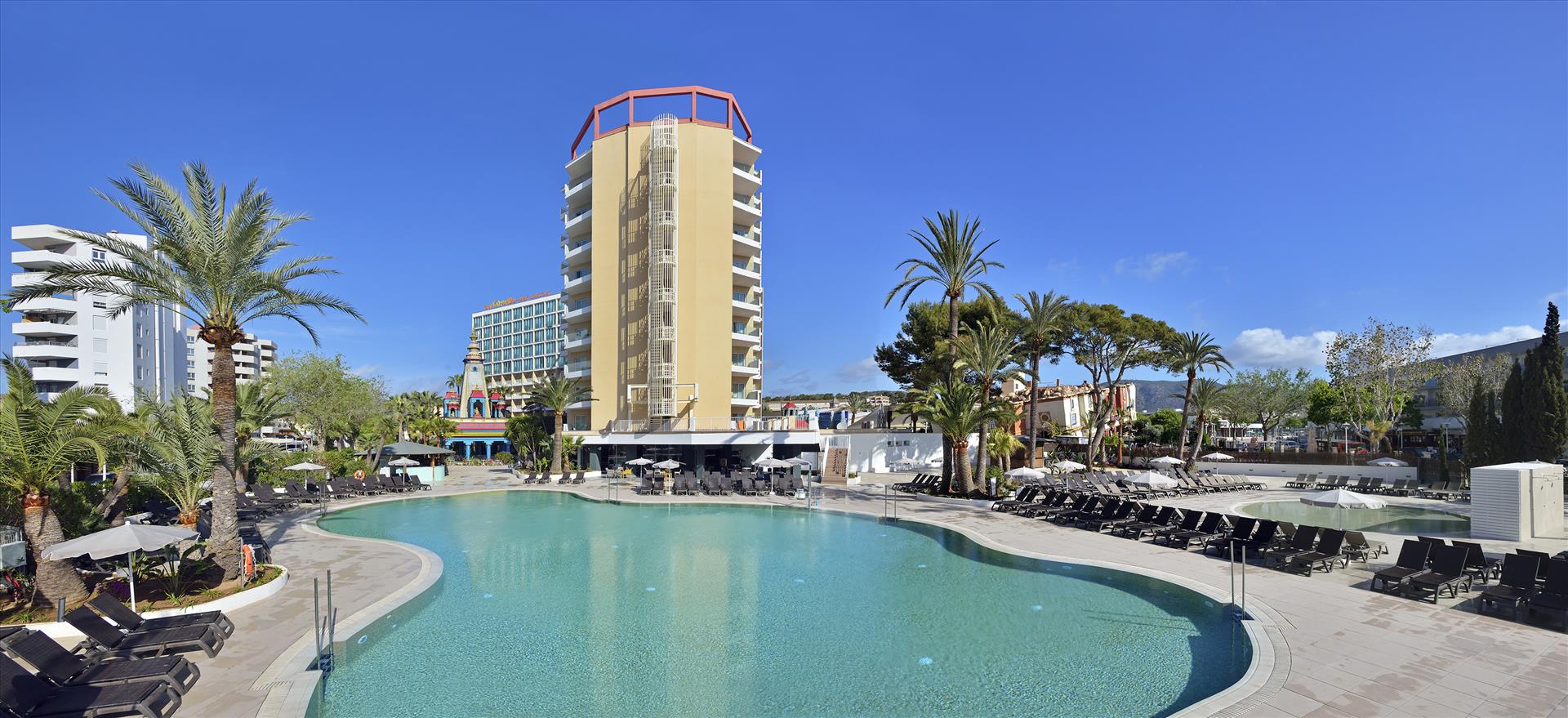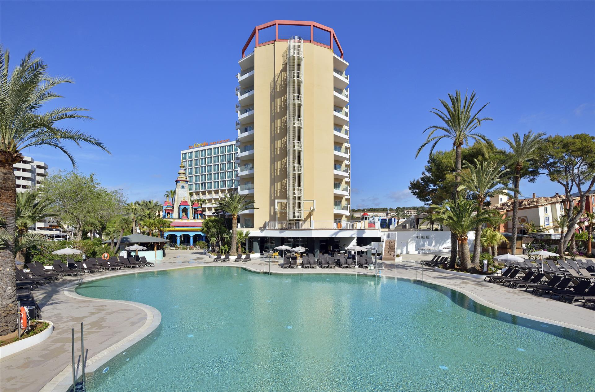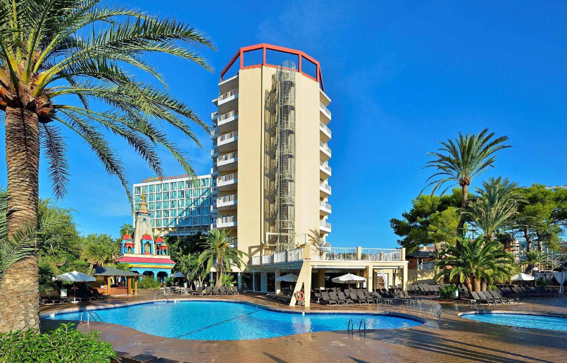 Sol by Meliá presents Katmandu Park & Resort, the first “fun-inclusive” hotel in Majorca, perfect for families and friends, with both accommodation and entertainment all right in the middle of theme park fun and just 250 m from the maginficent sandy beach. Included with stay is free entry to the fun and thrills of Katmandu Park. Among other services and facilities, the hotel provides free Wi-Fi throughout, 3 outdoor pools with sun beds. Buffet Restaurant (All Inclusive option). The rooms are comfortable and are fully equipped. The hotel offers full programme of funny and creative activities for kids in the mini club Kamp Katakidu (8 months-12 years) during the day and a varied entertainment programme in the evening with live music, shows and much fun for all ages. Come and discover the history of Katmandú Park! Pets not allowed.