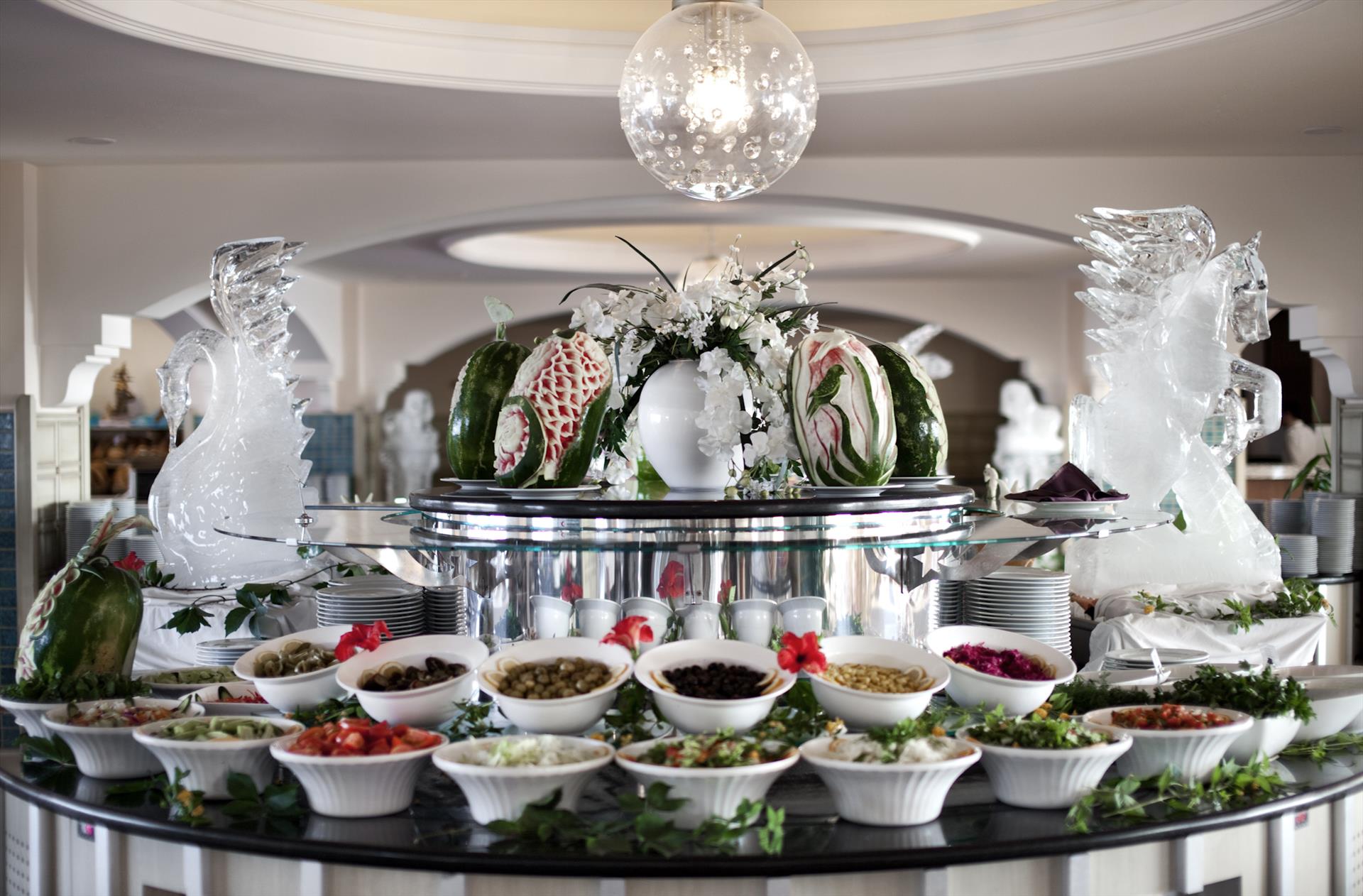We stayed at the Starlight from 16th October to 23rd October, we being a middle aged couple. Upon arriving at Reception very early in the morning we were given the chance to visit the 24/7 ‘Bistro’ at the very bottom of the hotel (in the entertainment ‘Cave’ of which more later) for some very welcome food after a long trip, we also had the 24/7 lobby bar identified for us whilst check in was processed. We booked a deluxe double with sea-view and we got exactly that, a very large room (which also had a single bed as well as the double), walk-in wardrobe and large bathroom. The views from the balcony were stunning. Yes, in some areas a refresh of the decor and fittings would improve things, however the room was perfectly appointed for us and the housekeeping function could not be faulted. The site itself is enormous, so big it has a road-train running every half an hour around the complex, beginning at Fountain Square. The resort is very impressive in scale and amenities, in fact even at the end of the week we were still finding new places (the Patisserie is a hidden gem)! It should be noted that each of the days we stayed saw a closing of some of the facilities e.g. on our first day there was entertainment in the Sunrise amphitheatre (dancers) and a full bar service nearby, by the end of the stay the Sunrise was all but closed and with it their bar and restaurant choice. We thought that this was a great shame for a dance troupe on a subsequent evening as they had to perform on a smaller stage with restricted viewing for the audience as they were relocated to the ‘Cave’ in the Starlight. The hotel was still busy from what we could tell, firstly with a large international football tournament and then with more family groups later in the week. We had no problem finding sunbeds and although we used the Adults Only pool one day (the 16+ rule was being actively enforced) we found the Elephant pool to be very peaceful all week. The water temperature of all of the pools was cold but not unbearably so and the sea a few degrees warmer. There is always an indoor pool to use. The site, like the room, will need some further constant upkeep and some modernisation to keep pace with customer expectation of a 5 star resort. In terms of entertainment, there was a full animation programme each day and our encounters with the staff showed them to be friendly and professional. The morning Aquafit in the main pool was fun and the early morning paddleboarding was also a nice experience (suitable only for strong/confident swimmers as most of this takes place in deep water). Music choice is subjective but we enjoyed most of the nightly bands which played many internationally recognised tunes, some benefitted more than others from a sound-check but the ‘Cave’ is an excellent venue with a large seating area, bar facilities, aforementioned Bistro, a nightclub (!), shops and a gaming centre. Not that it bothers us at all but others have commented on the lack of UK visitors and we found that to be true, most visitors seemed to come from Eastern Europe and beyond and we can see the points made by some families regarding groups of males and feelings of insecurity. That said the international vibe around the football tournaments added to our enjoyment when we went along to some of the matches. The language barrier with staff was certainly not insurmountable and I ask ‘Is my Turkish as good as their English? Probably not’ so no room to complain certainly, as we got by just fine. The amount of areas in which smoking is permitted, including in the ‘Cave’, may surprise British guests. Finally, on to food and drink. We might agree with some comments that the food in the main restaurants is a little repetitive and quality was just above average, we saw no ‘theme’ evenings as we have experienced in other hotels. For the first couple of evenings we chose the Luna restaurant as it had many of the dishes from the main restaurant but was a little quieter. However as the hotel got busier with family groups, the food service systems fell apart. It was clear that the waiting staff struggled to cope to re-lay the tables in a timely fashion as well as cope with clearing down and taking drinks orders. We regularly had to hunt for our own cutlery. In the Luna restaurant one evening we found it to have stopped serving many of the main dishes by 8.20 pm when advertised hours were until 9.00 pm. We found this to be the same in the main restaurant on the day that we left as we had an early transfer and came down to breakfast at the 7.00 am advertised start time to find the restaurant still being set up and virtually nothing ready, even the orange juice machines were empty. In a hotel of this star-rating, this is unforgivable and the hotel management urgently need to address these failings. In the later days of our holiday we resorted to eating at the outside snack bar and then using the 24/7 later rather than enter the maelstrom of the main rooms. We also booked a table at one of the ‘a la carte’ offerings although the choice had been cut to 2 as the others had closed, a Mexican (which was full when we wanted it) and an Indian, which was passable in terms of quality but marred by the volume of a football game being shown in the ‘Cave’, we were fortunate to be indoors which was still noisy but the din must have been unbearable for the diners outside on the mezzanine directly above the entertainment area. Finally, the drinks service: on the upside many branded products were used and the Adults Only bar and veranda were very elegant places to spend time, with some interesting cocktails available. The general bar service was OK but the queues show that either a) more staff are needed or b) the system of service needs to change, as many times the bar staff were dealing with complex time-consuming cocktail orders when all some people were queuing for were soft drinks and beer. Either self service of beer/soft dri