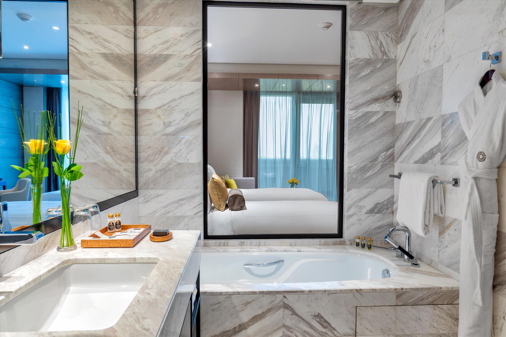 Featuring 200 contemporary rooms and suites and three distinct food and beverage venues, Taj Jumeirah Lakes Towers has gifted Dubai with a new landmark, and JLT with its first luxury hotel. It brings with it two firsts in JLT – Paros, a Mediterranean inspired rooftop pool bar and restaurant, as well as an elegant ballroom. The hotel also introduces the renowned and much-loved Shamiana from the iconic Taj Mahal Palace, Mumbai to the Middle East. Everything Taj Jumeirah Lakes Towers has to offer is a treat for the senses; whether it is the stunning cascade of light in the lobby, a palette of cuisines from 4 distinct dining venues including TJ’s – a bistro-café and NONYA - a Pan-Asian restaurant with strong influences from Singapore, Malaysia, and China. This new sensorial journey is harmonized through our intangible concept of ‘Tajness’ – a timeless combination of luxury, modernity, and legendary attention to detail. Our 5-star hotel in Dubai is conveniently located 30 minutes from both, Dubai International Airport and Dubai World Central Airport, and is a five-minute walk from the metro station. It is also within easy reach of the city’s key commercial areas, and prominent tourist attractions; making it the default new HQ for Dubai’s leisure lovers and business elite.