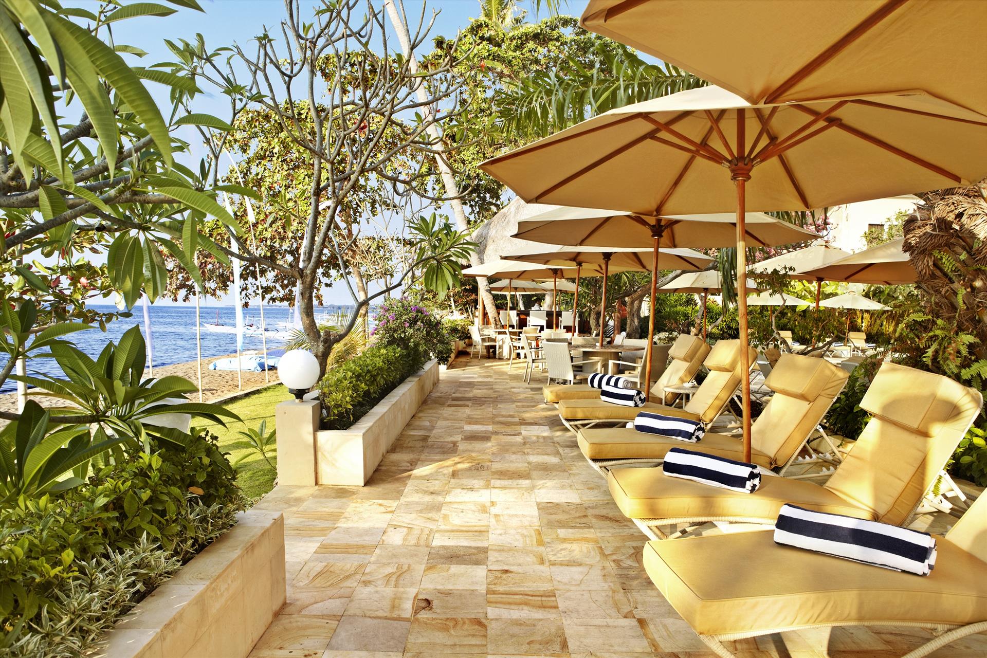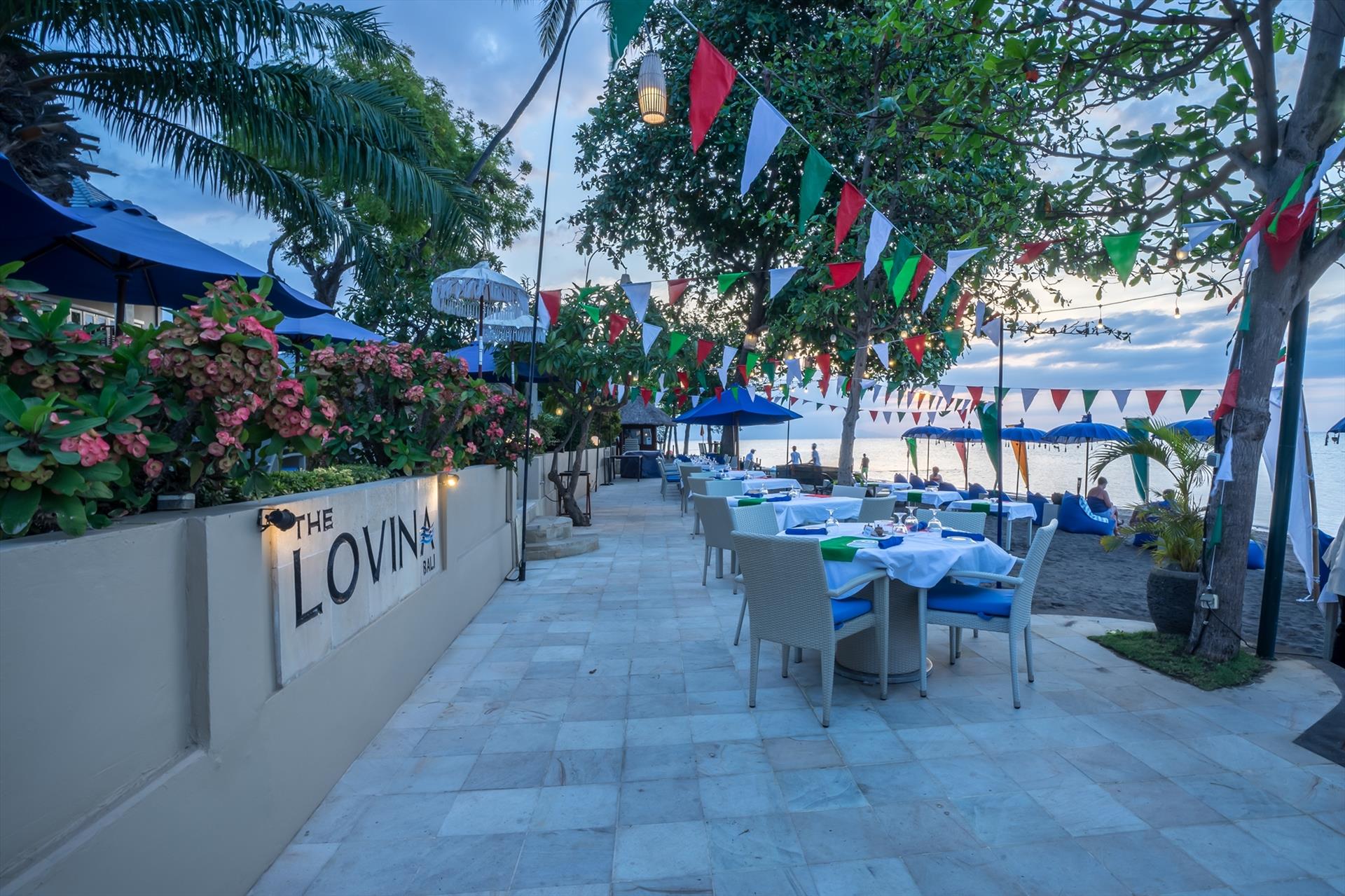Nestled on the beach, between the breathtakingly beautiful Bedugul mountain range and the Bali sea, this tropical island gem is surrounded by various attractions: Dolphin watching, trekking to waterfalls, hot springs and diving or snorkelling around Menjangan island, home to the best preserved coral reef in Bali. After a two and half hour drive from the hustle and bustle of the busy tourist areas in the south, you will arrive at your destination, ready for a relaxing holiday. The Lovina features 91 private Villas and luxury Suites, located harmoniously in a tropical garden setting. The resort boasts fabulous Beachfront dining, a beautiful, traditional Balinese Spa, Kids club and Fitness Studio. The Lovina also offers free use of kayaks, snorkelling gear, bicycles and our 10 seater shuttle service. Lovina, the way Bali was meant to be.