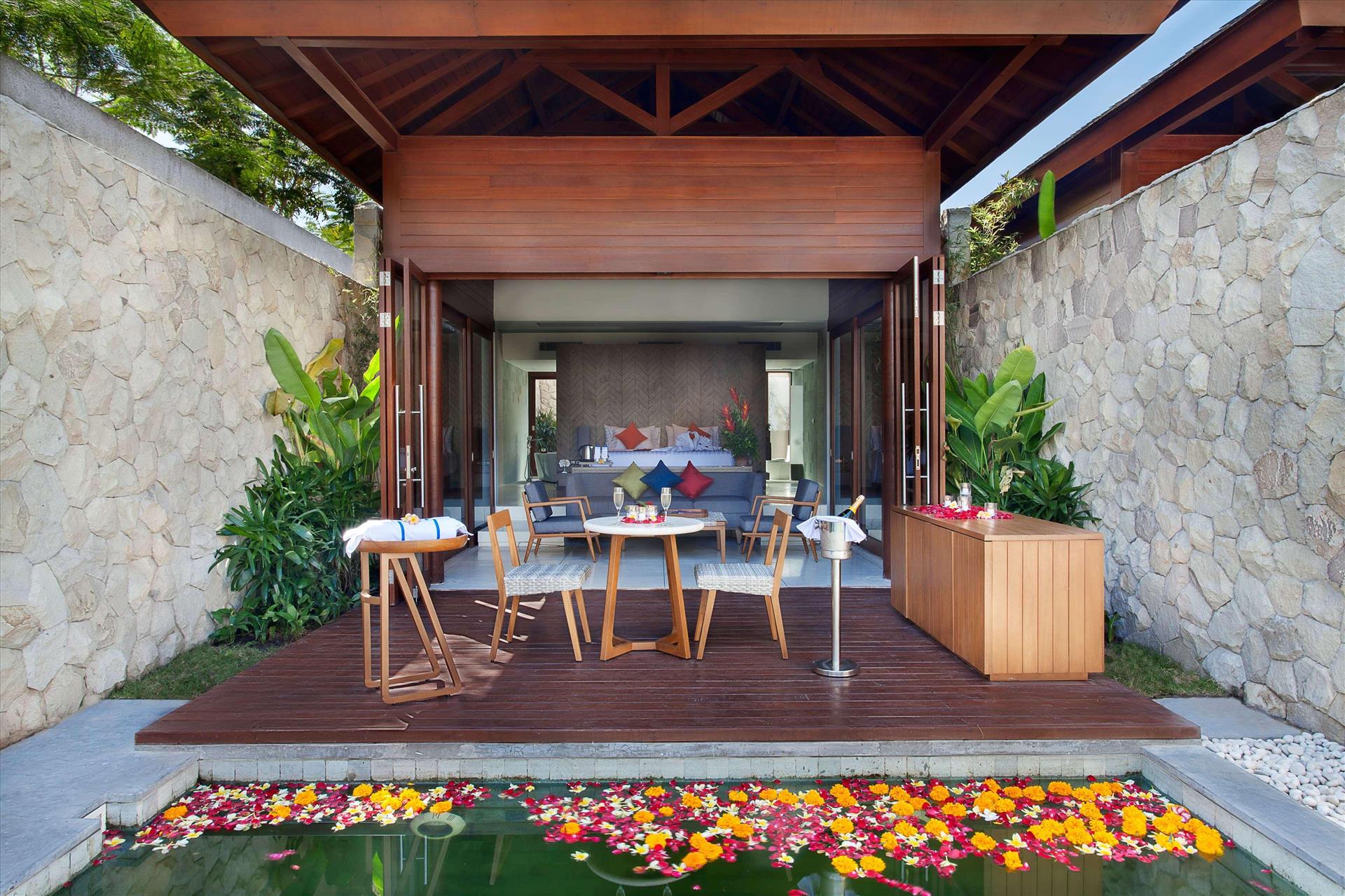Discover a tropical paradise at our luxury resort on the black sands of the eastern coast of Bali, Indonesia. Nestled in a lush landscape along the crystal-clear blue waters of the Bali Sea, off the Indian Ocean, our spectacular beachfront resort features locally inspired rooms, suites, and private pool villas with a modern design of Indonesian inspiration. Whether you are looking out at the crashing waves on Lepang beach or resting on a lounge chair by the pool, you will feel refreshed by the tranquil atmosphere of our breathtaking Bali location. Take in sunsets with one of our delicious signature cocktails in hand as the hums of wave divert you. In addition to our sensational beachfront location, we are pleased to offer must-have services and amenities for your comfort. Popular features of our resort include our gorgeous outdoor pool with ocean and garden views, Bumbu Restaurants, suites with private plunge pools and private balconies, as well as villas with their own private pools. Our intimate event facilities have been designed for destination weddings, small corporate gatherings, and special events.